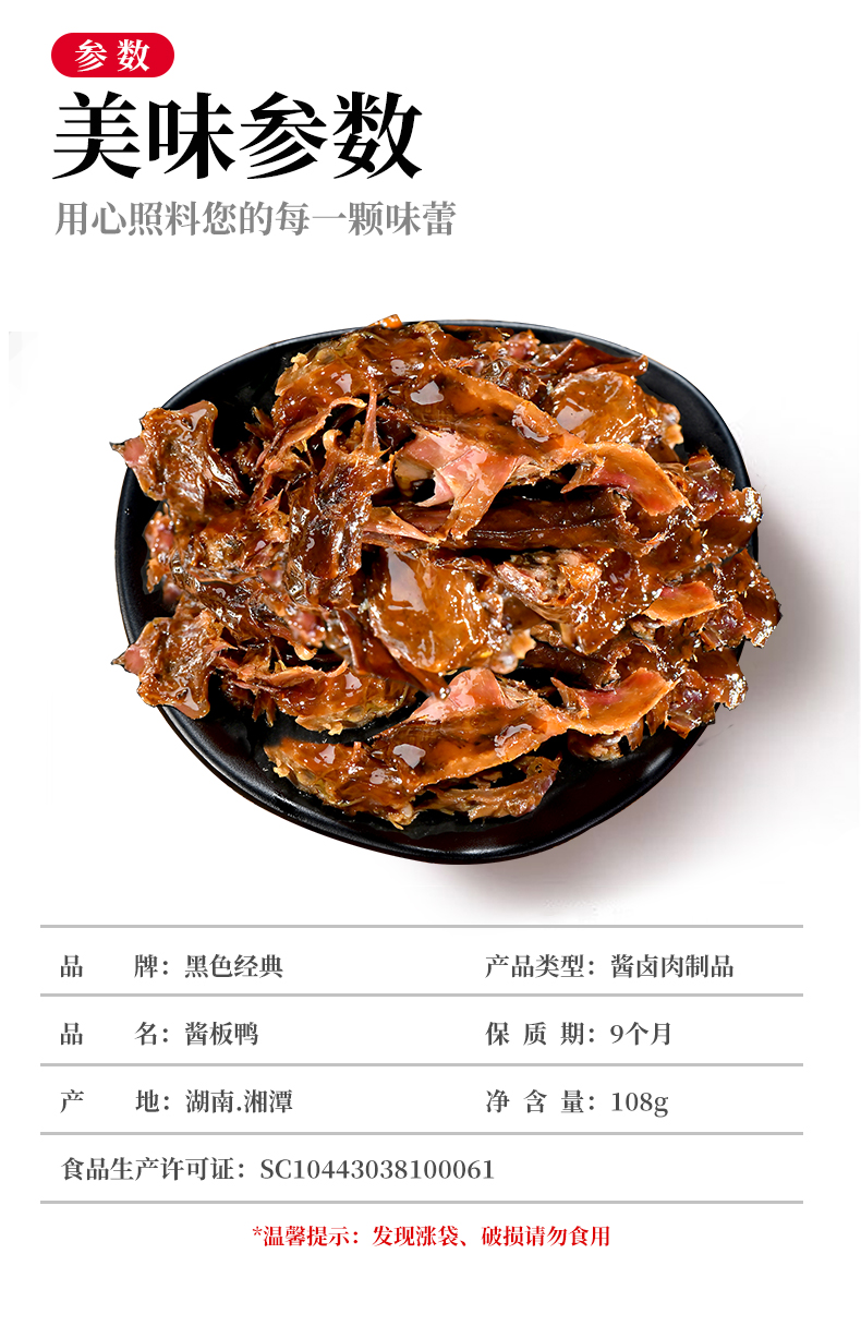 黑色经典盒装手撕酱板鸭108g