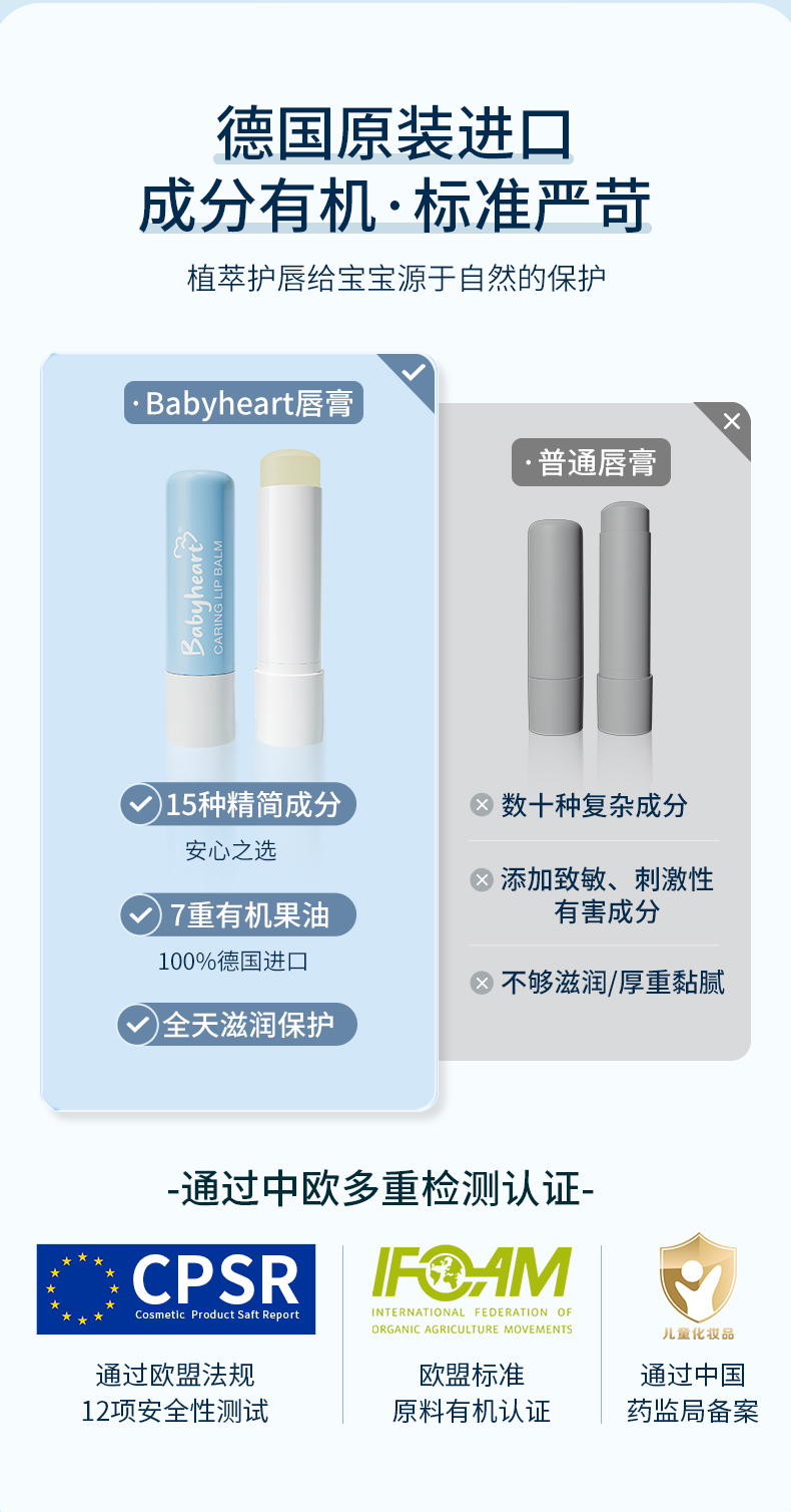 德国babyheart进口儿童倍润护唇膏保湿滋润