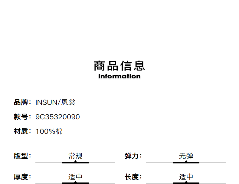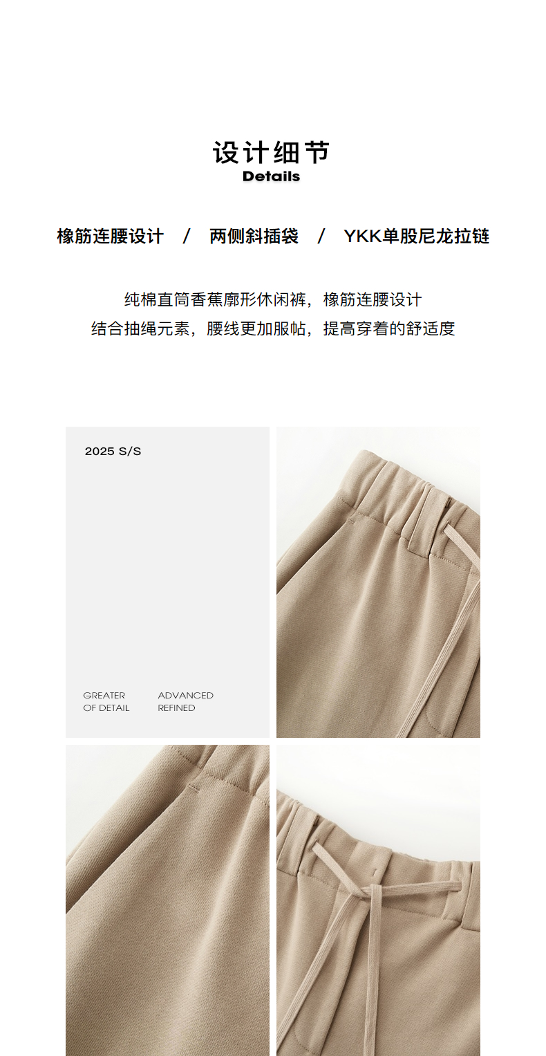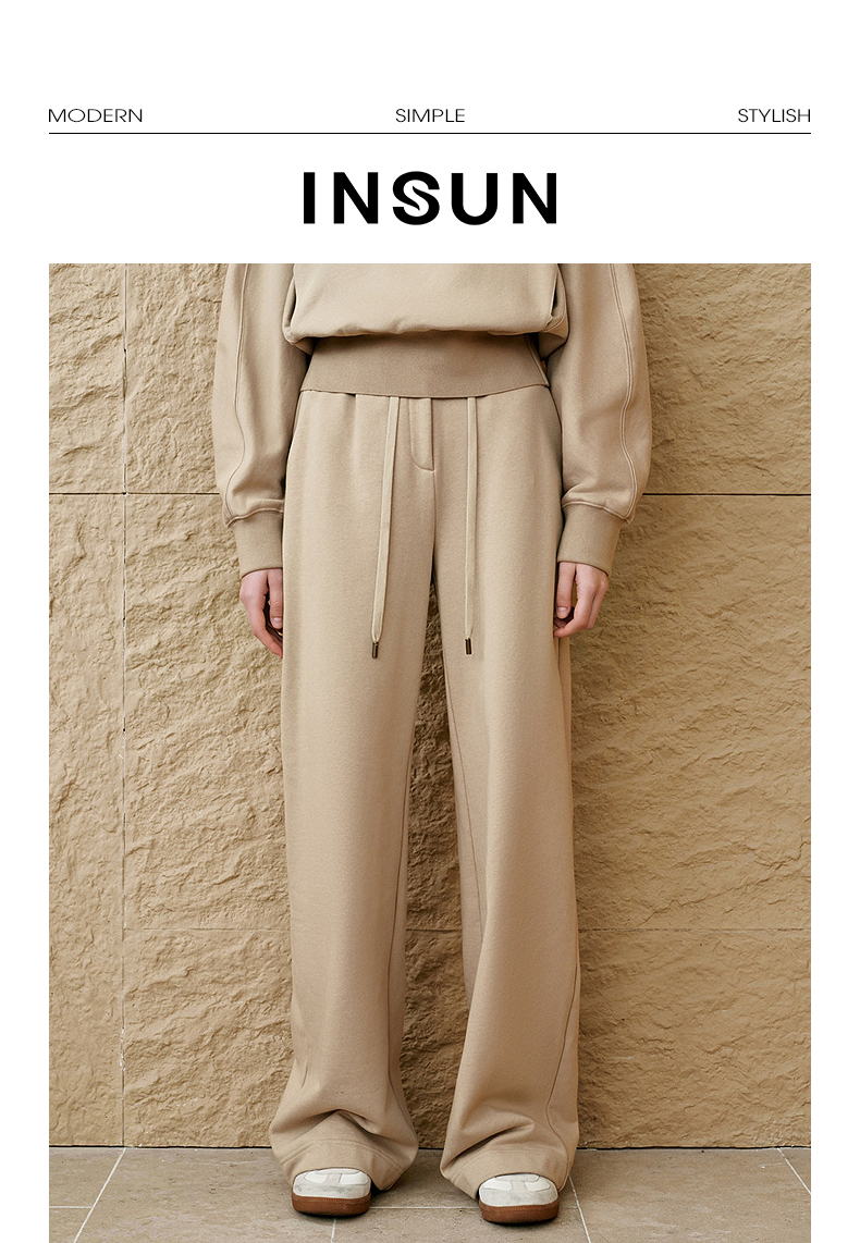 INSUN恩裳纯棉直筒香蕉廓形休闲裤