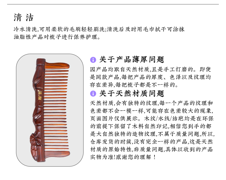 周广胜正品南美酸枝绶带鸟合木梳防静电个人清洁护理送女士长发家用便携
