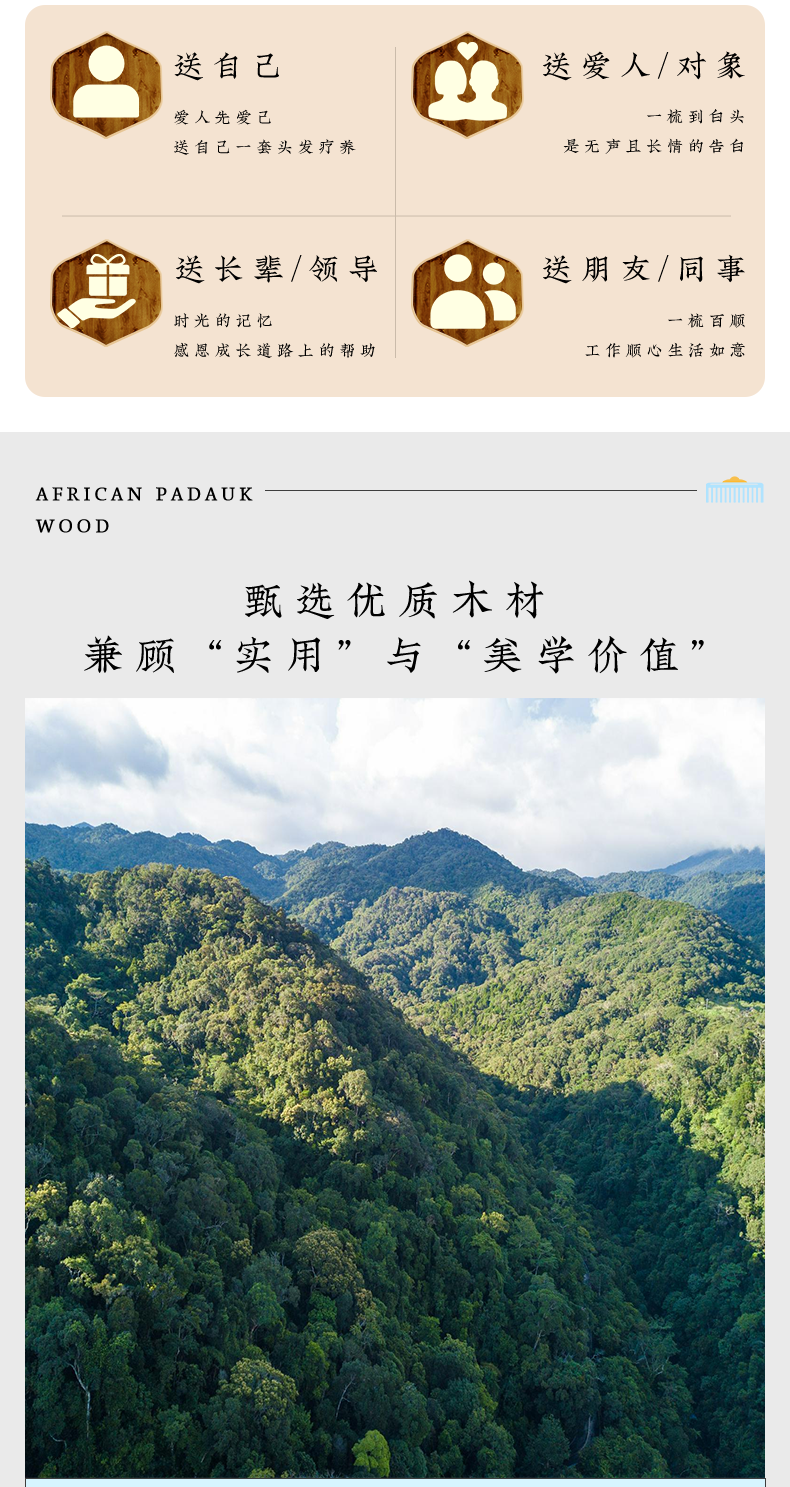 周广胜天然沉贵宝木合木按摩木梳子女士长发便携顺发护发蓬发梳