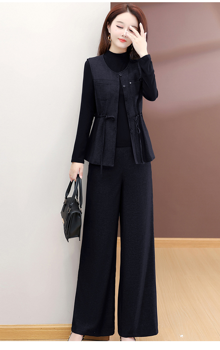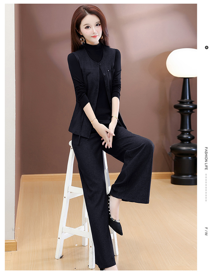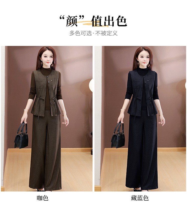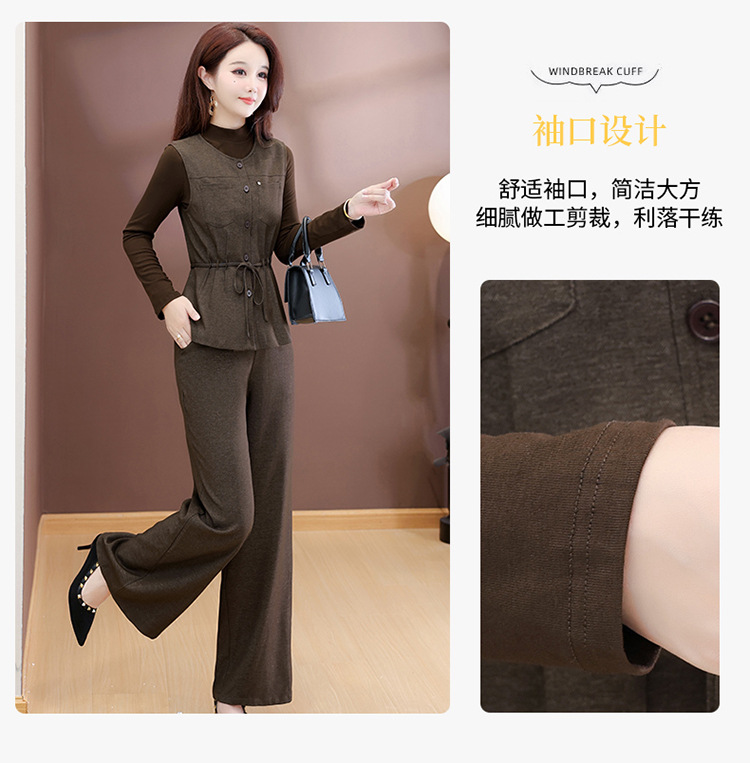 QYM 25YS23-Y时尚休闲套装马甲针织裤阔腿裤三件套 商品图3