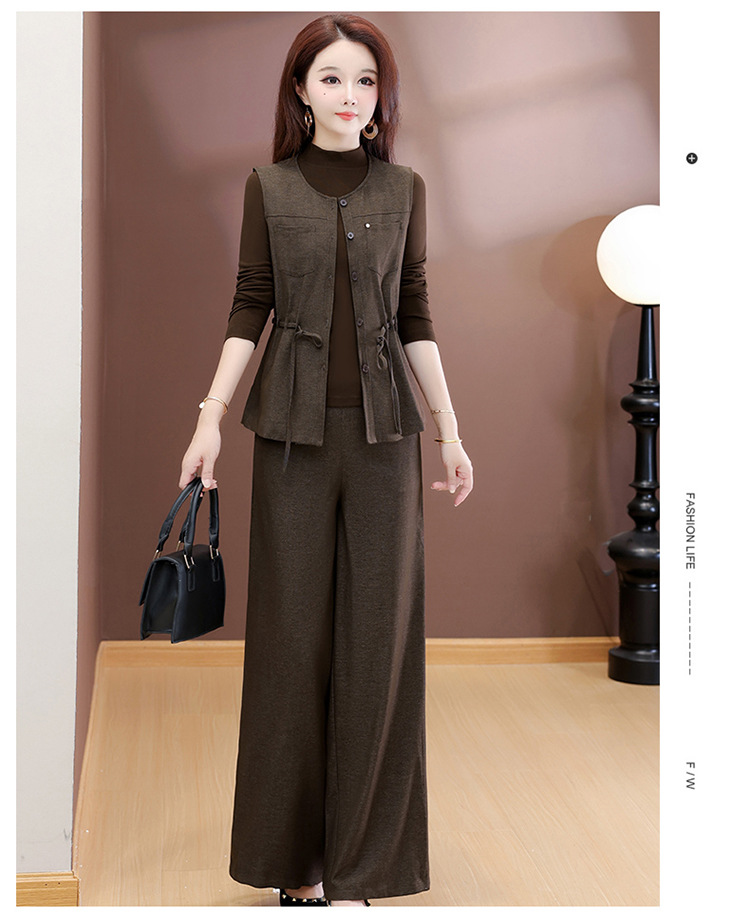 QYM 25YS23-Y时尚休闲套装马甲针织裤阔腿裤三件套 商品图0