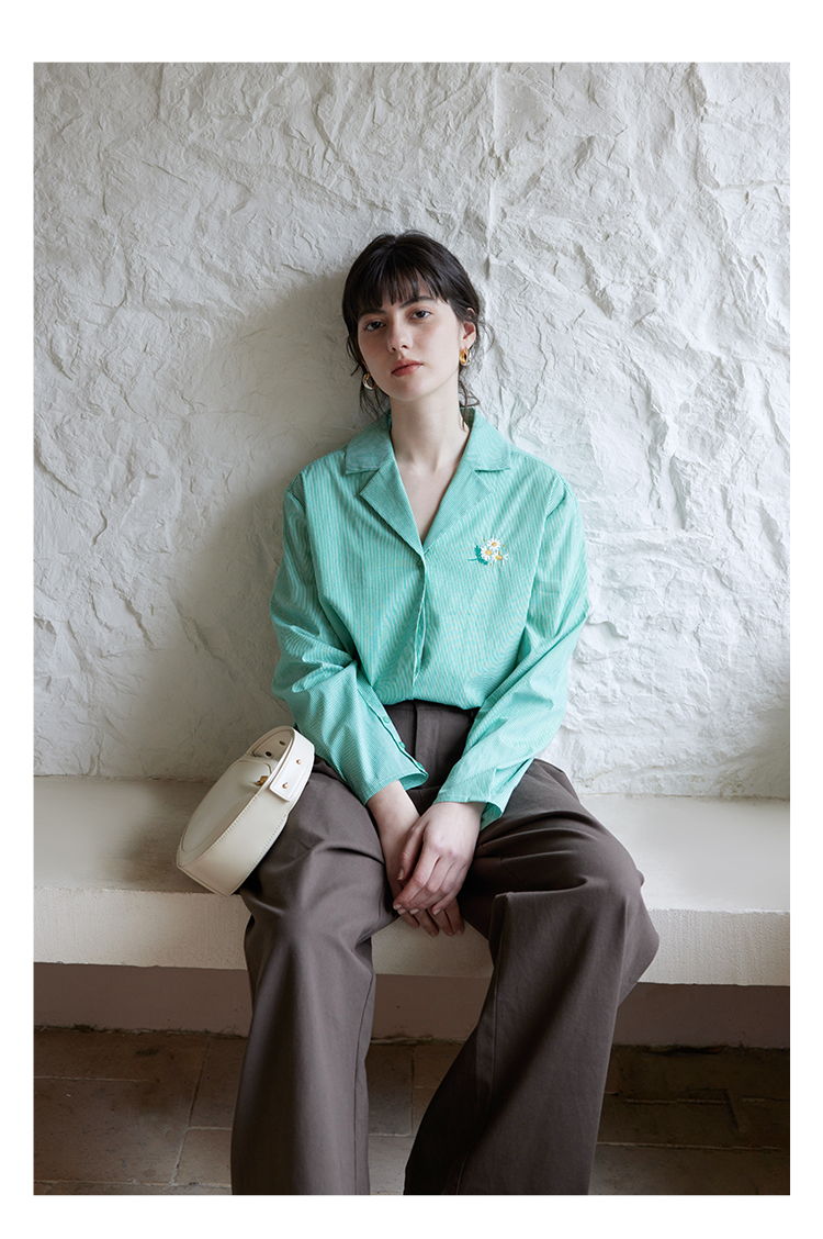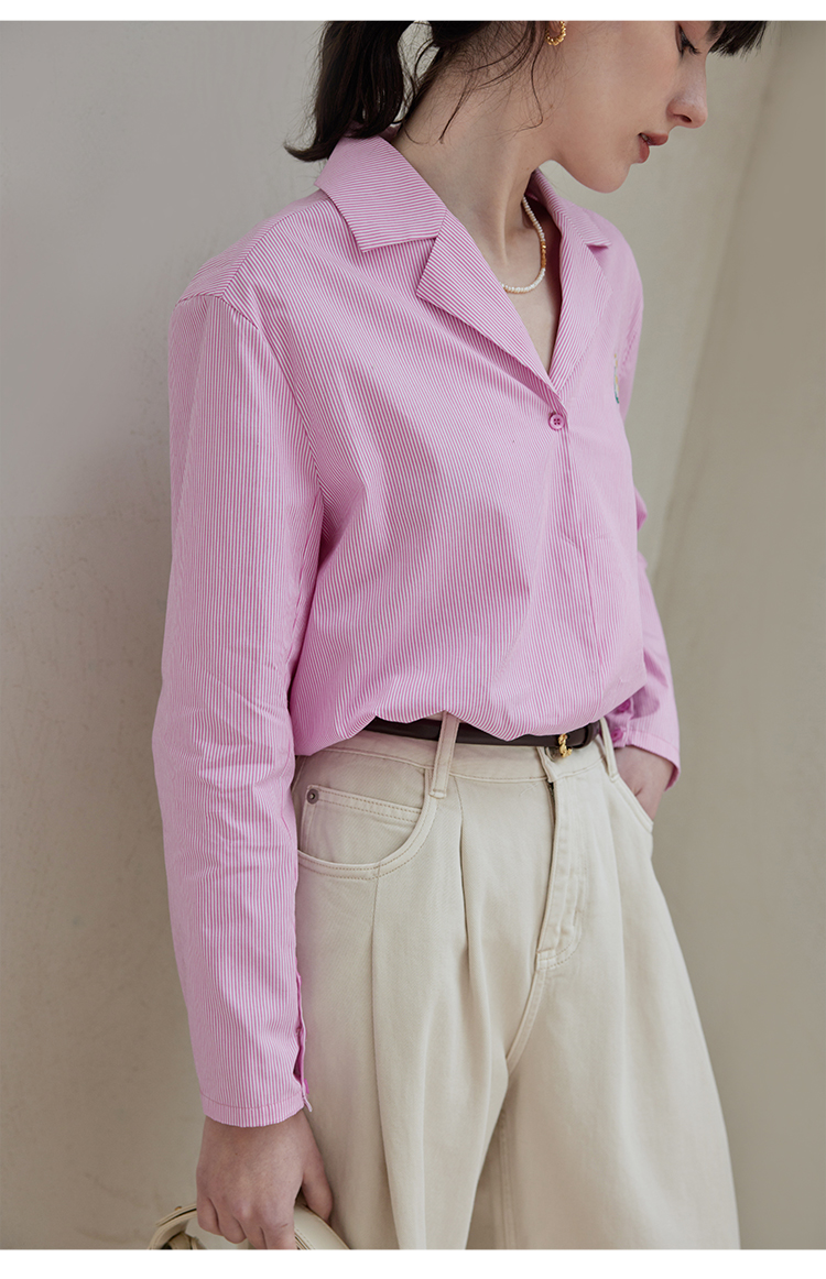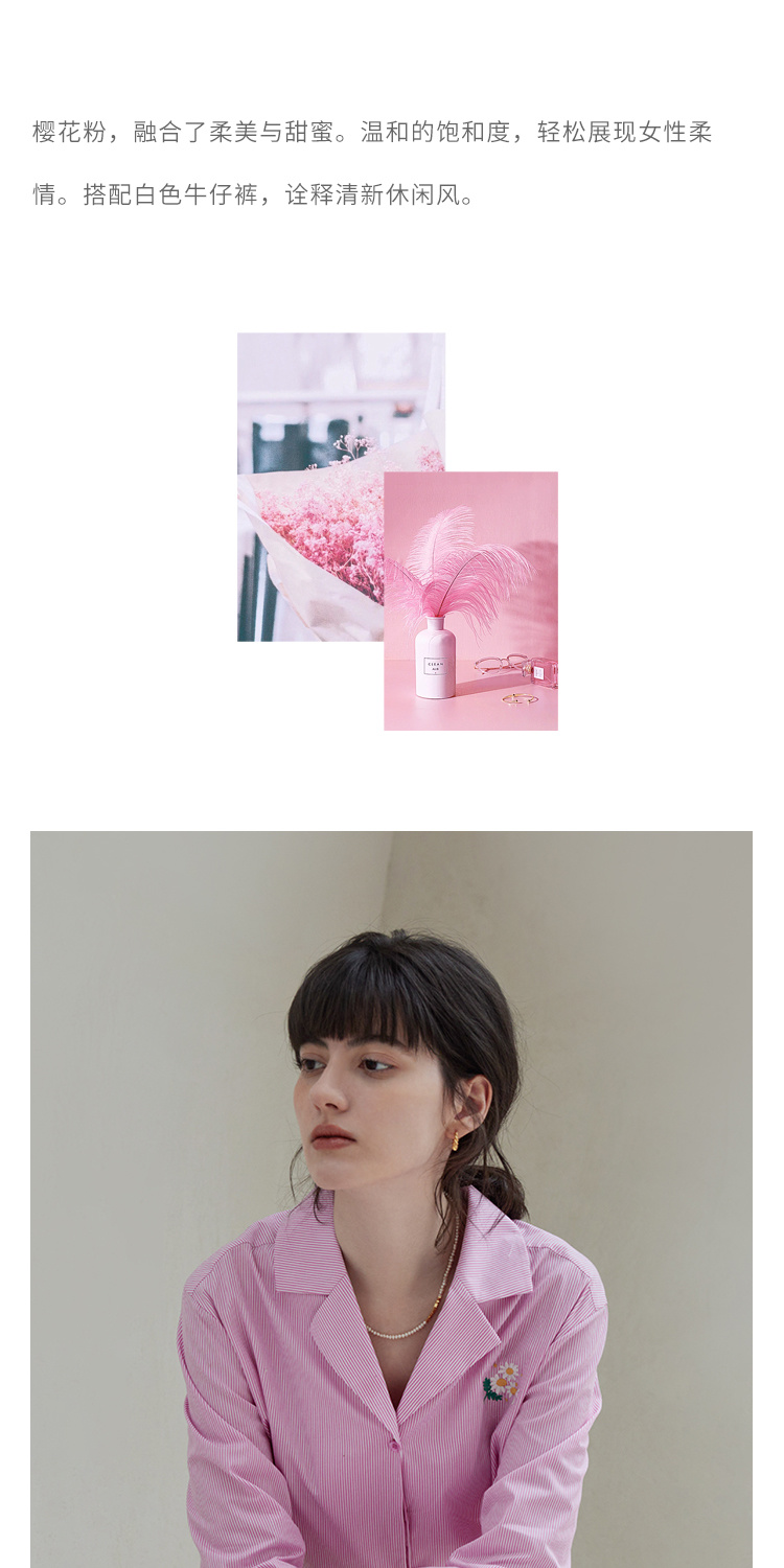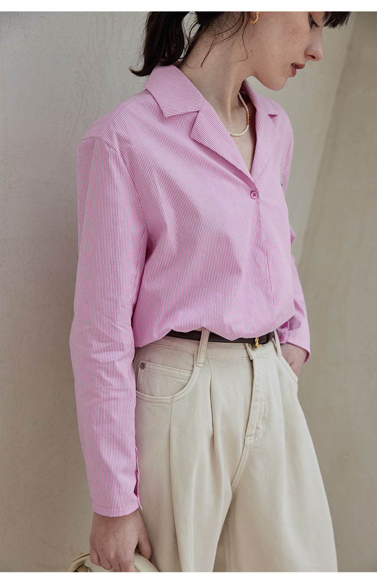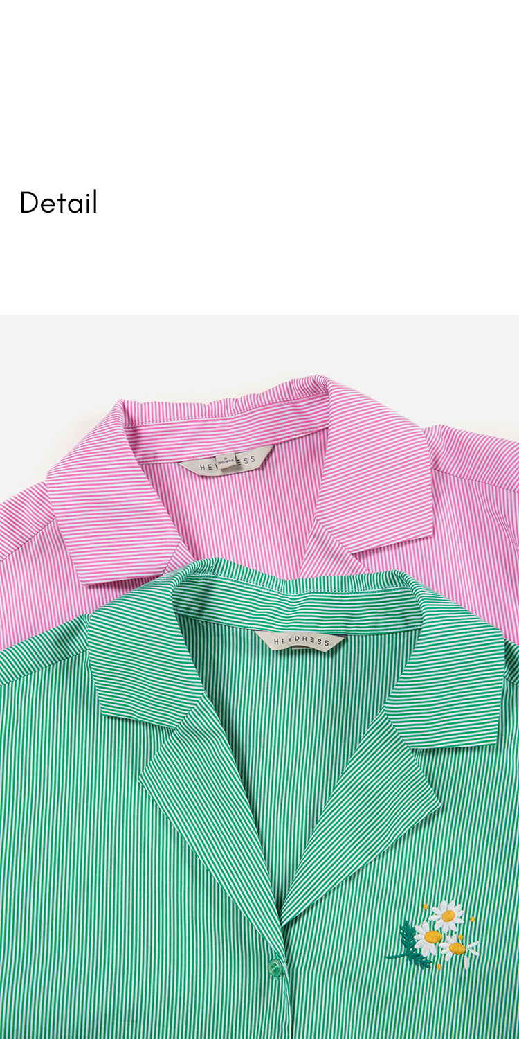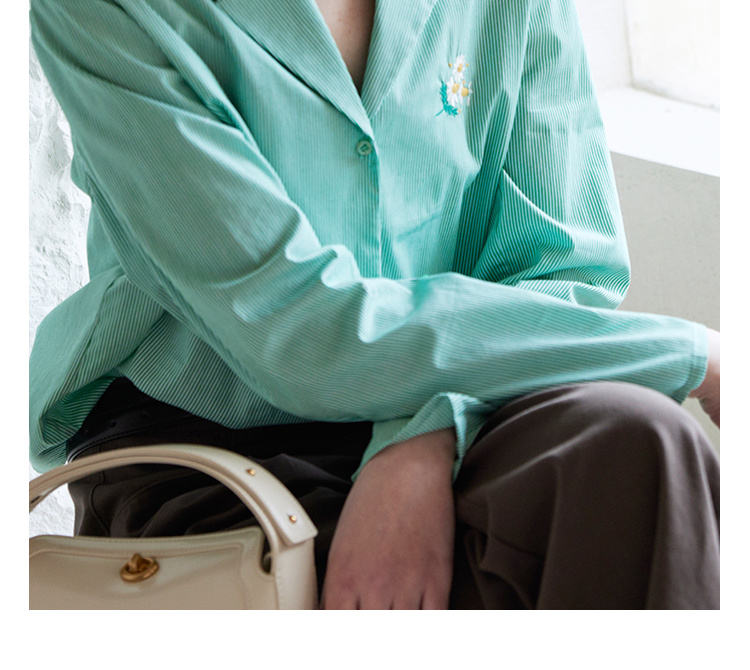 【周四精选福利】HeyDress条纹刺绣衬衣女法式复古V领小雏菊设计衬衣别致上衣
