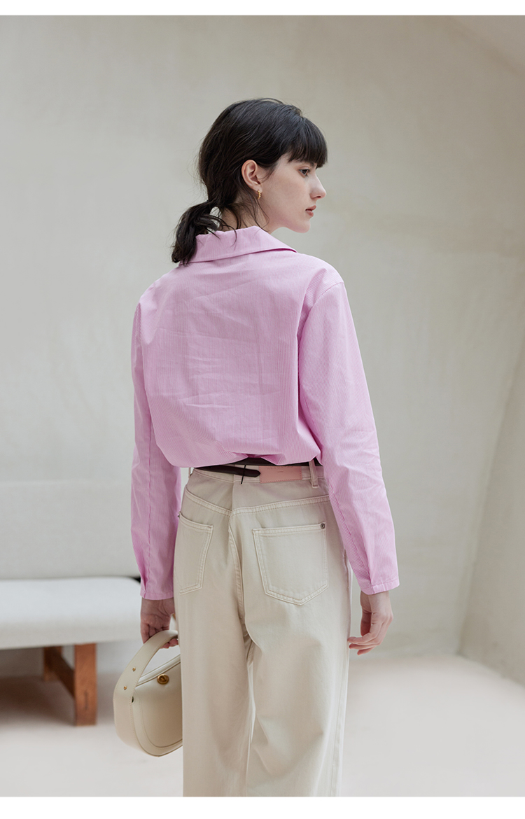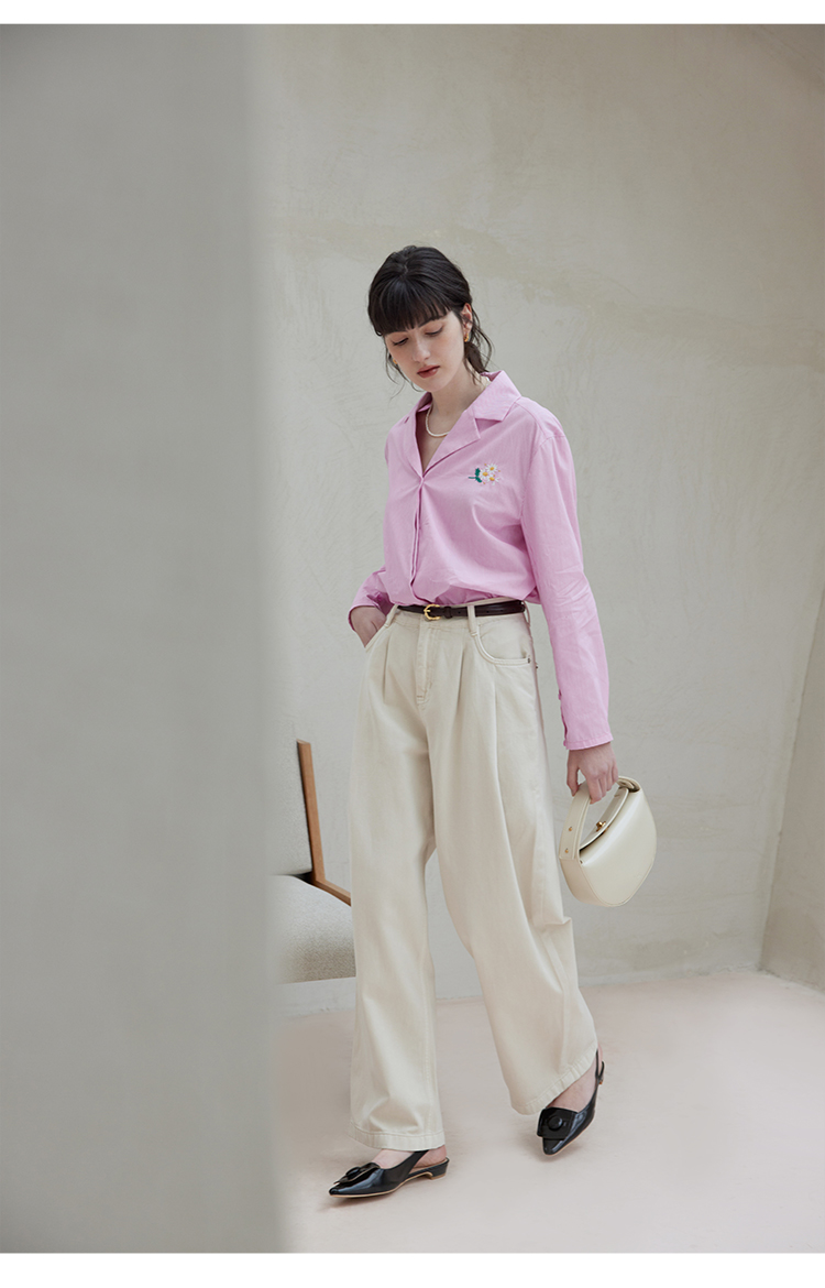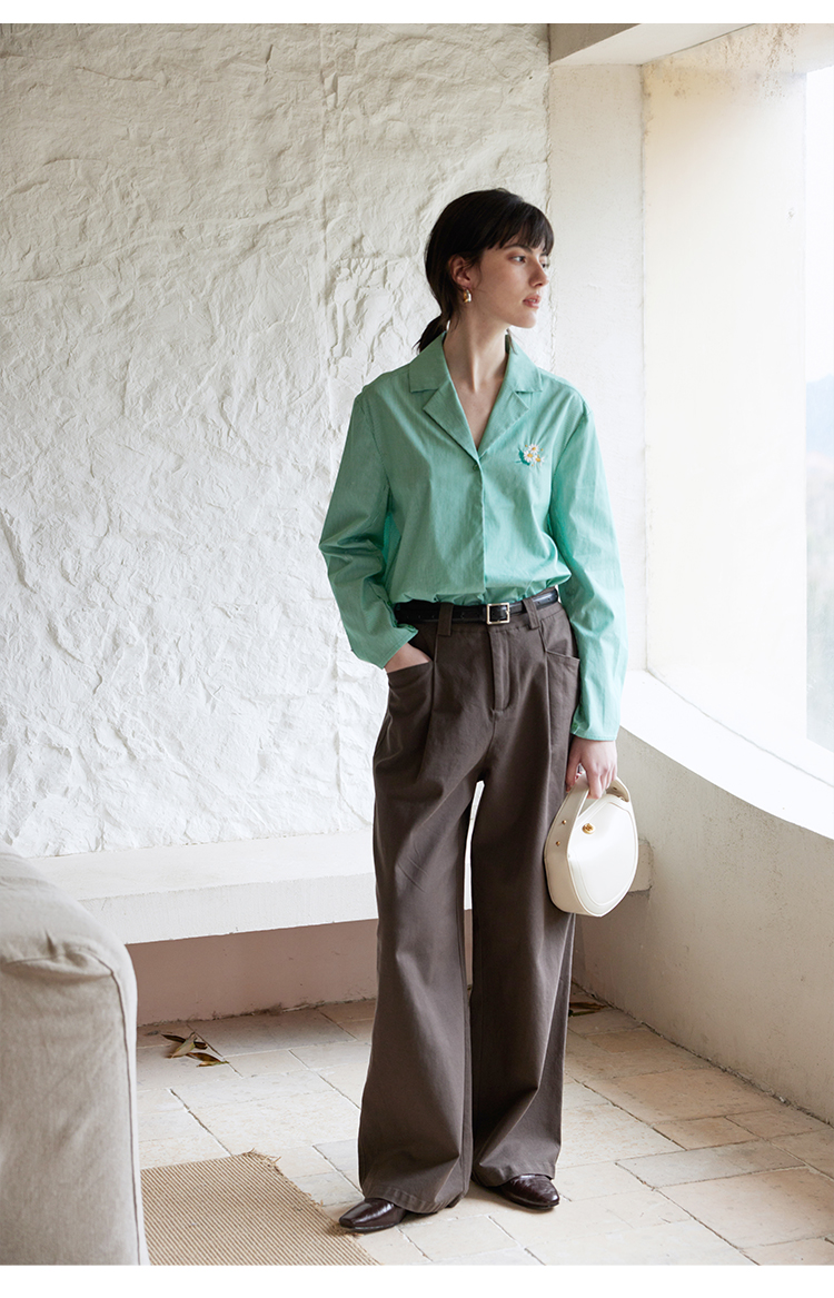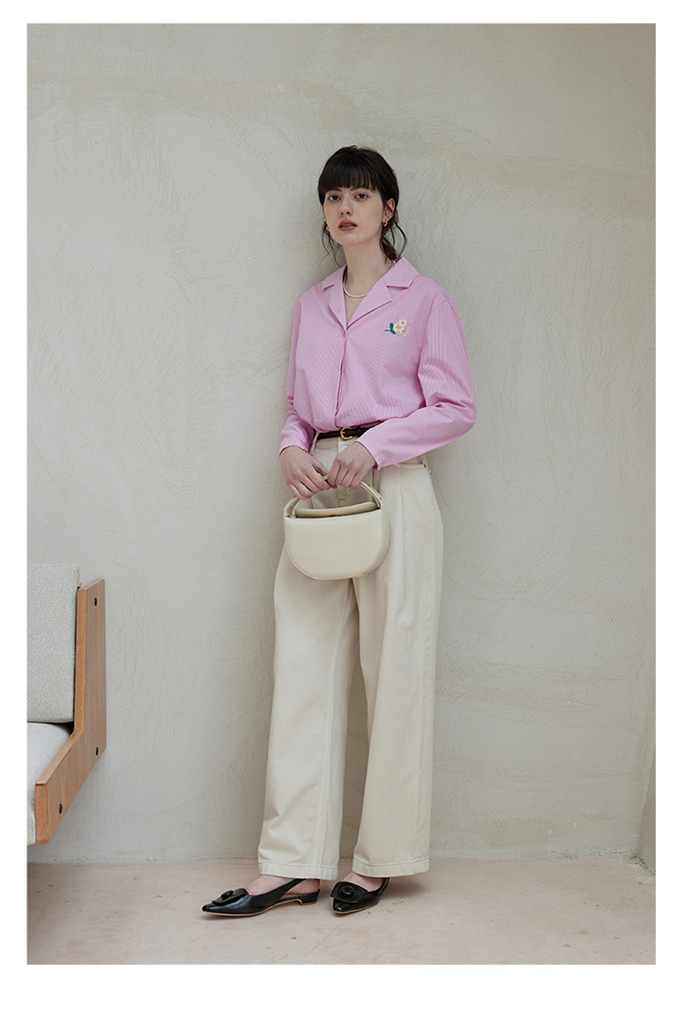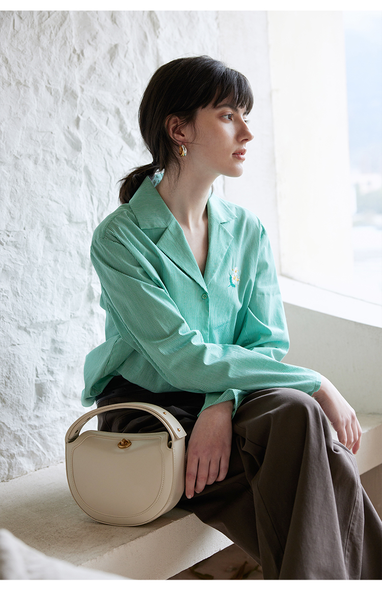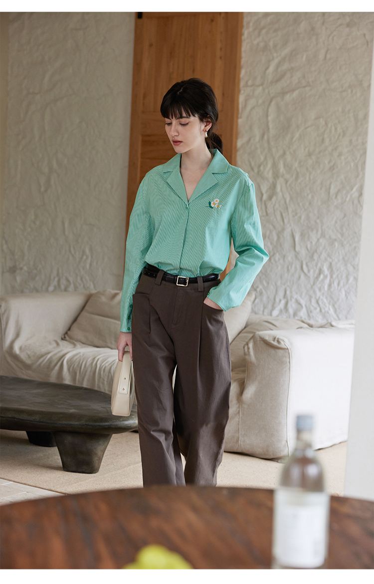 【周四精选福利】HeyDress条纹刺绣衬衣女法式复古V领小雏菊设计衬衣别致上衣