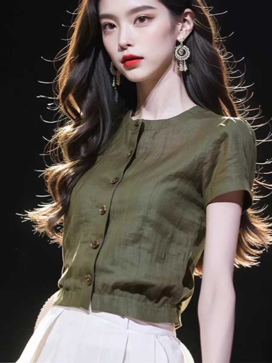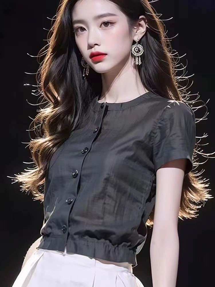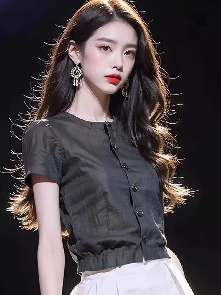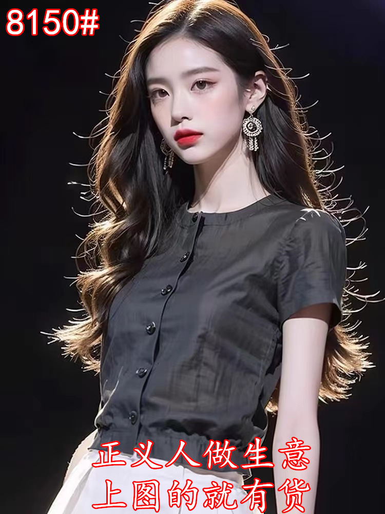 MZ1716今年流行爆款衬衫轻奢高级感别致漂亮法式独特黑色短袖上衣女夏季