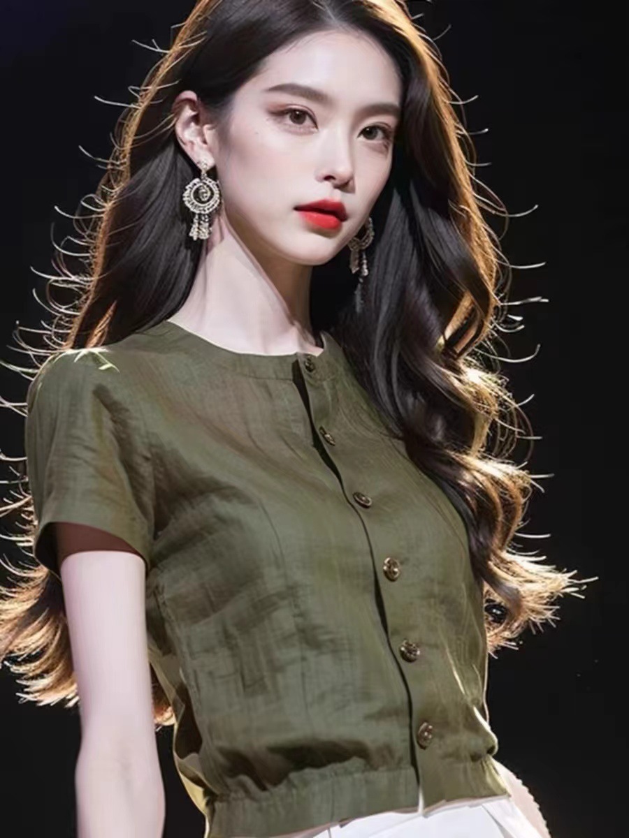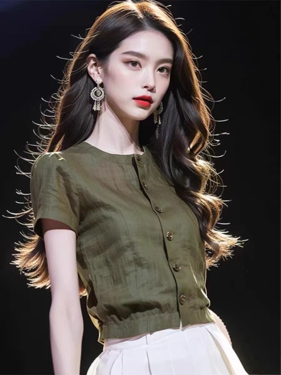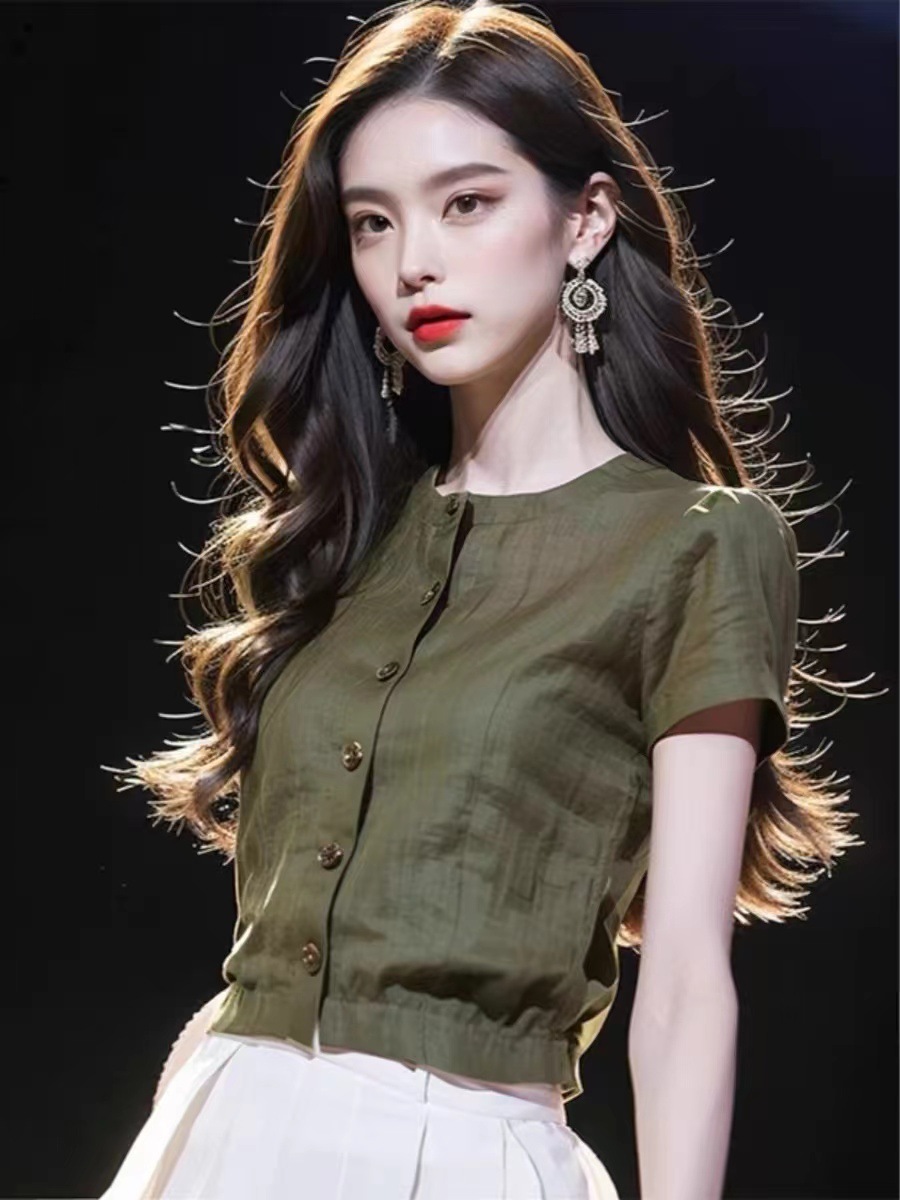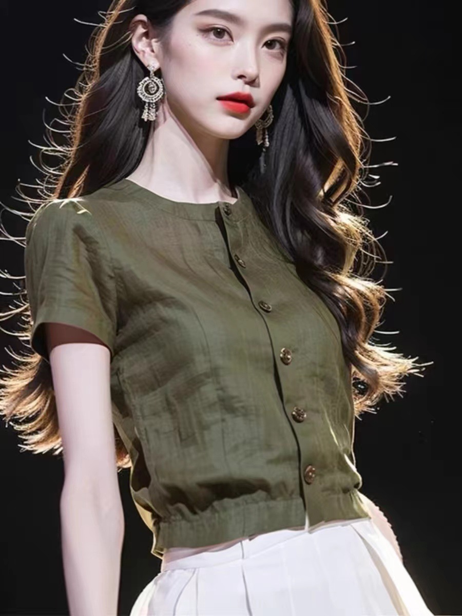 MZ1716今年流行爆款衬衫轻奢高级感别致漂亮法式独特黑色短袖上衣女夏季