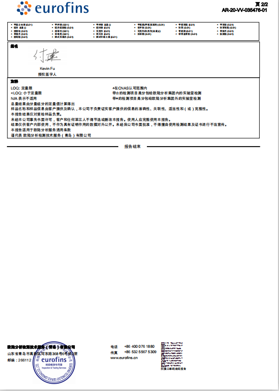 2020年144项农残检测,零检出。