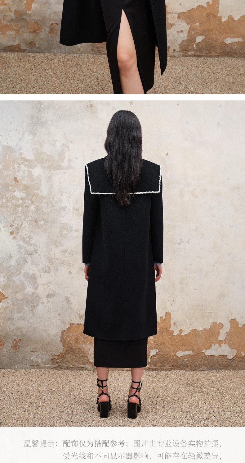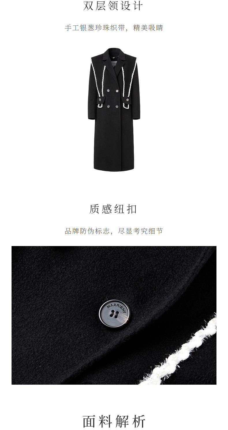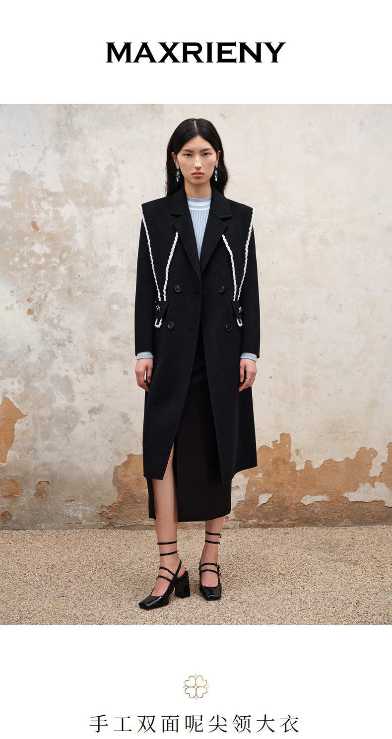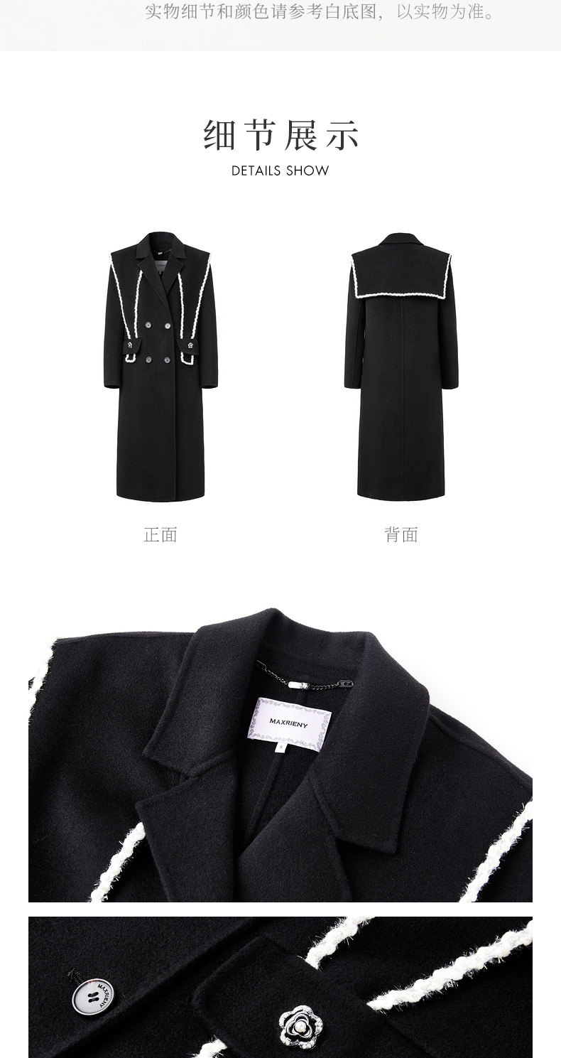 MAXRIENY复古赫本风双面呢羊毛大衣长款尖领外套(货号:MS88CT531)