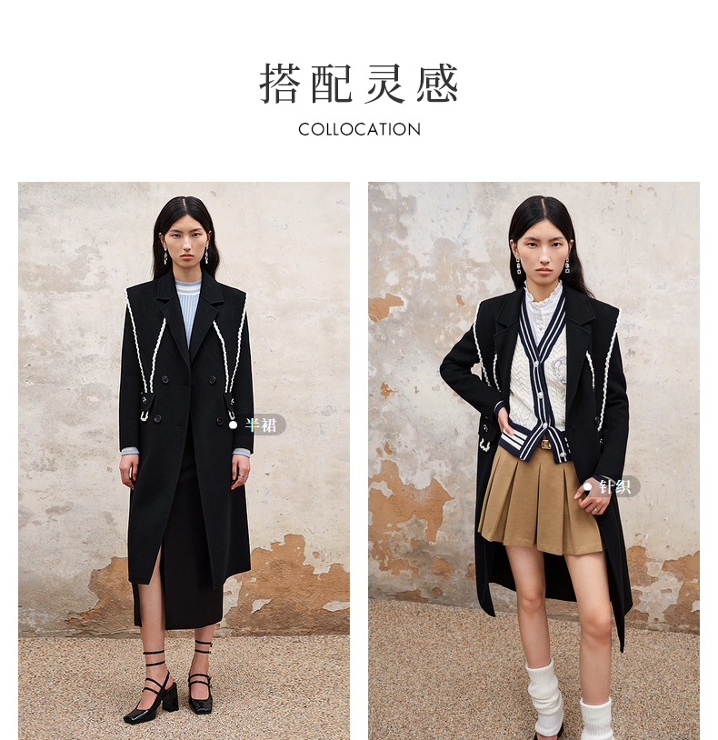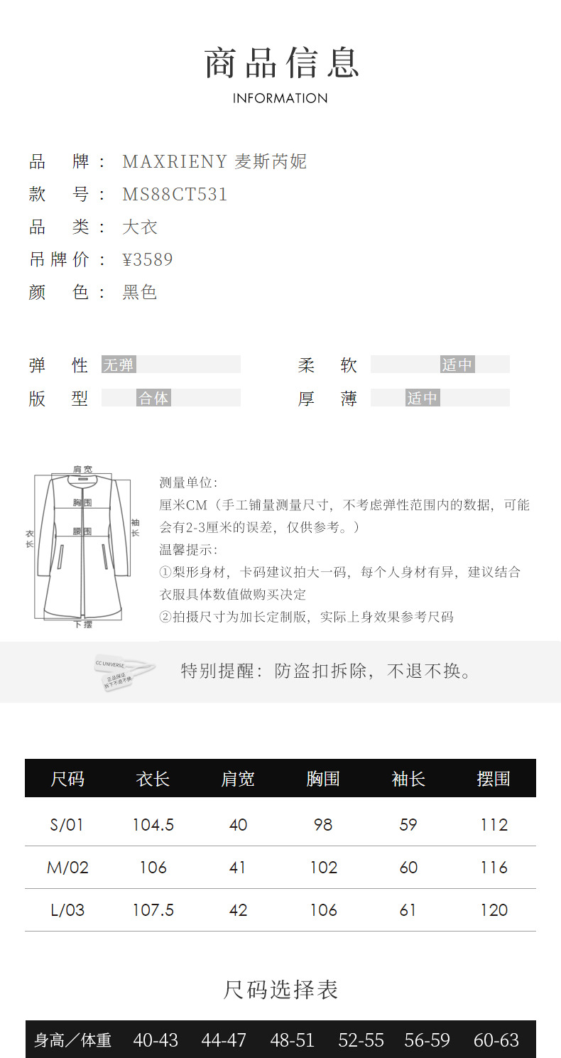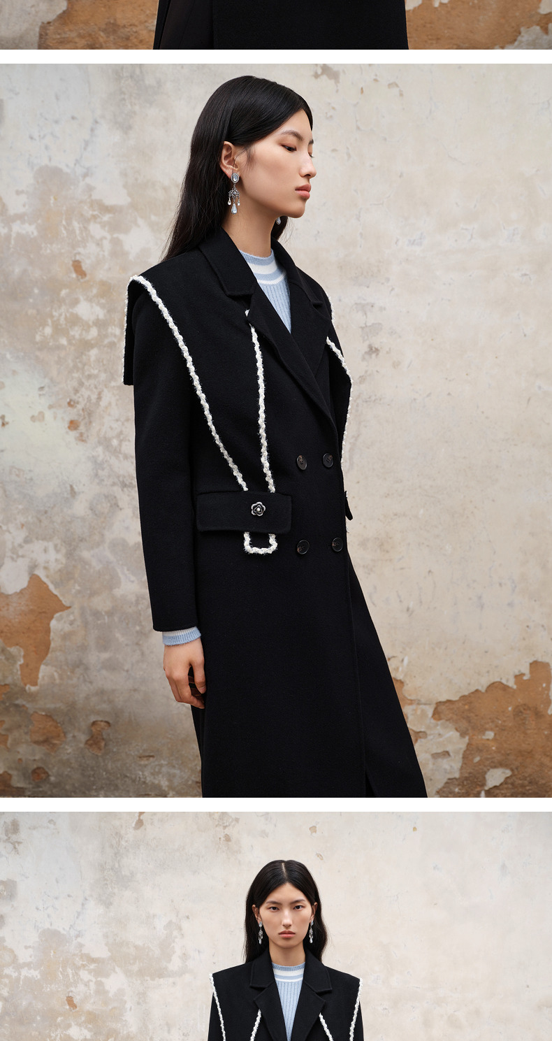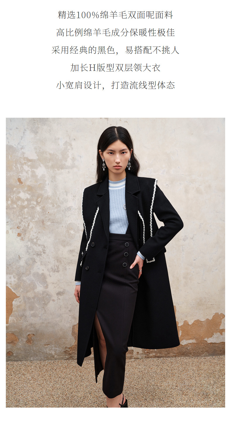 MAXRIENY复古赫本风双面呢羊毛大衣长款尖领外套(货号:MS88CT531)