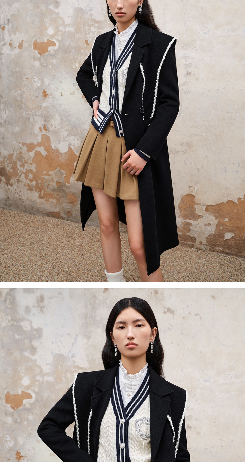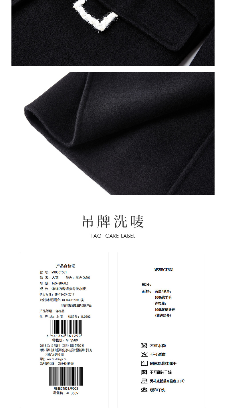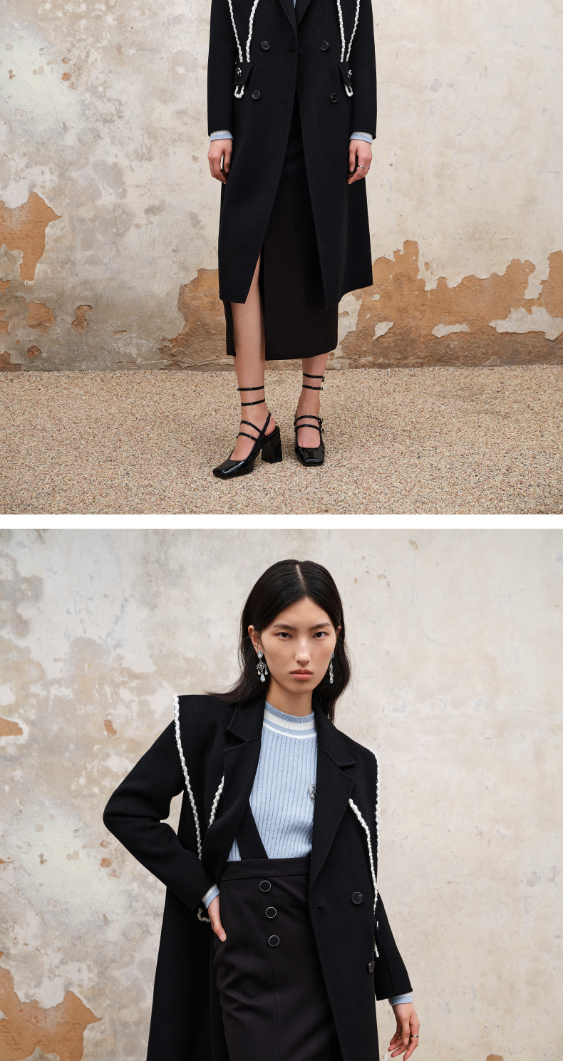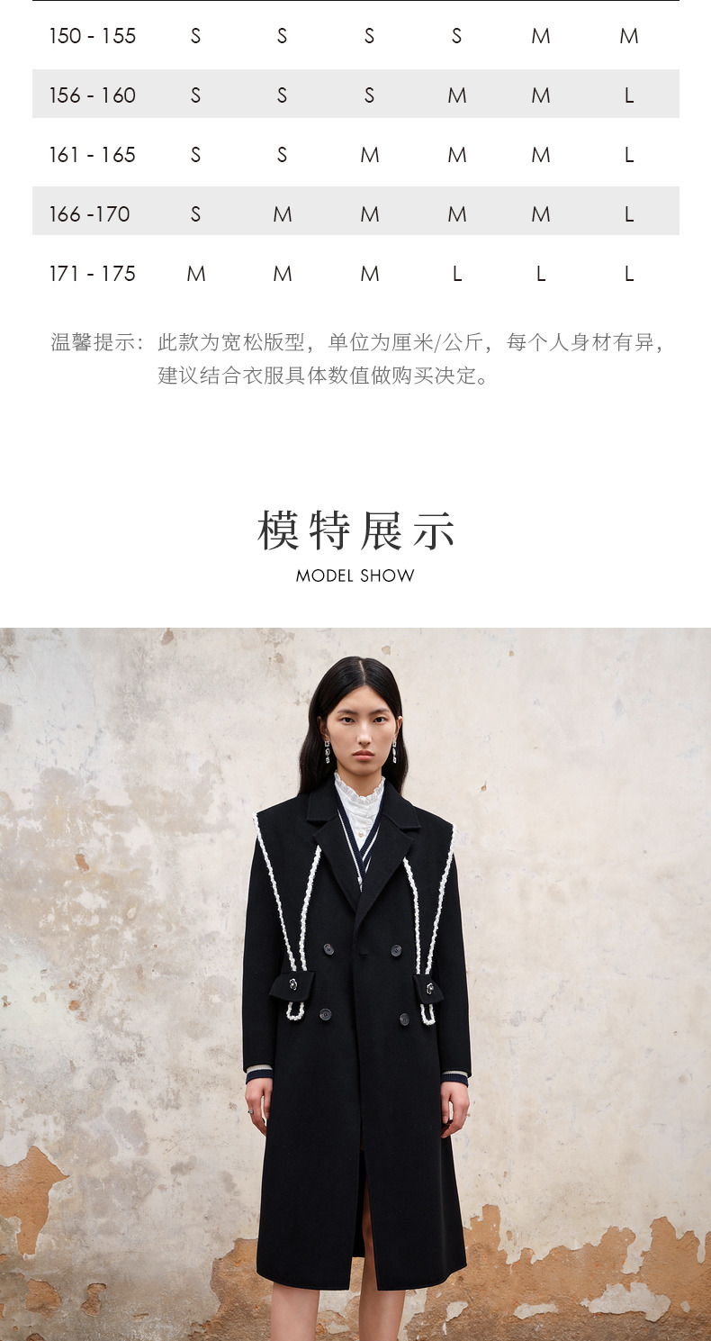 MAXRIENY复古赫本风双面呢羊毛大衣长款尖领外套(货号:MS88CT531)