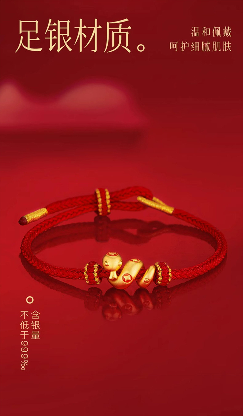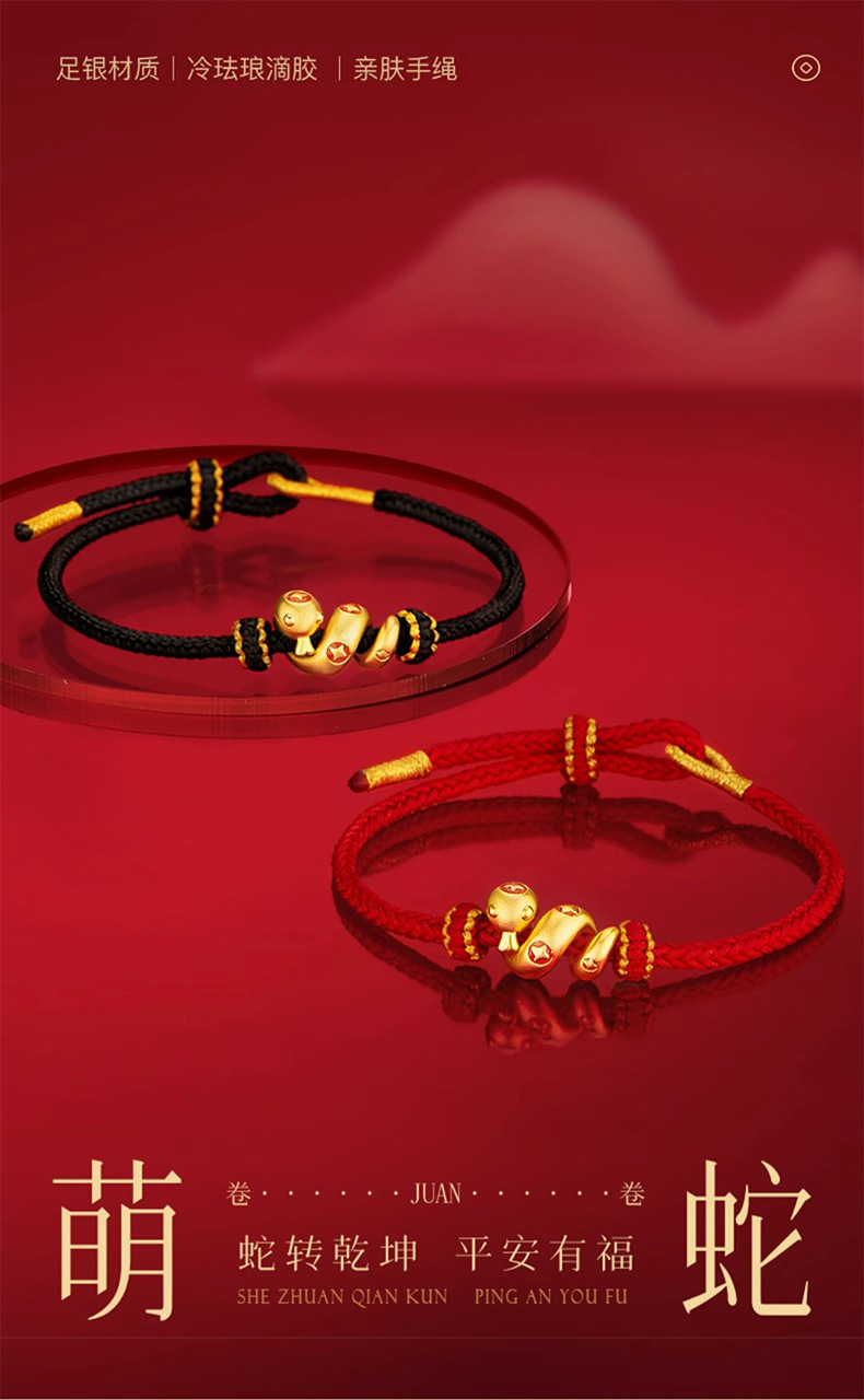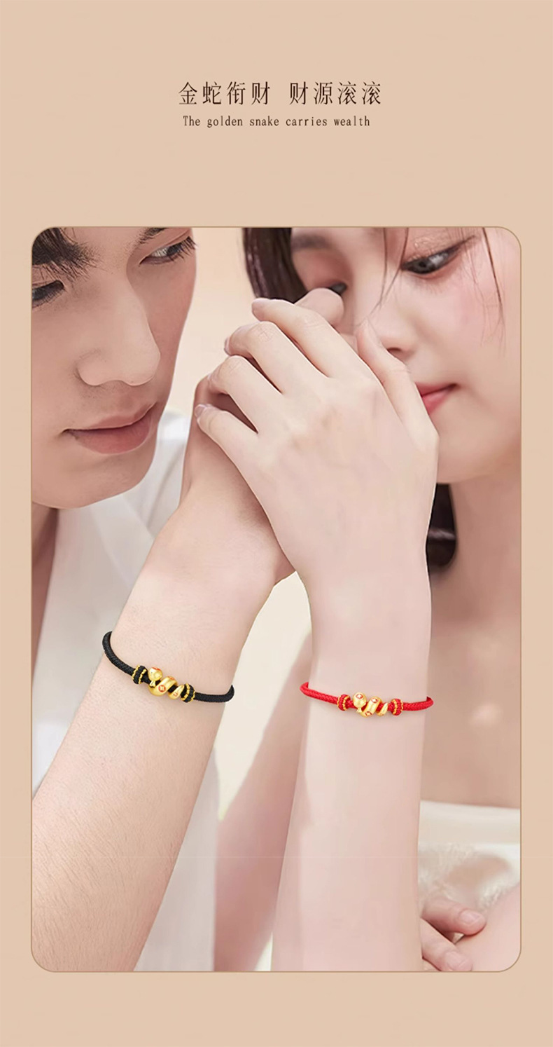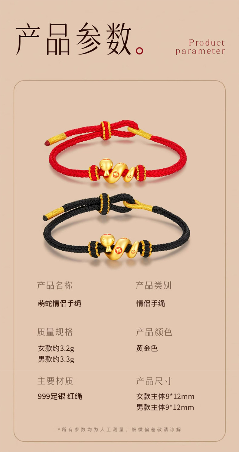 【年货节】【情人节礼物】六鑫珠宝 萌蛇情侣手绳 999足银