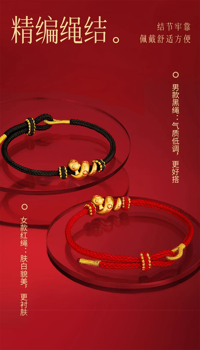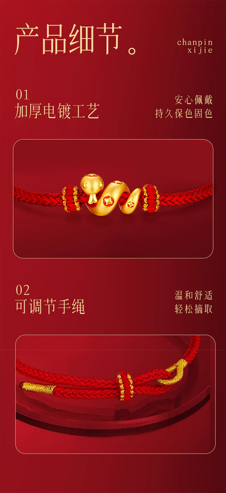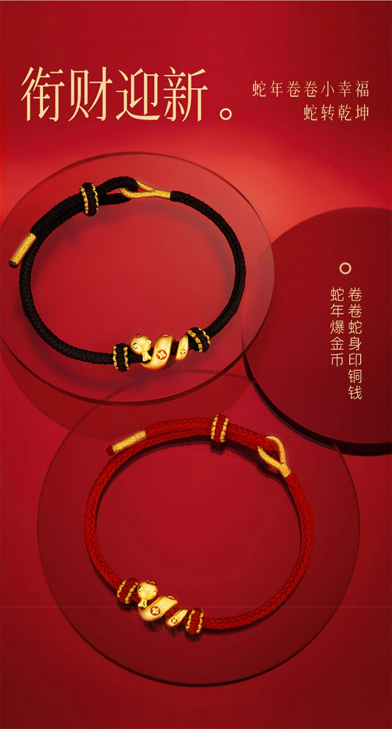 【年货节】【情人节礼物】六鑫珠宝 萌蛇情侣手绳 999足银