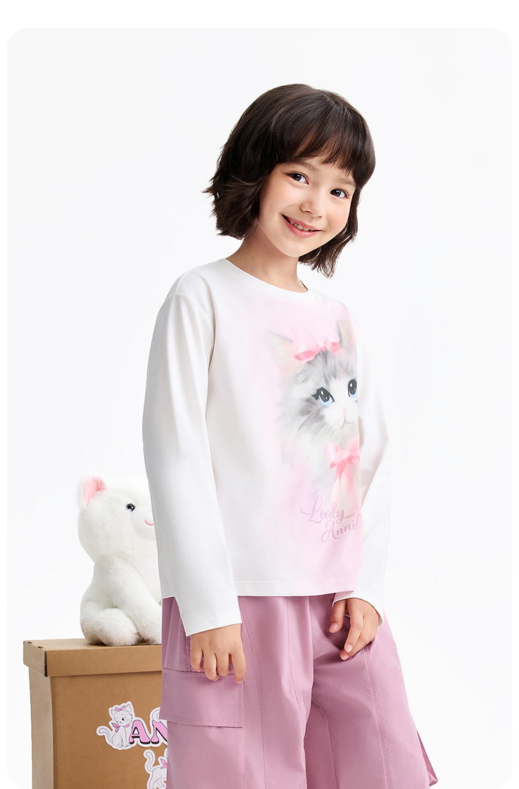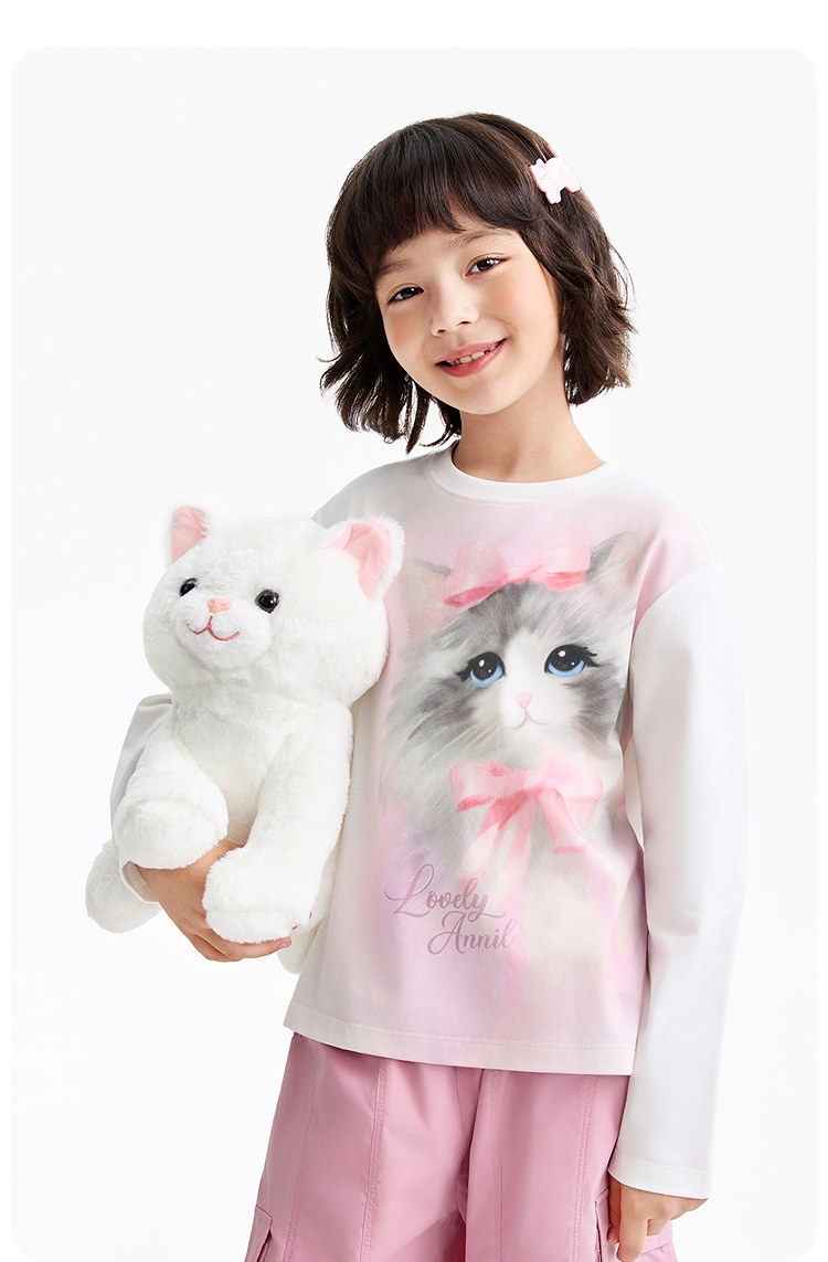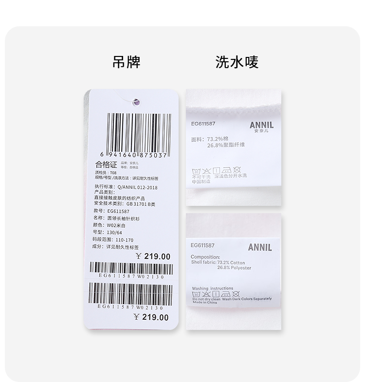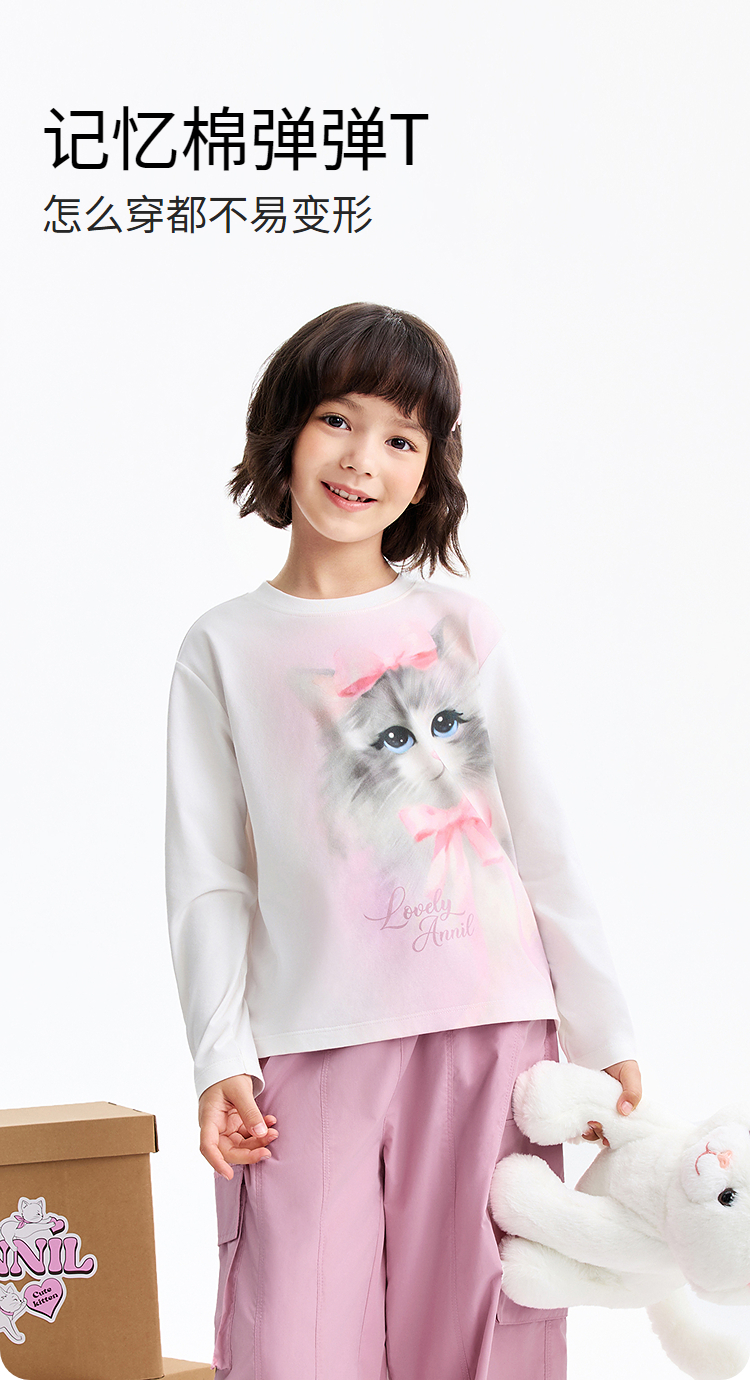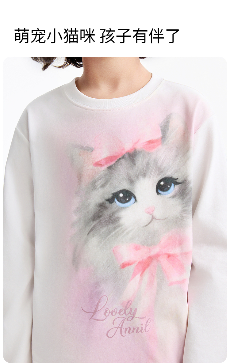 女童圆领长袖针织衫春季新款安奈儿童装EG611587