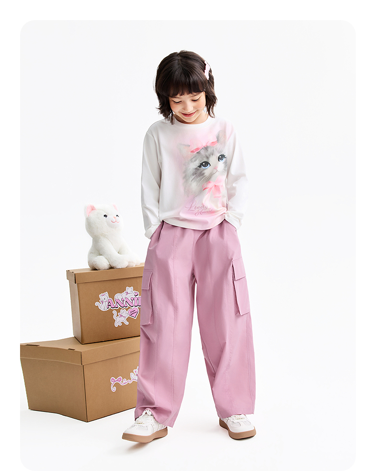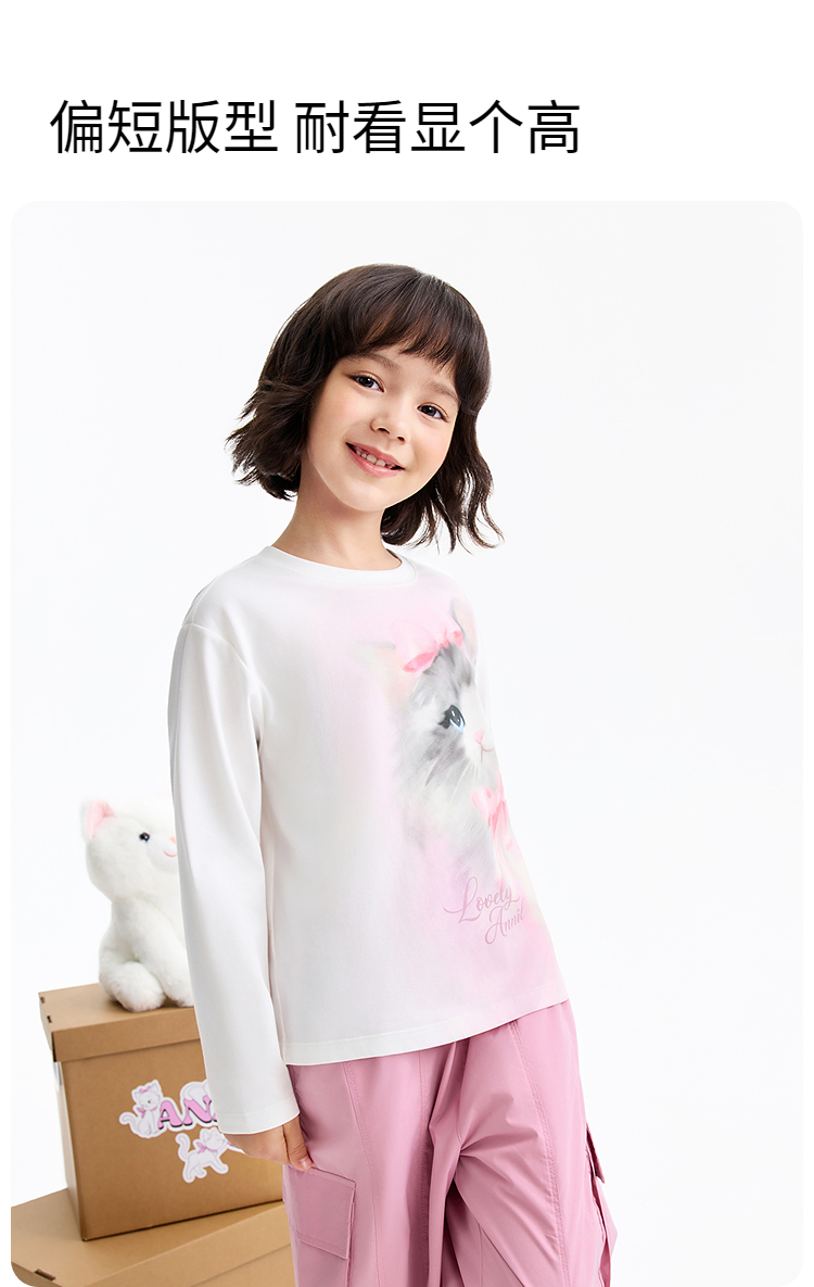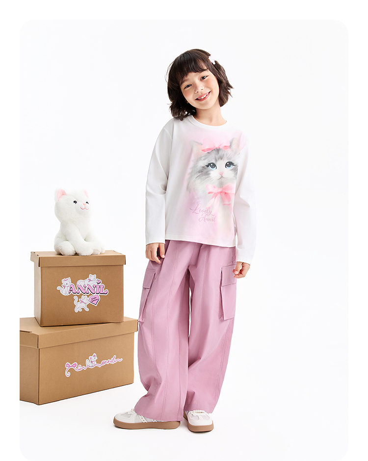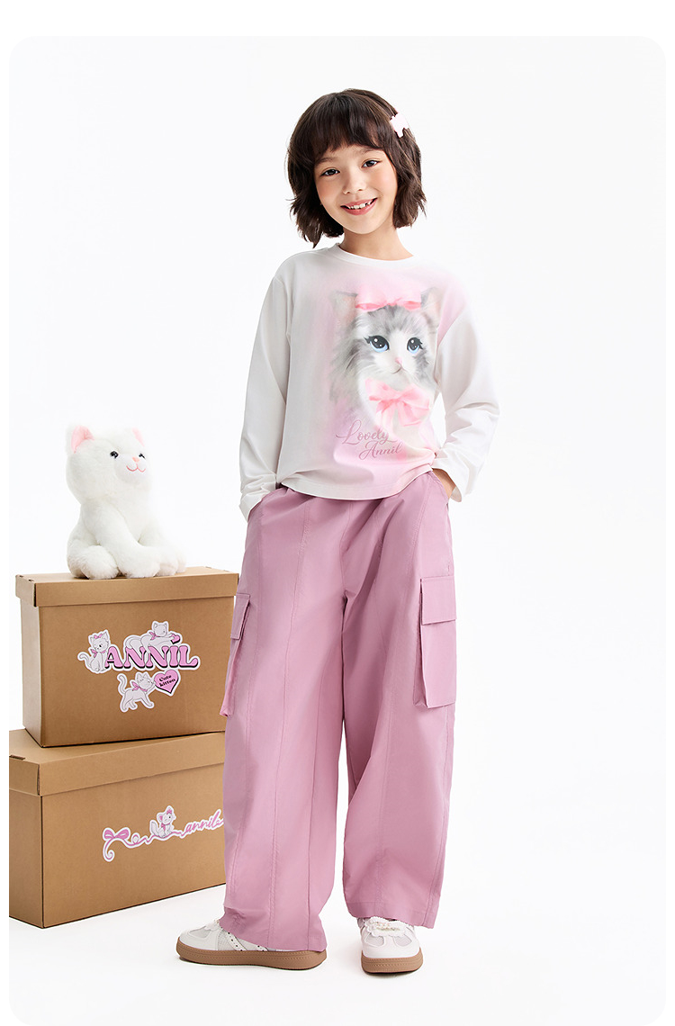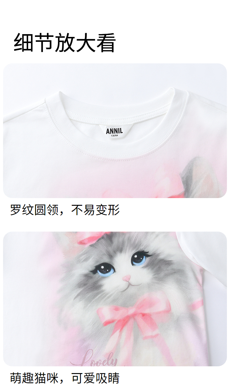 女童圆领长袖针织衫春季新款安奈儿童装EG611587
