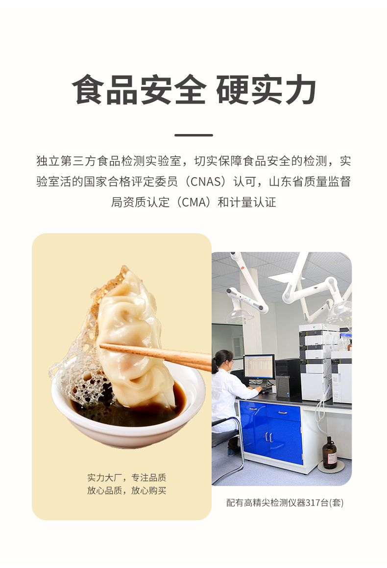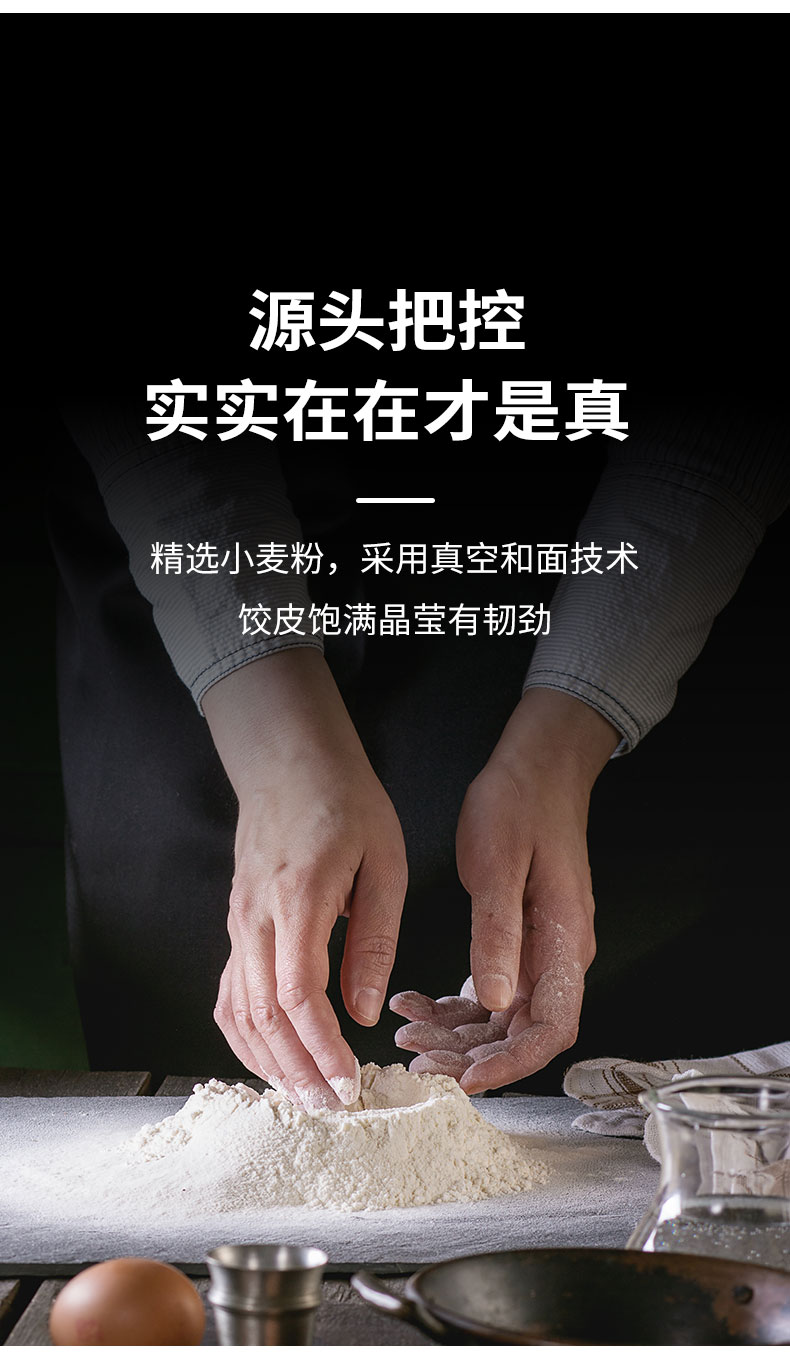 2、精选麦芯粉,真空和面工艺,饺皮自然弹嫩劲道。