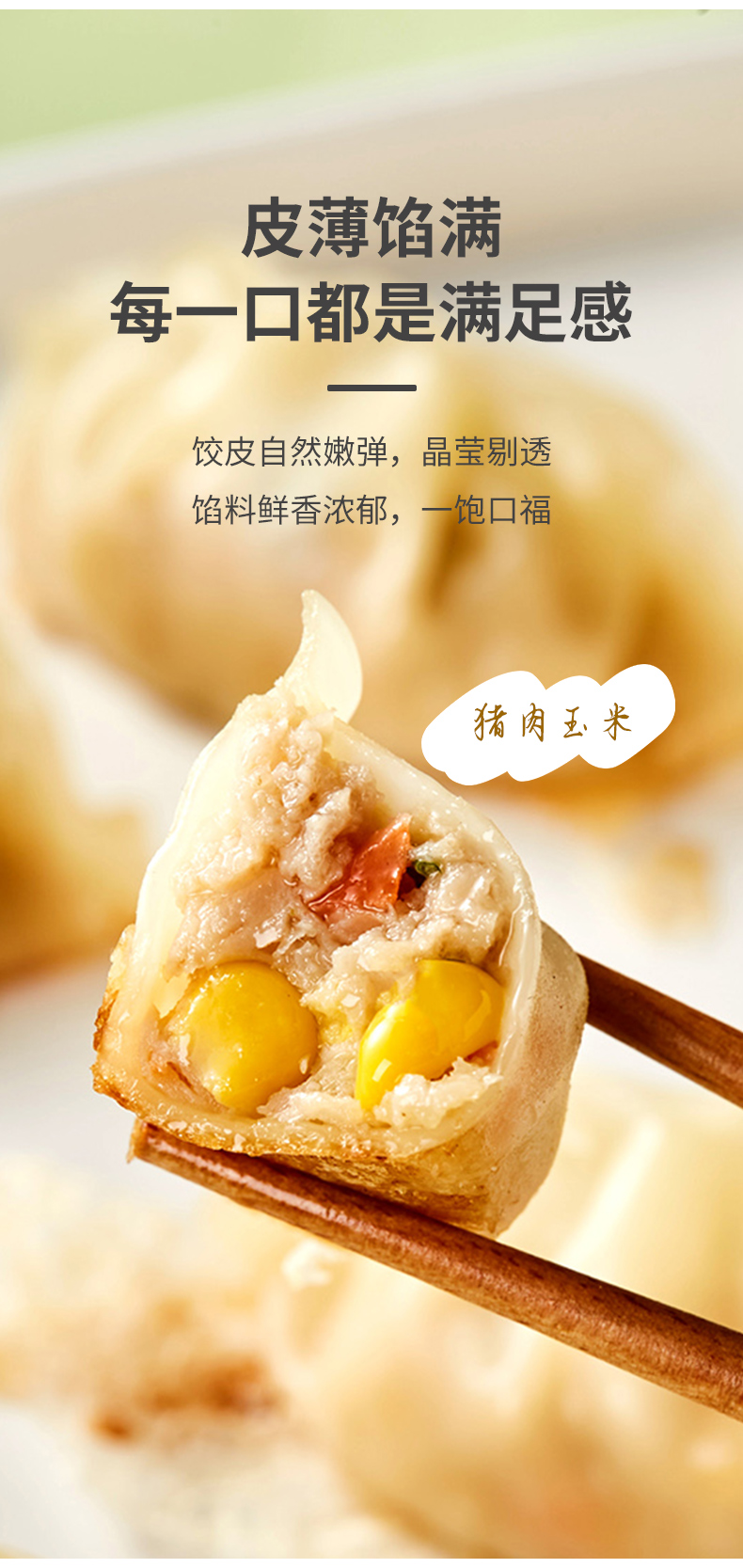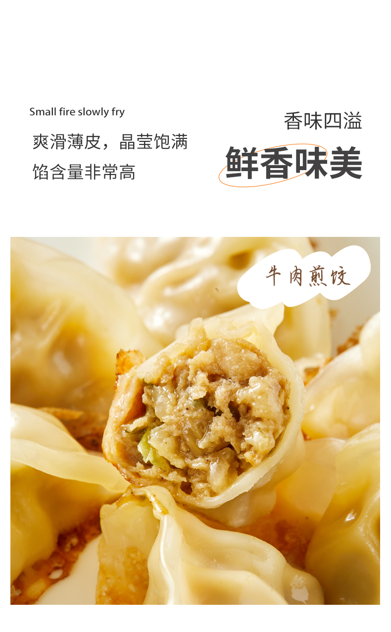希望你一定要拥有的一款极具诱惑力的煎饺,宅家必囤的速食产品,牛肉馅料、猪肉玉米粒两种口味的煎饺,会让你更加惊喜的发现,它是集口感美貌于一身的“完美煎饺”。