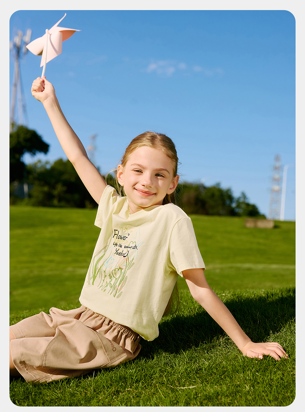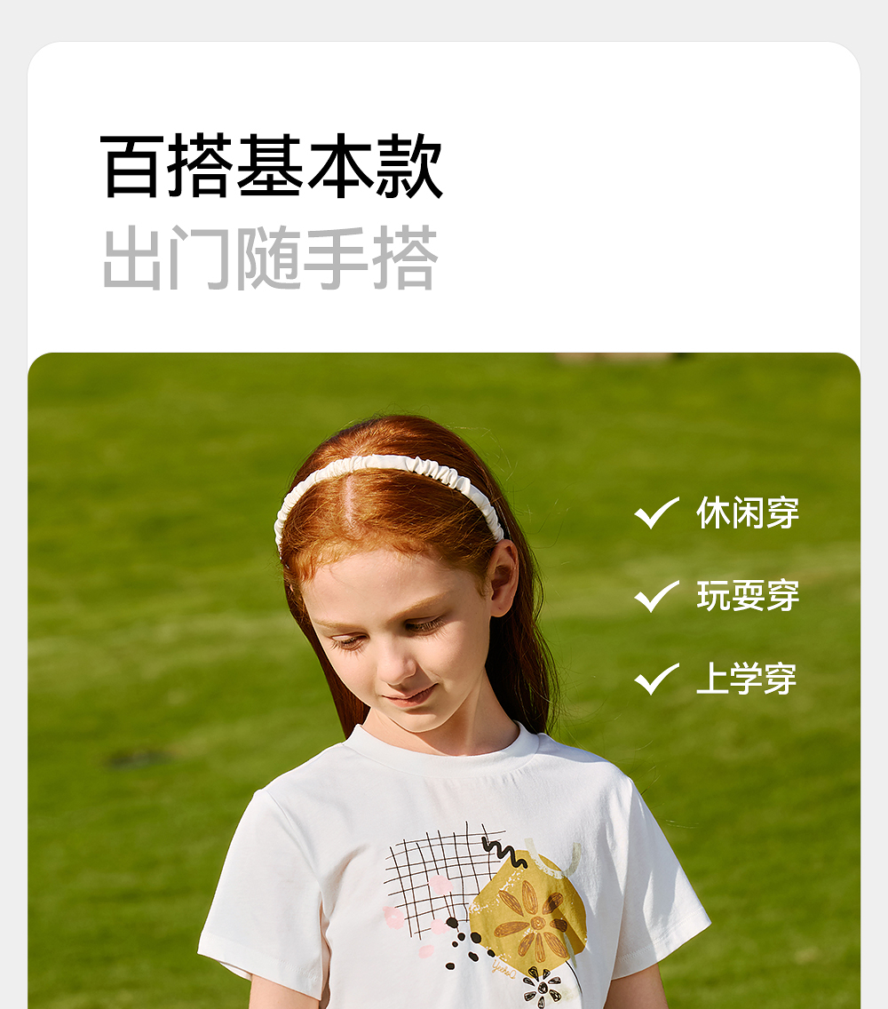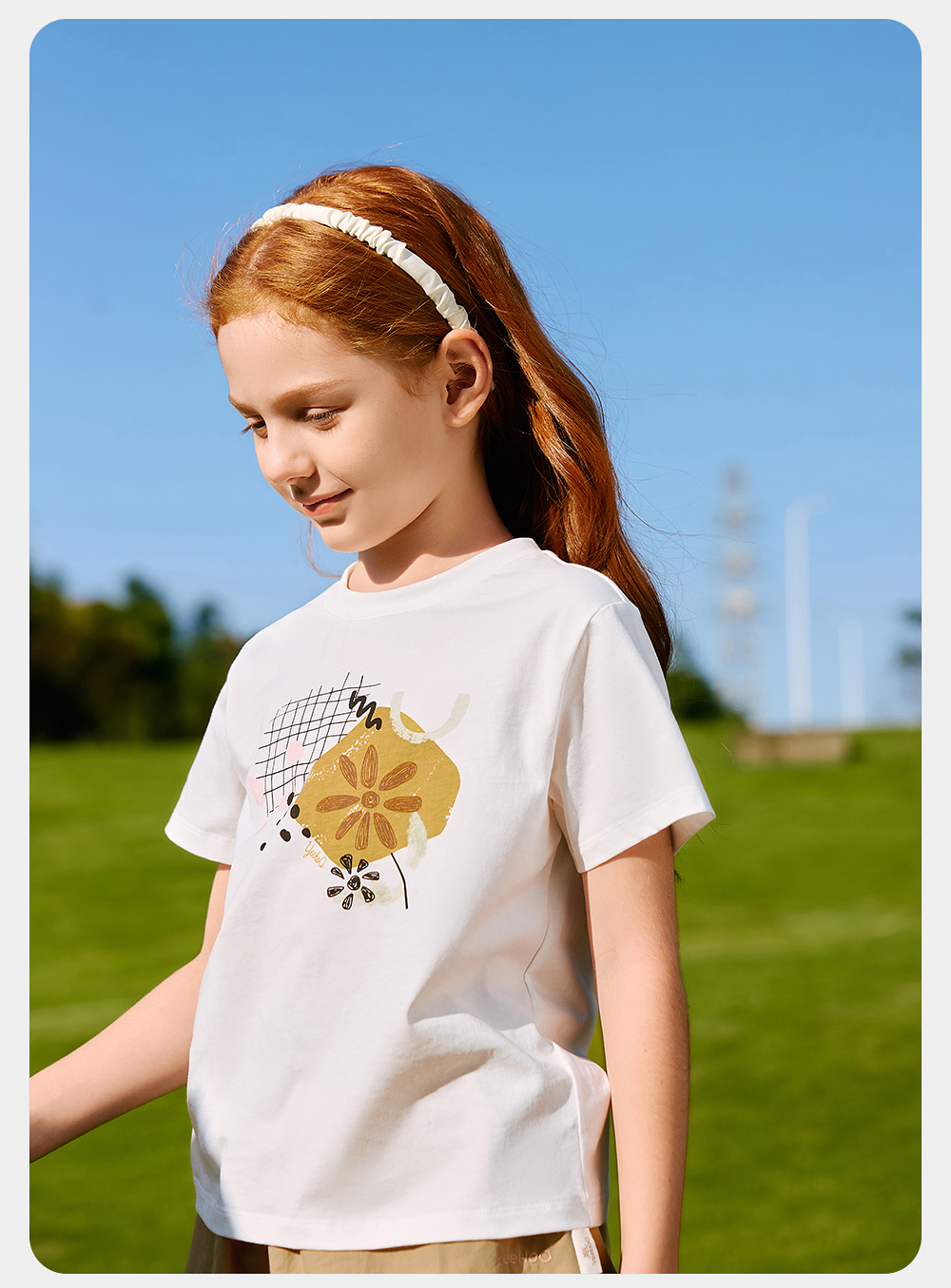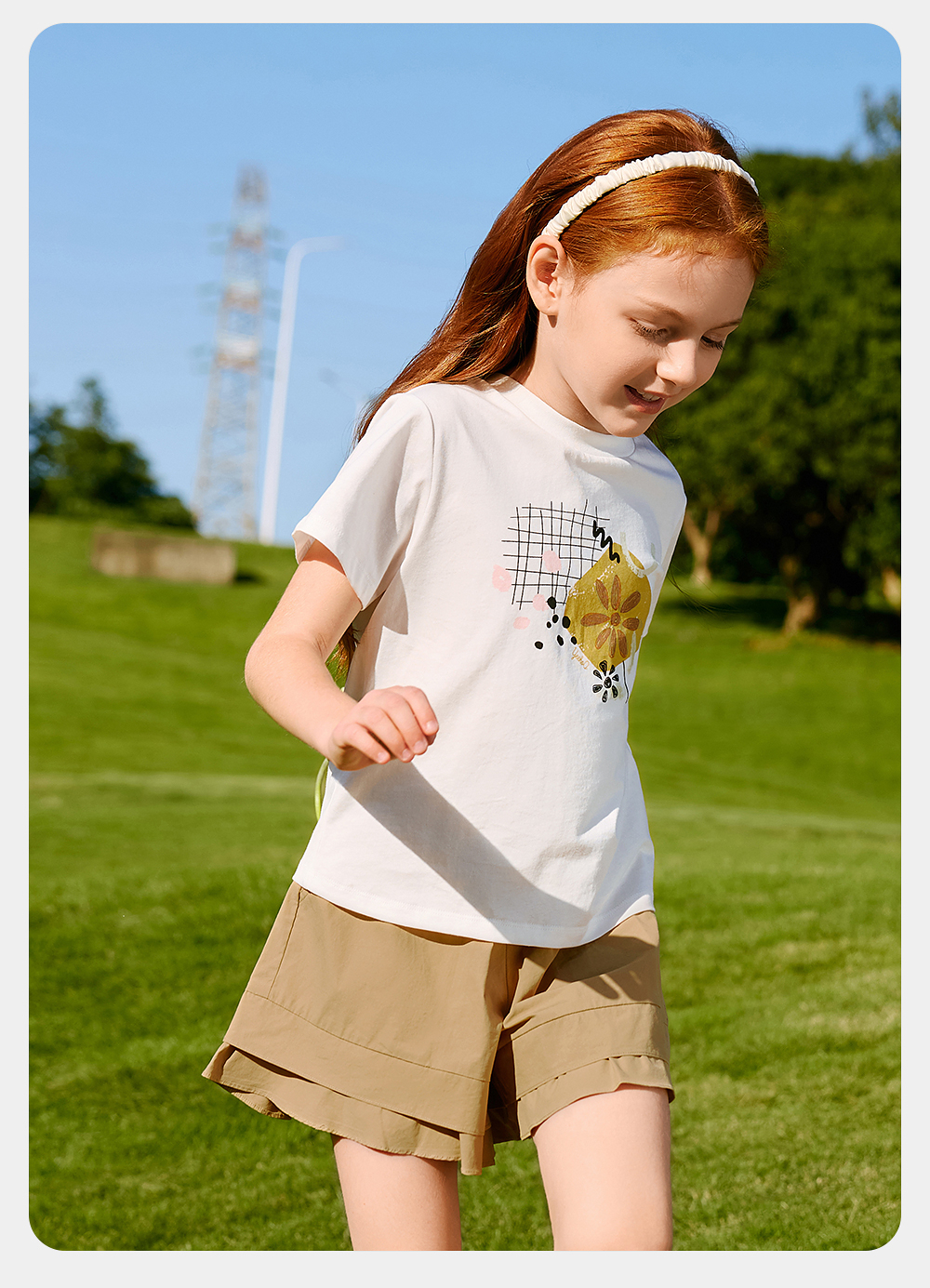 英氏儿童T恤夏季纯棉透气女童T恤中大童基础款百搭短袖上衣新款