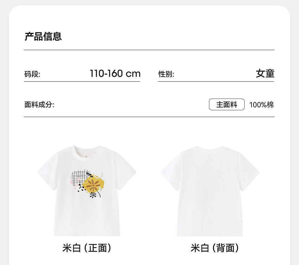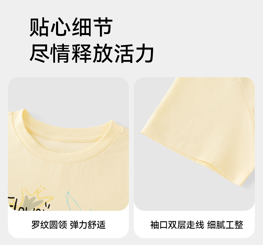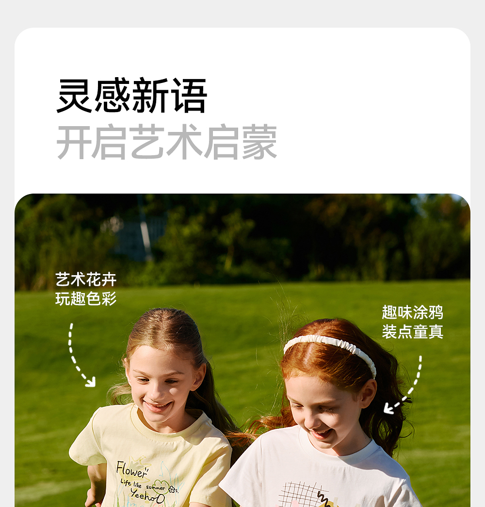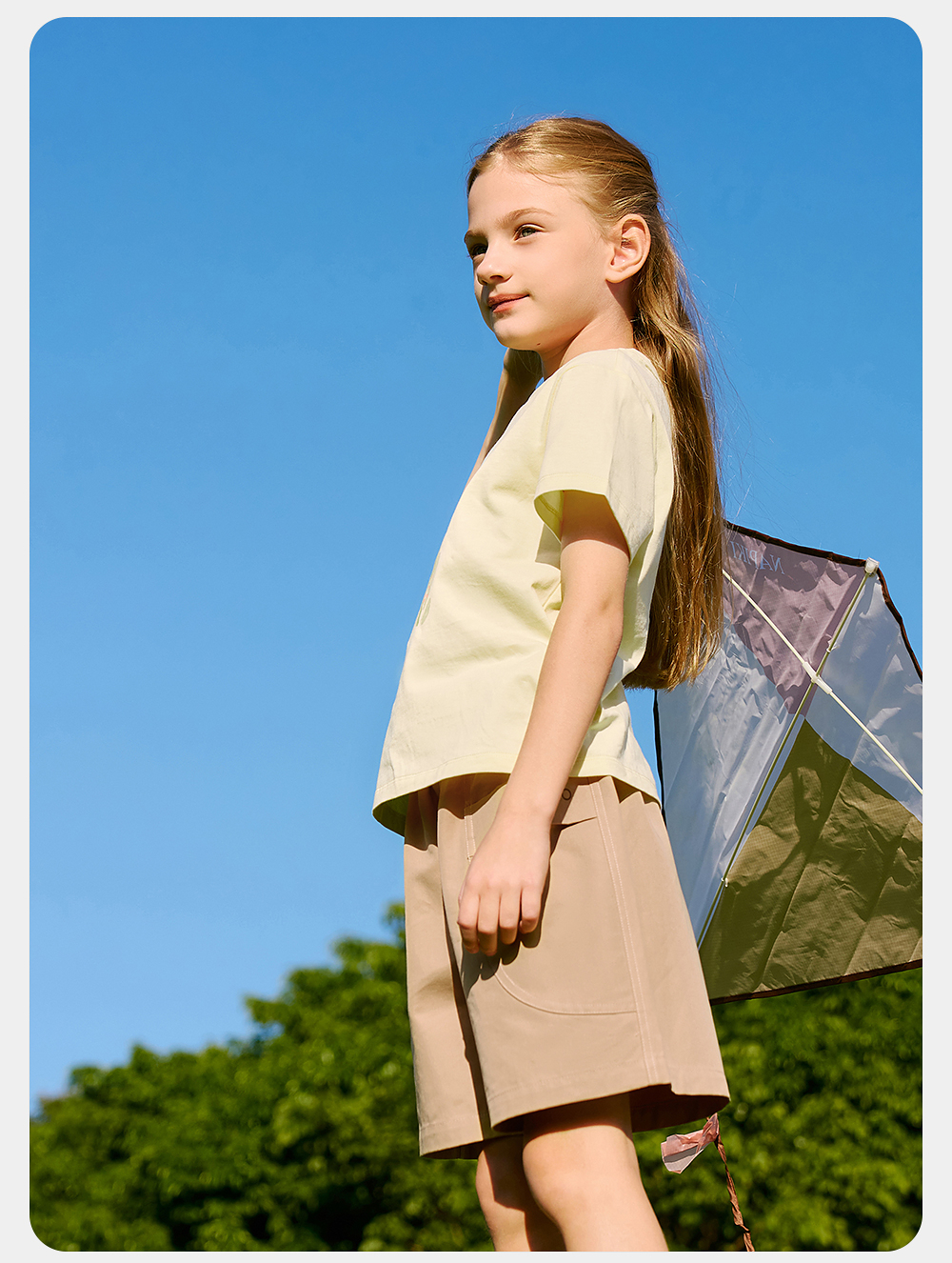 英氏儿童T恤夏季纯棉透气女童T恤中大童基础款百搭短袖上衣新款