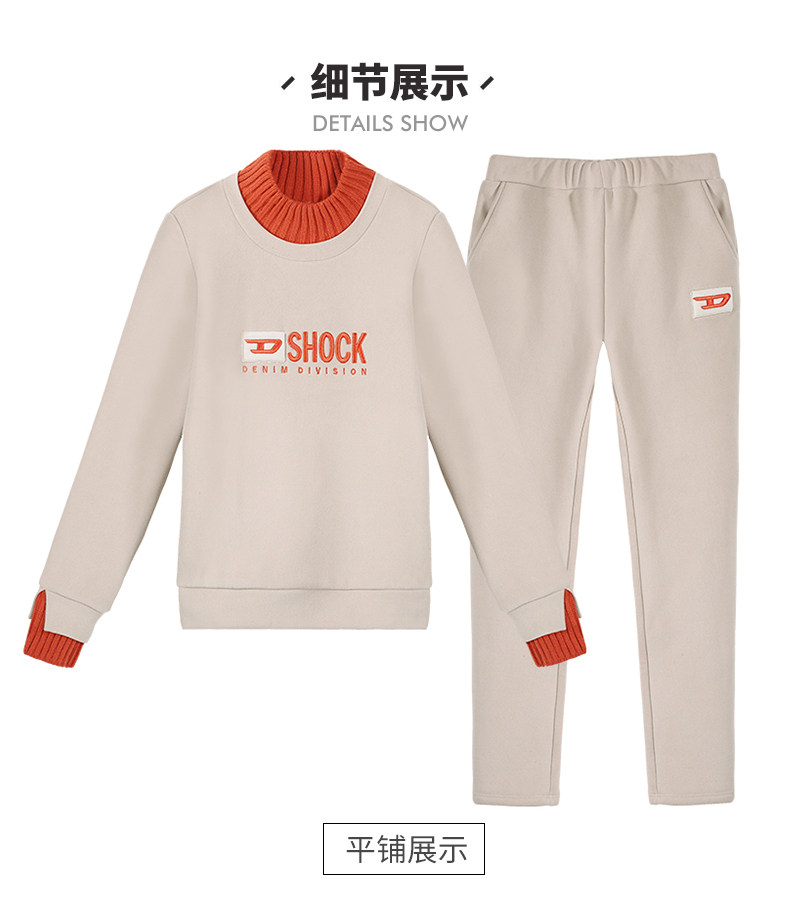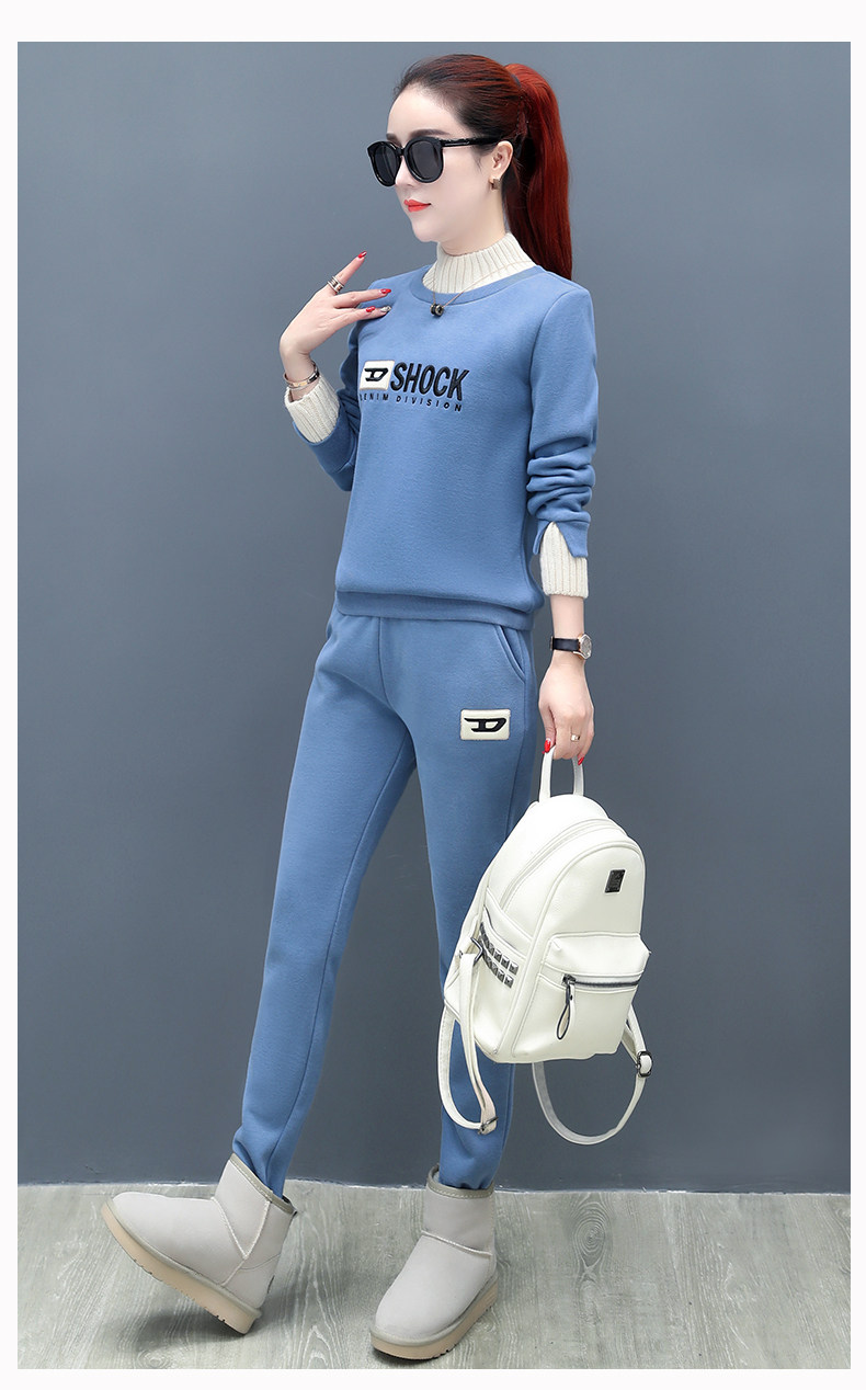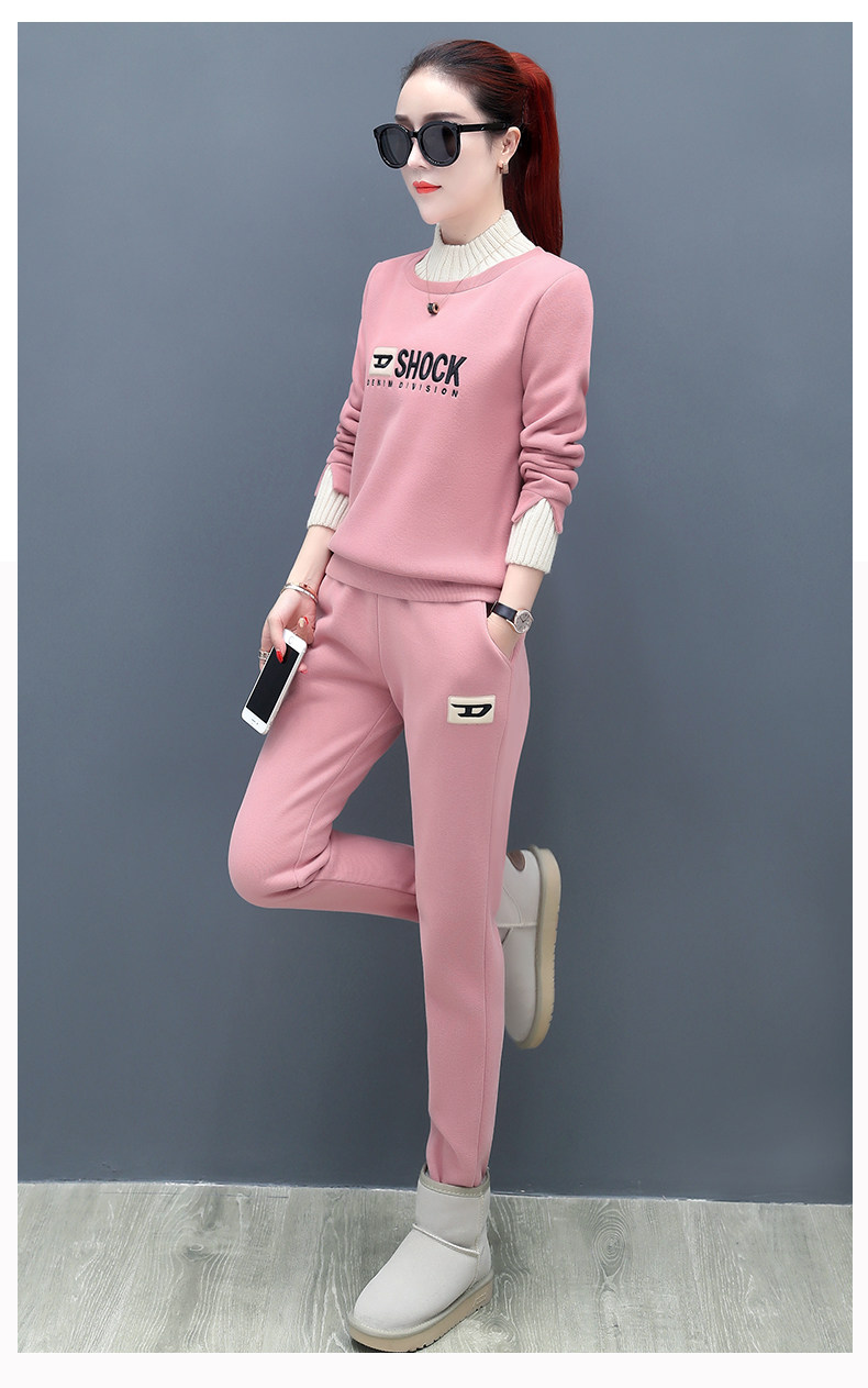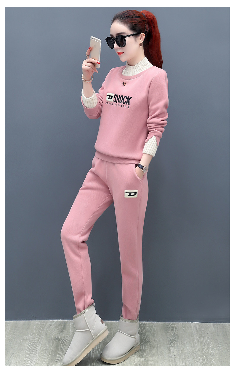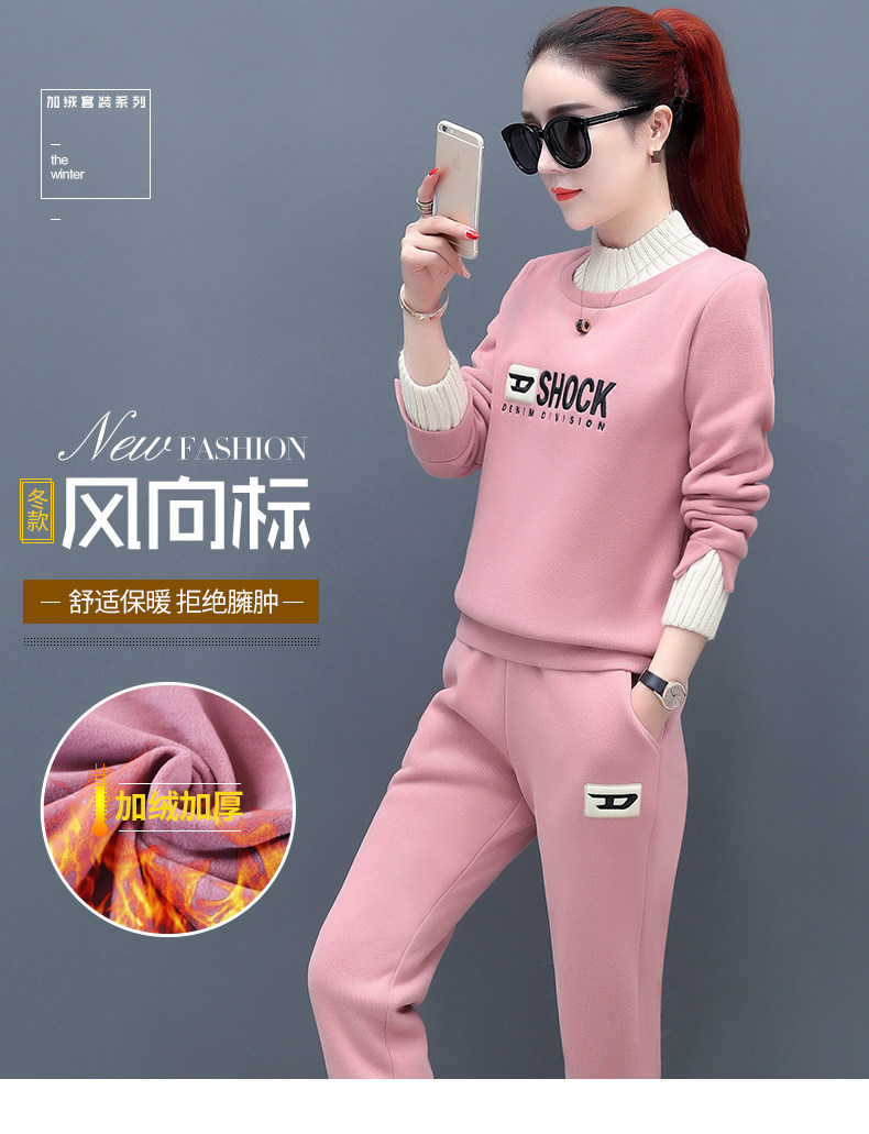 SP-DYJ93331秋冬新款时尚加绒加厚卫衣保暖显瘦休闲运动两件套
