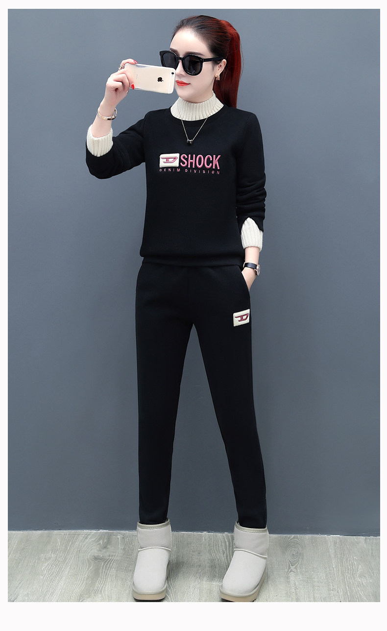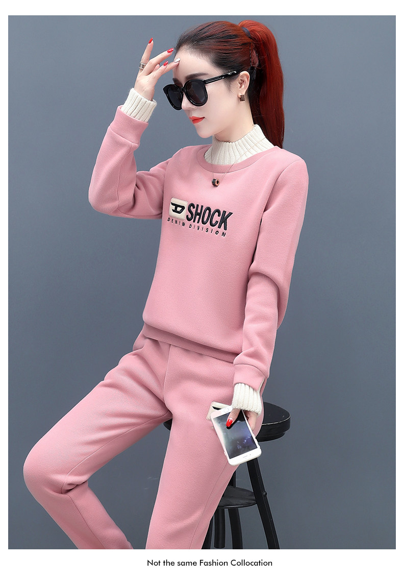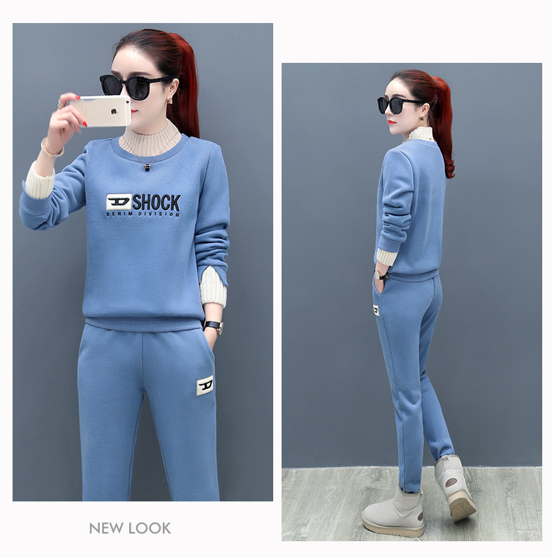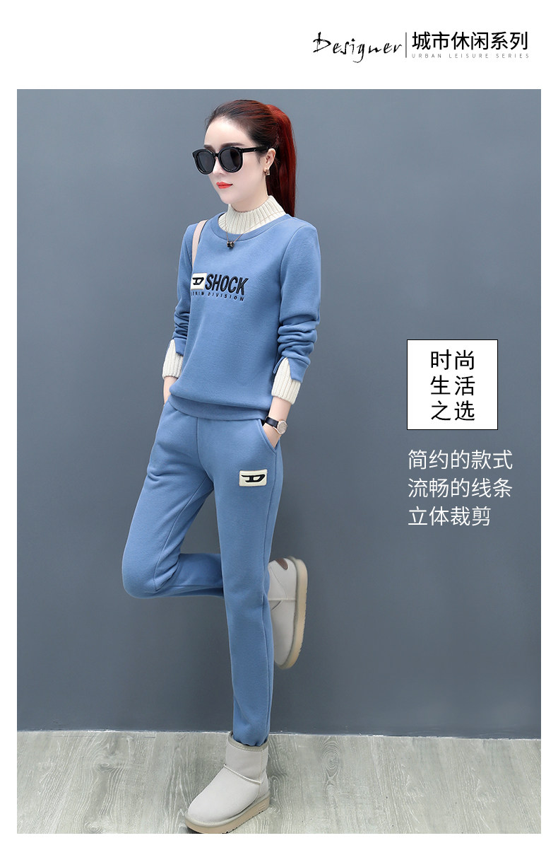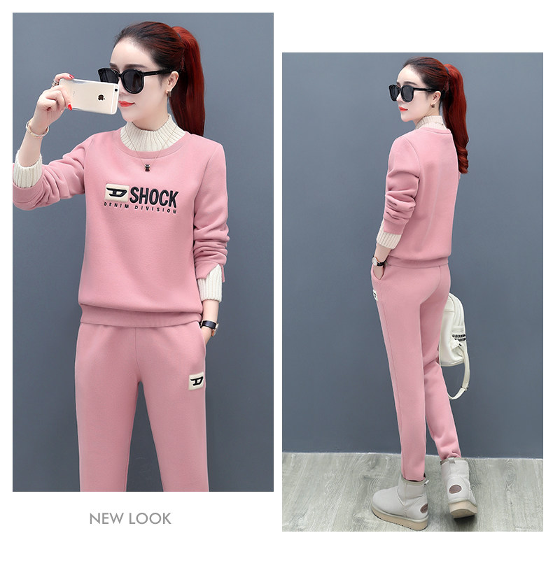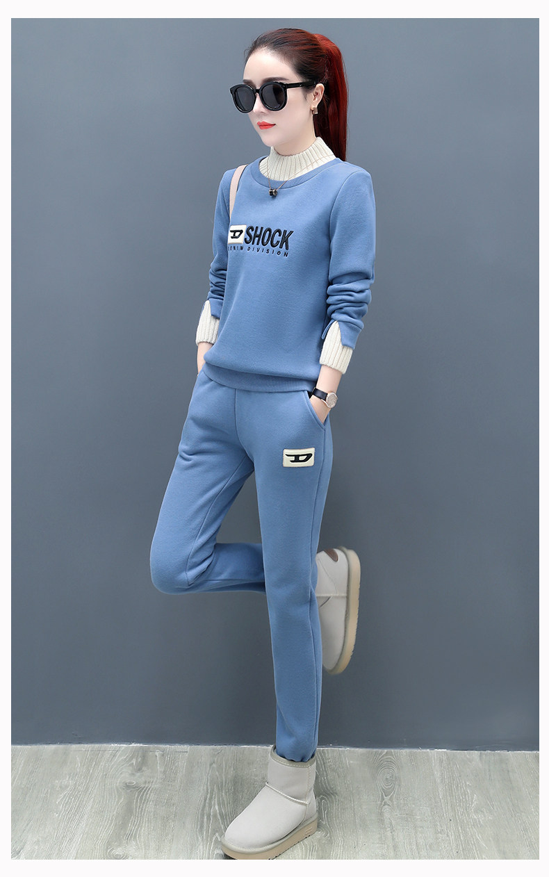 SP-DYJ93331秋冬新款时尚加绒加厚卫衣保暖显瘦休闲运动两件套
