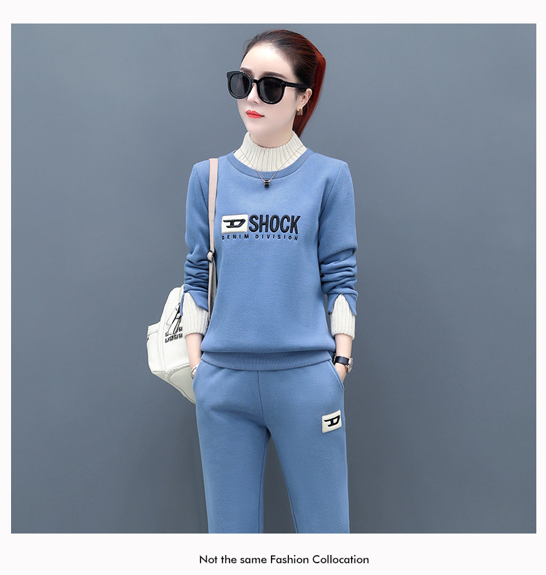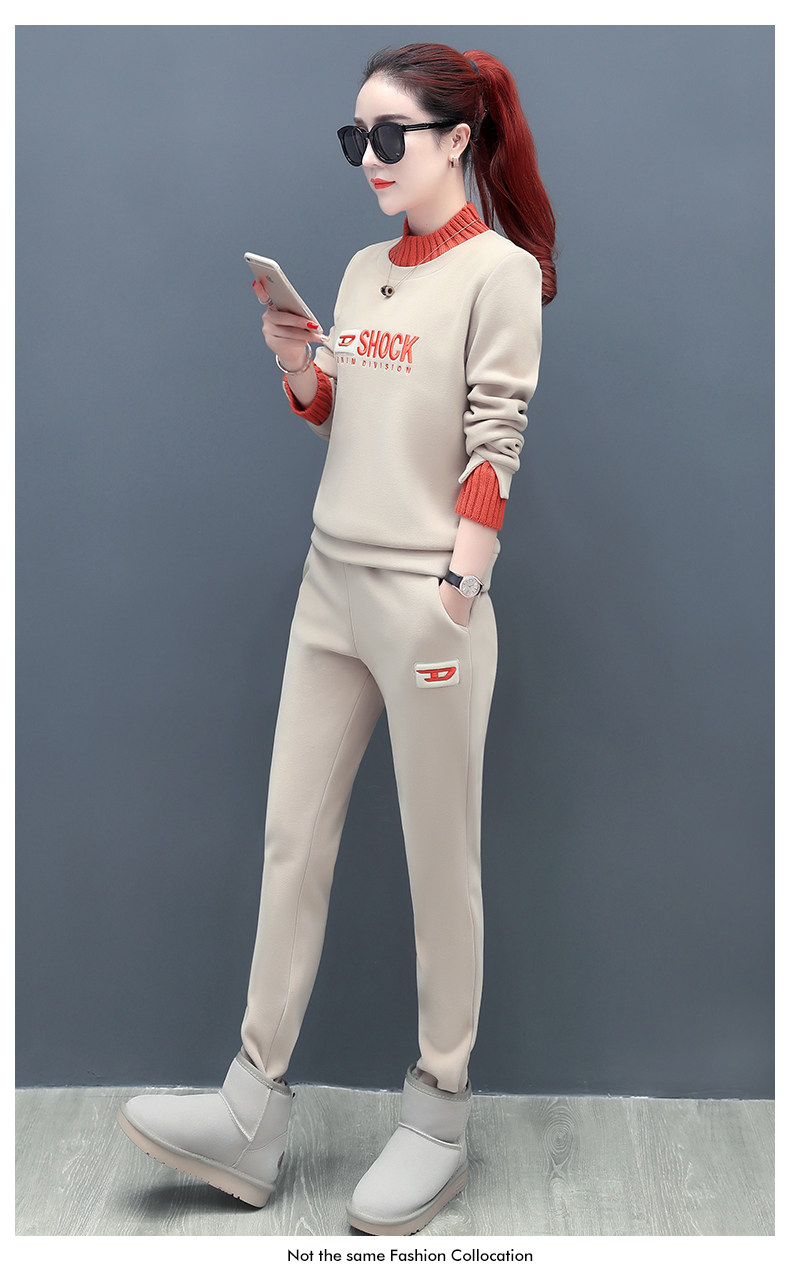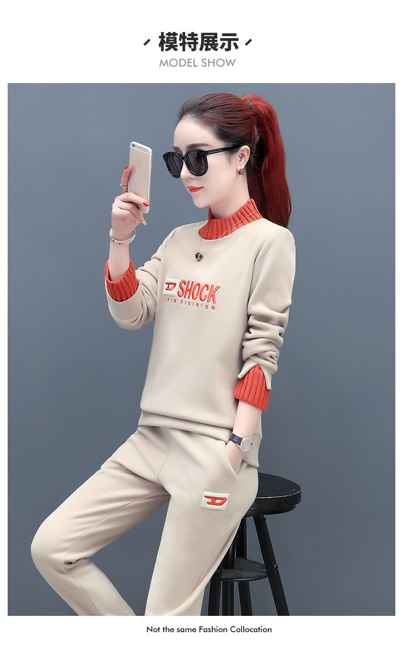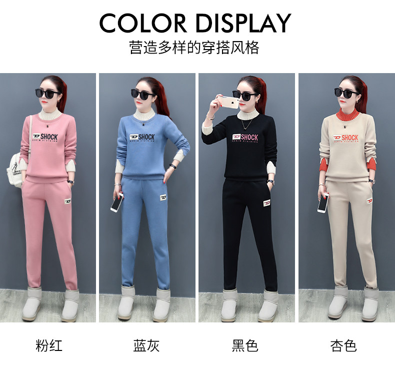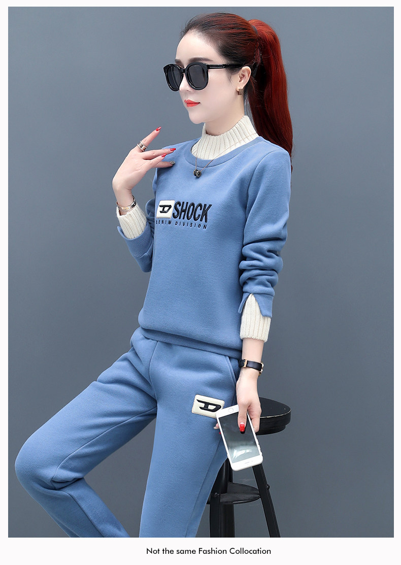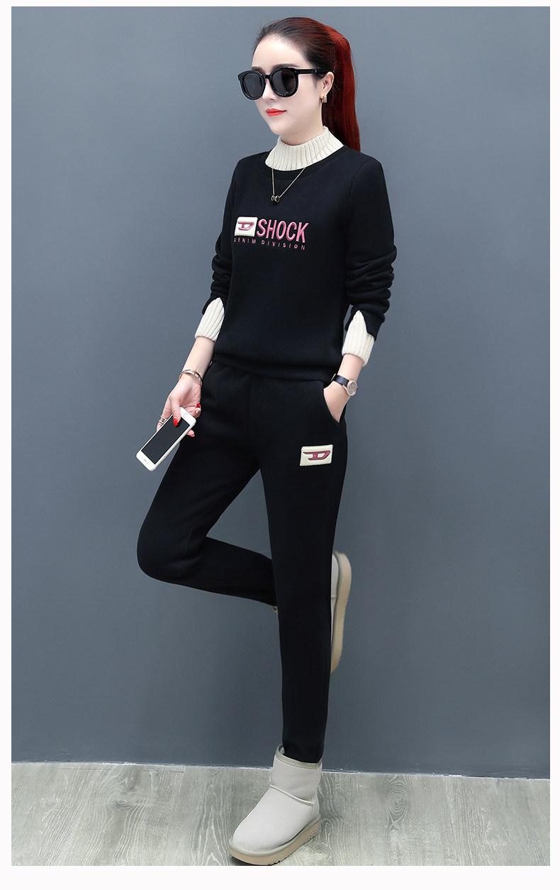 SP-DYJ93331秋冬新款时尚加绒加厚卫衣保暖显瘦休闲运动两件套