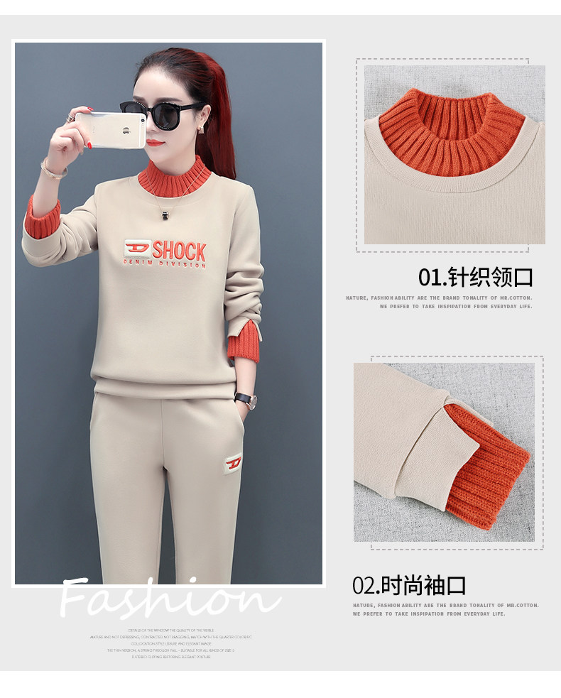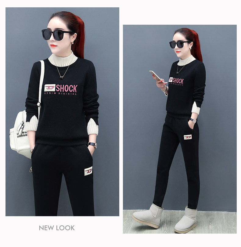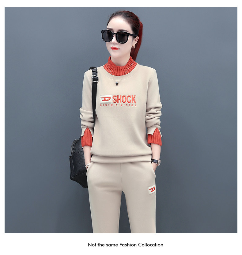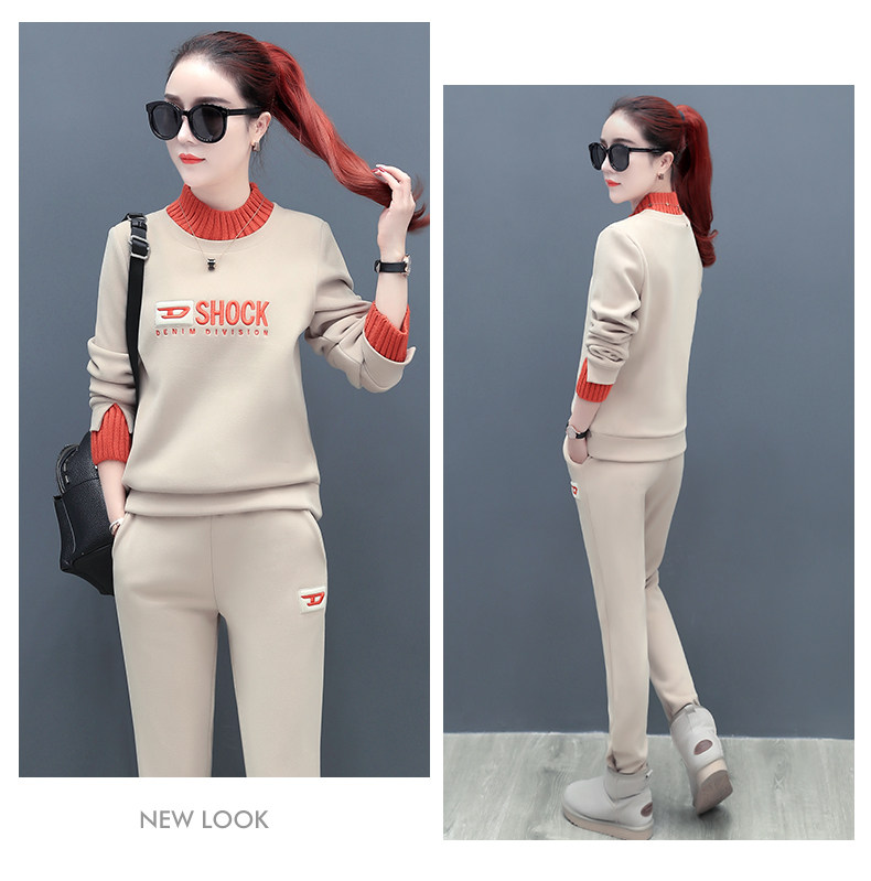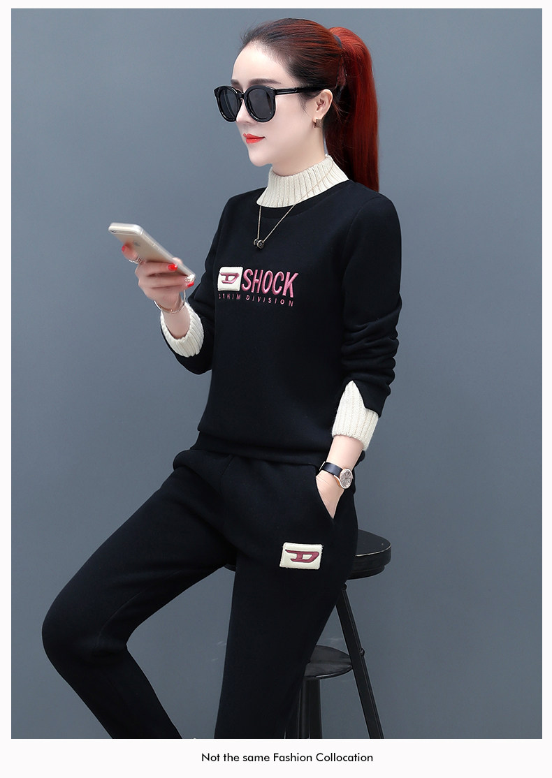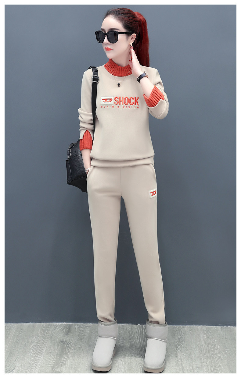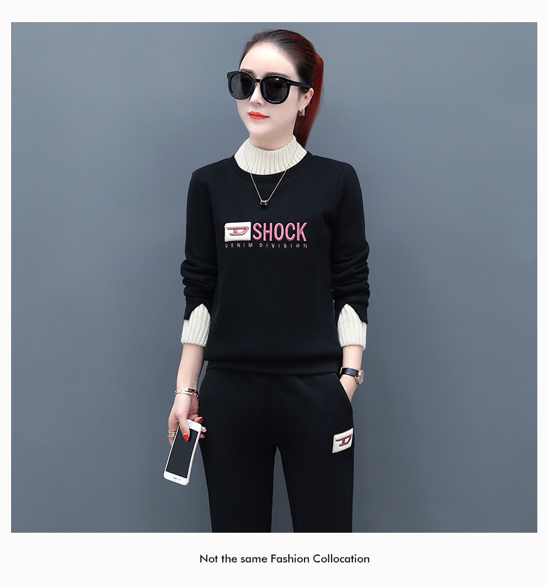 SP-DYJ93331秋冬新款时尚加绒加厚卫衣保暖显瘦休闲运动两件套