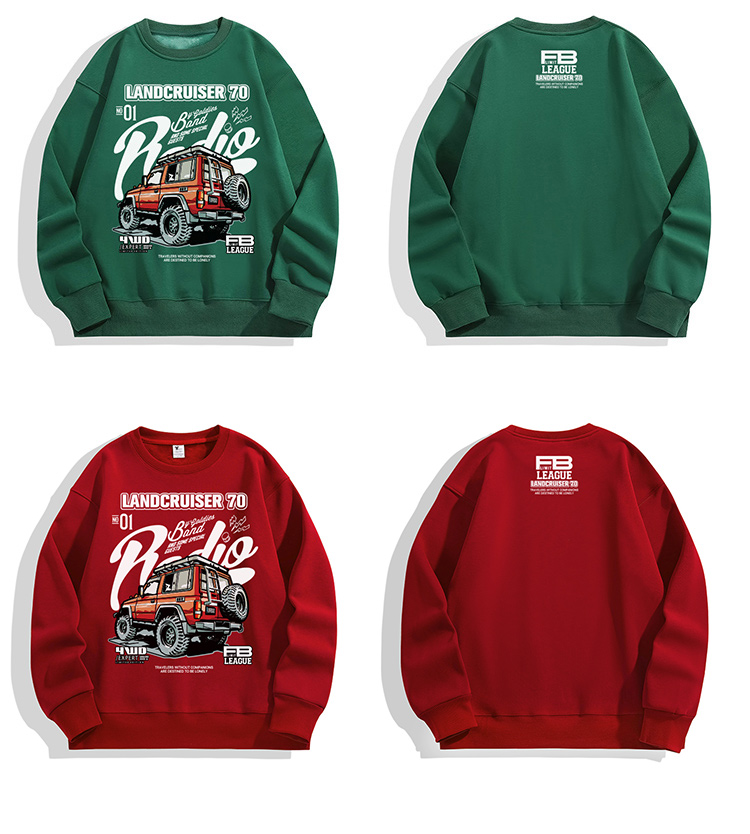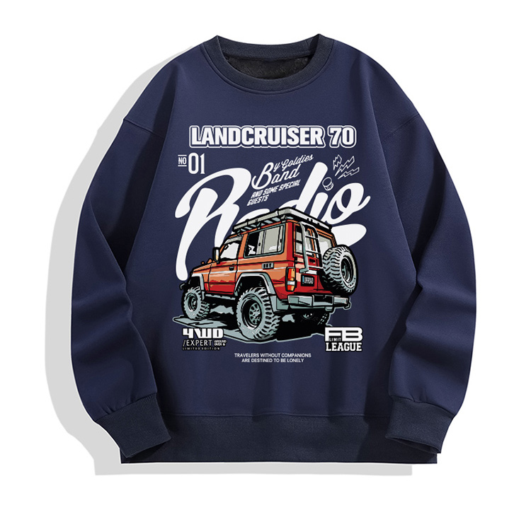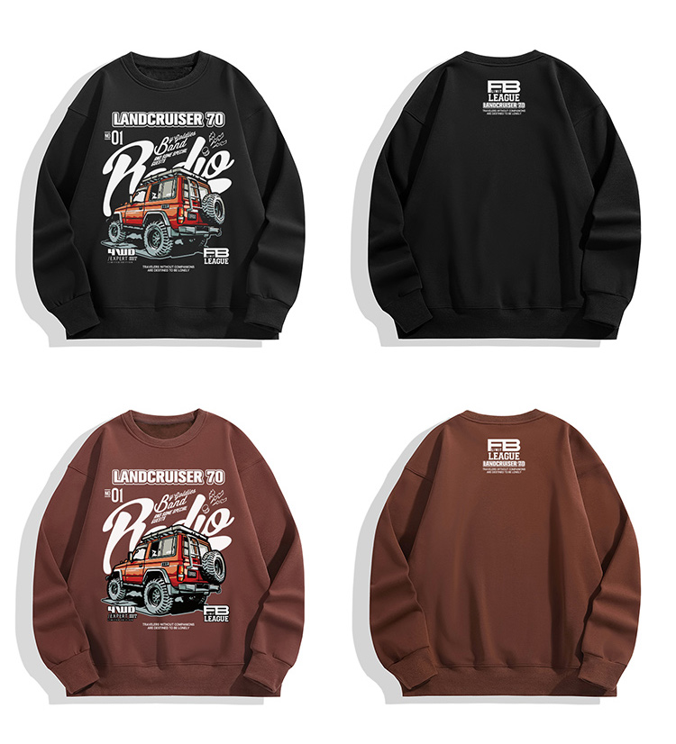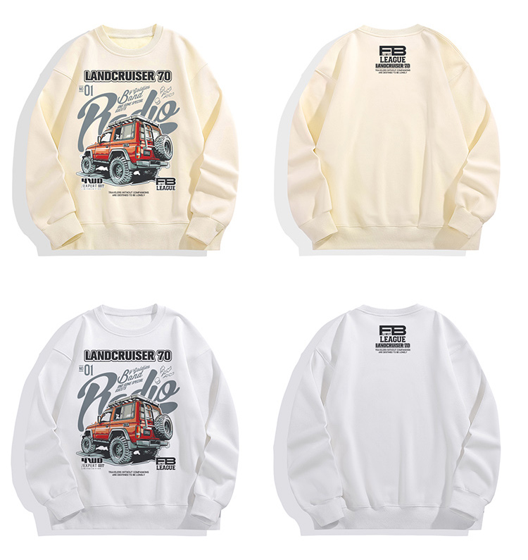 自由基地秋冬新款500G加厚落肩圆领卫衣丰田手绘风越野车图案印花 NMT-1938