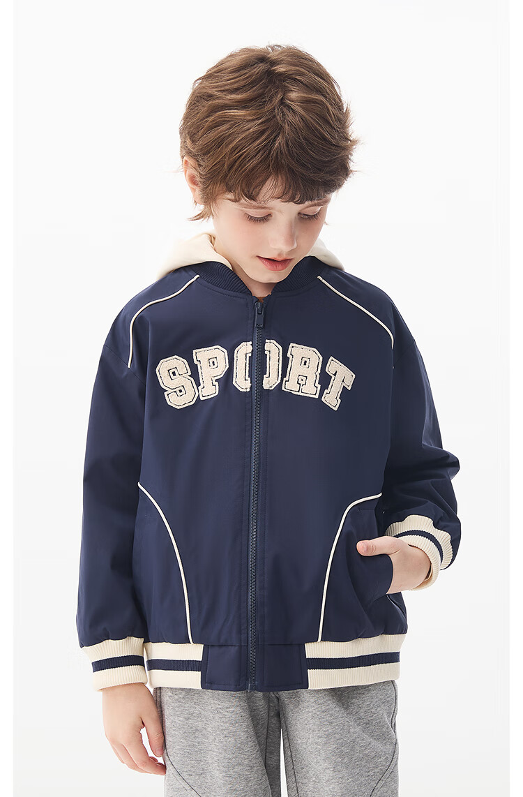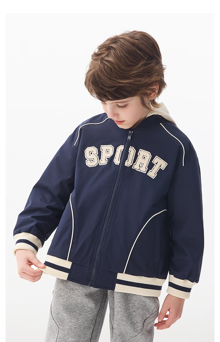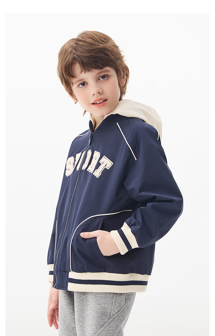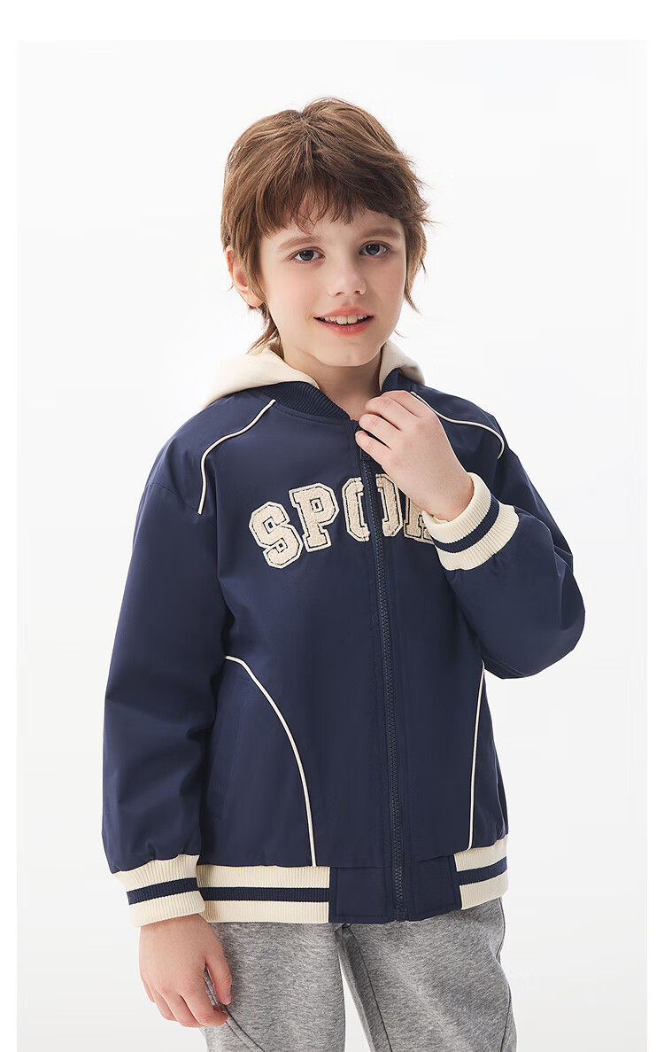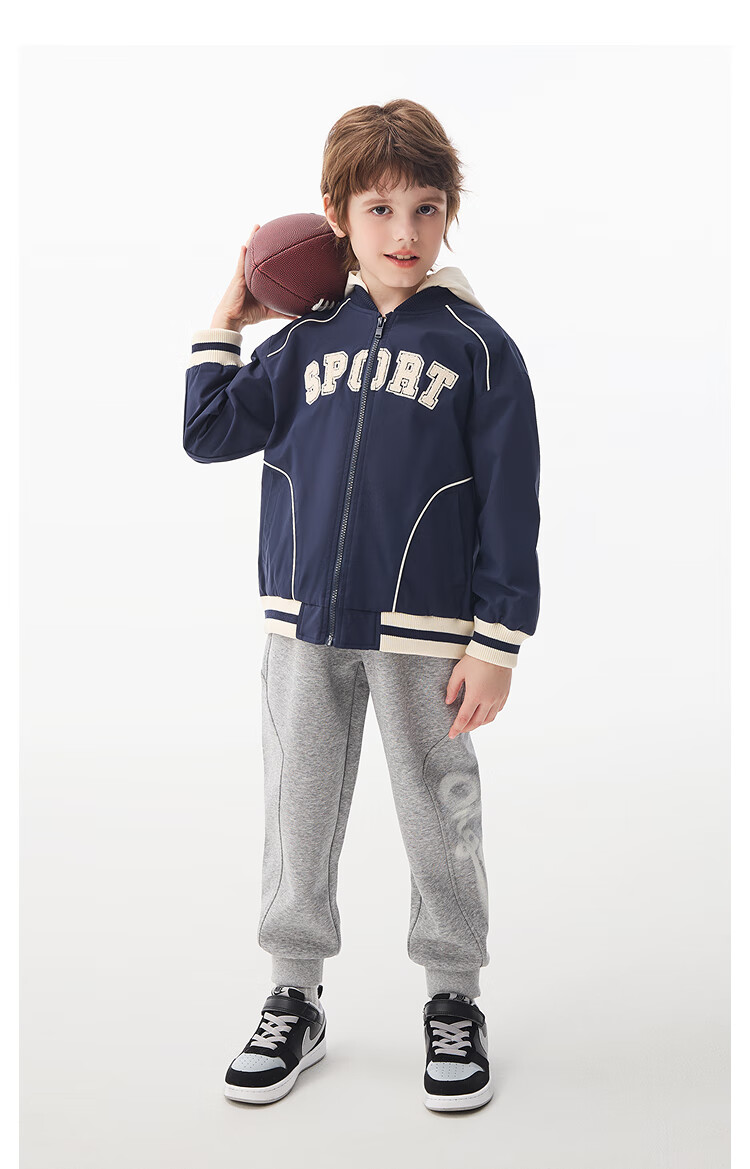 【MQD】童装男大童春新款运动学院风休闲连帽外套