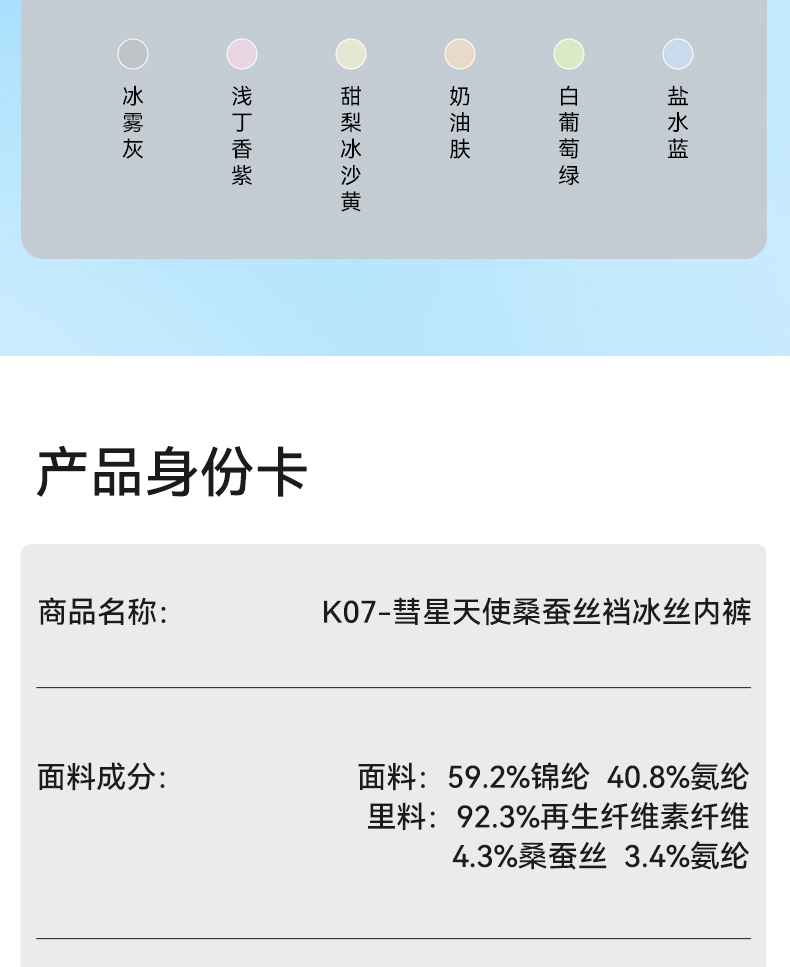彗星天使薄款7A抑菌吸湿1分钟速干桑蚕丝内裤K07#