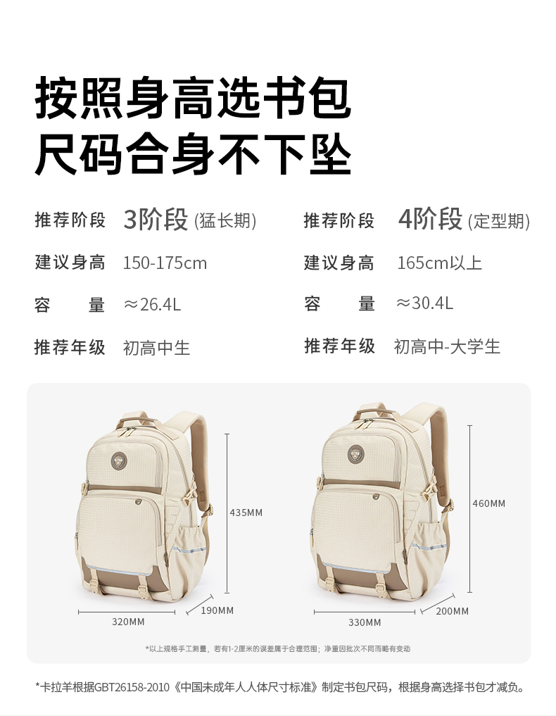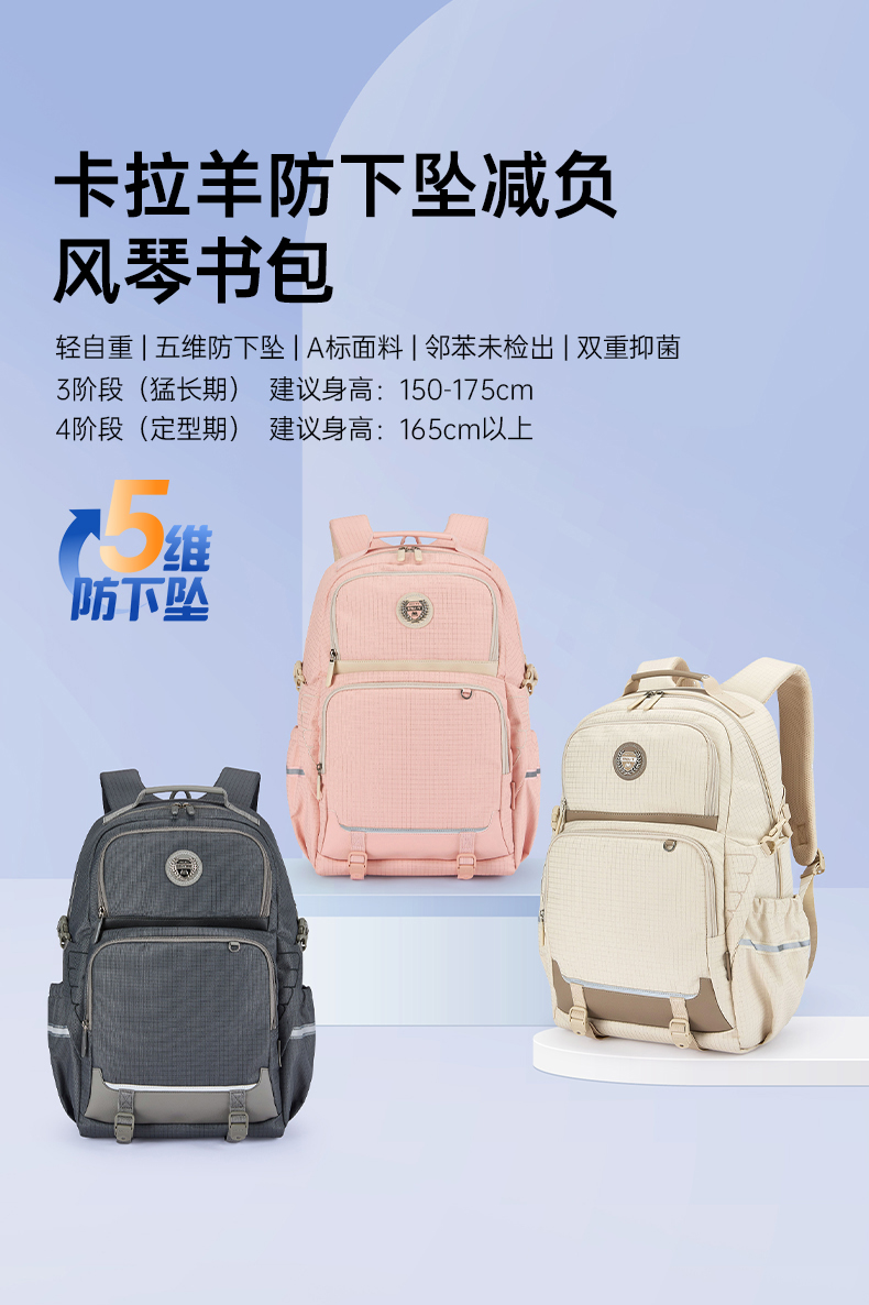【新品首发】卡拉羊初高中大学生5维减负防下坠风琴书包大容量双肩背包心悦系列CX5569/L
