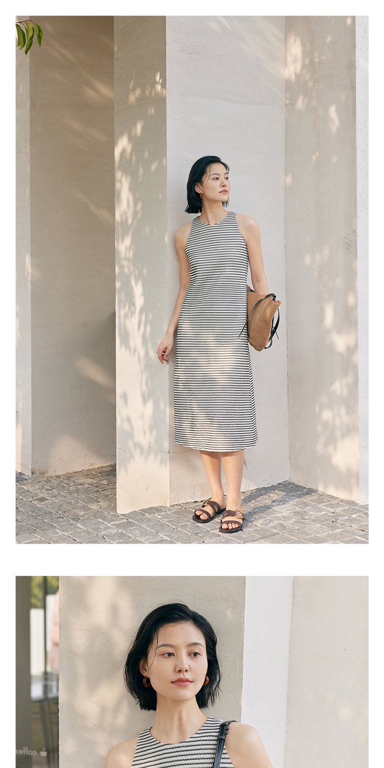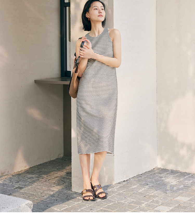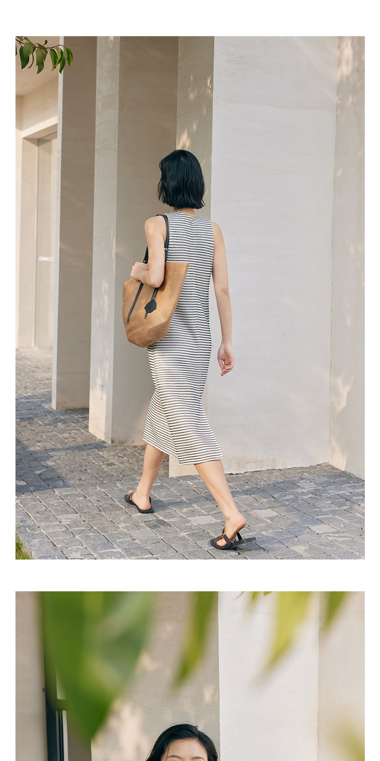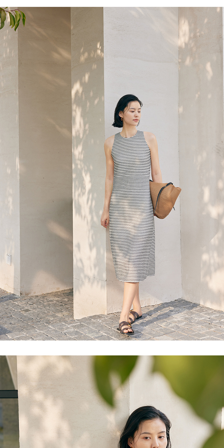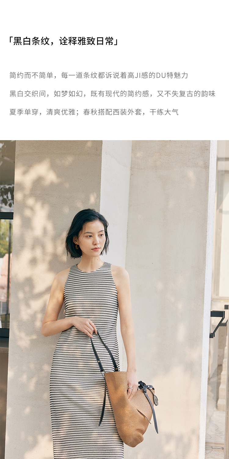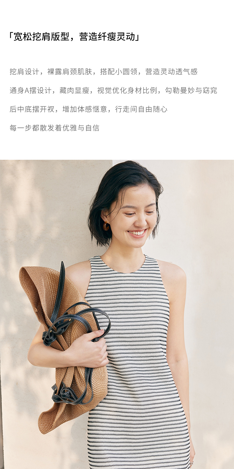 HeyDress条纹连衣裙女夏季法式撞色编织挖肩设计小众气质背心裙子