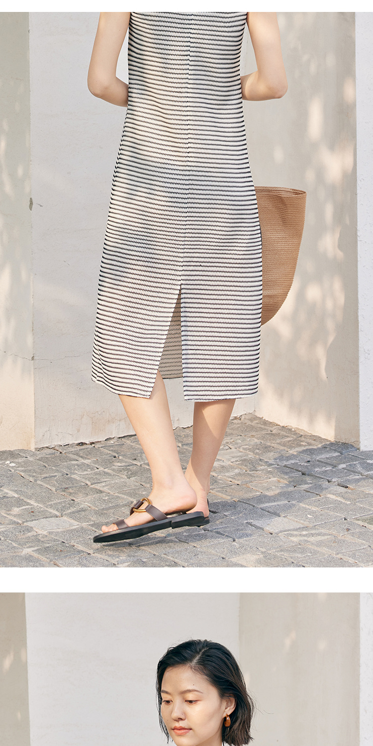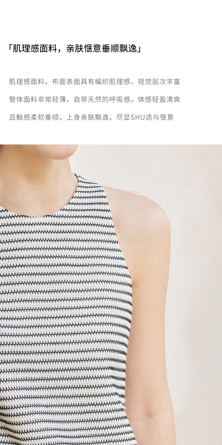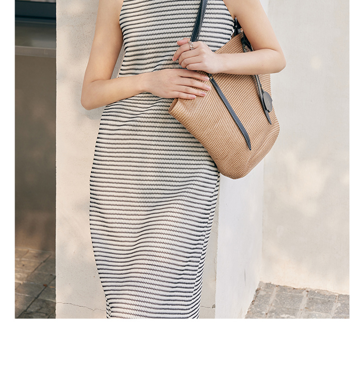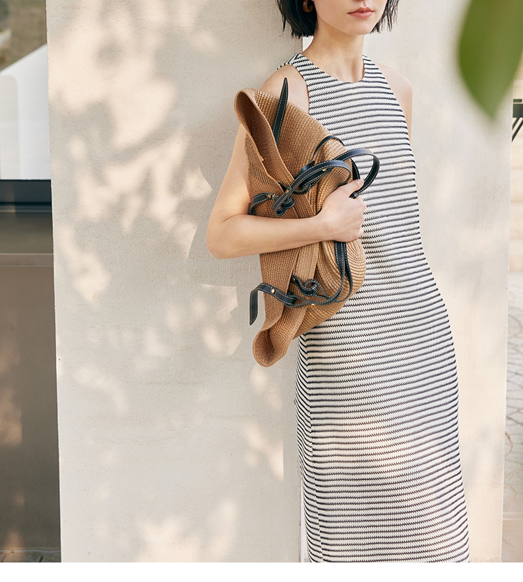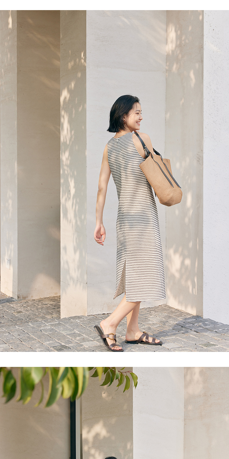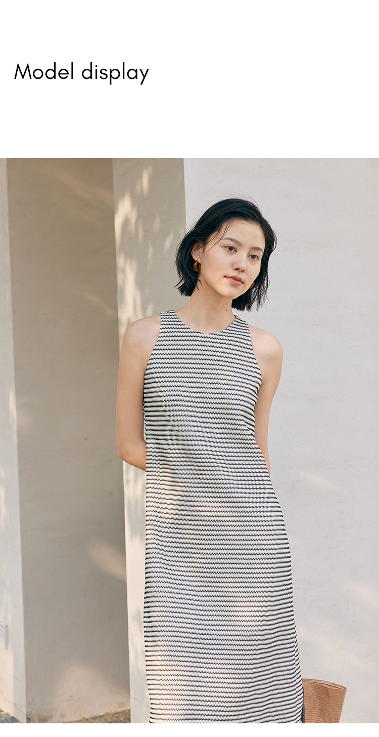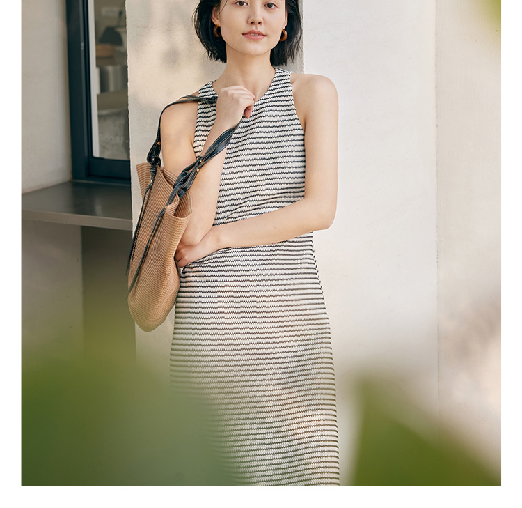 HeyDress条纹连衣裙女夏季法式撞色编织挖肩设计小众气质背心裙子