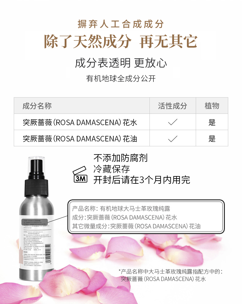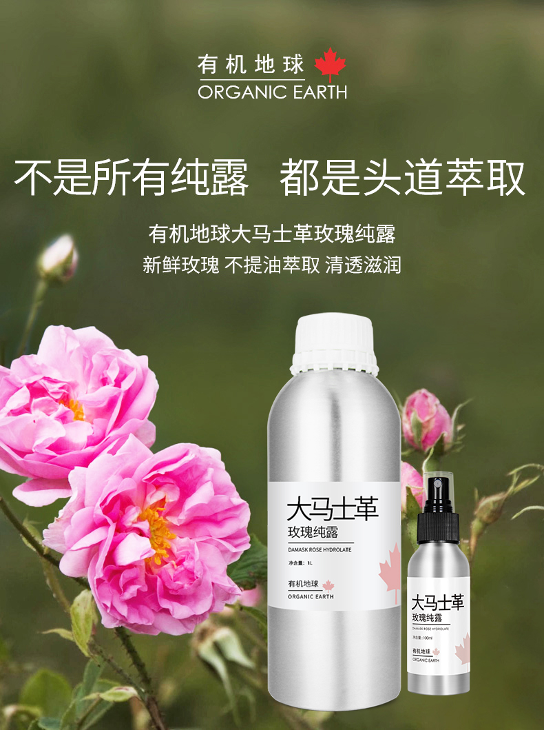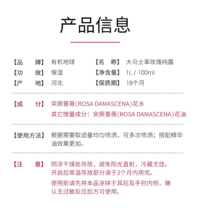 大马士革玫瑰纯露 | 100ml/1L 保加利亚玫瑰 清透爽肤水 环保大瓶装 建议冷藏保存或常温3个月内用完 有机地球