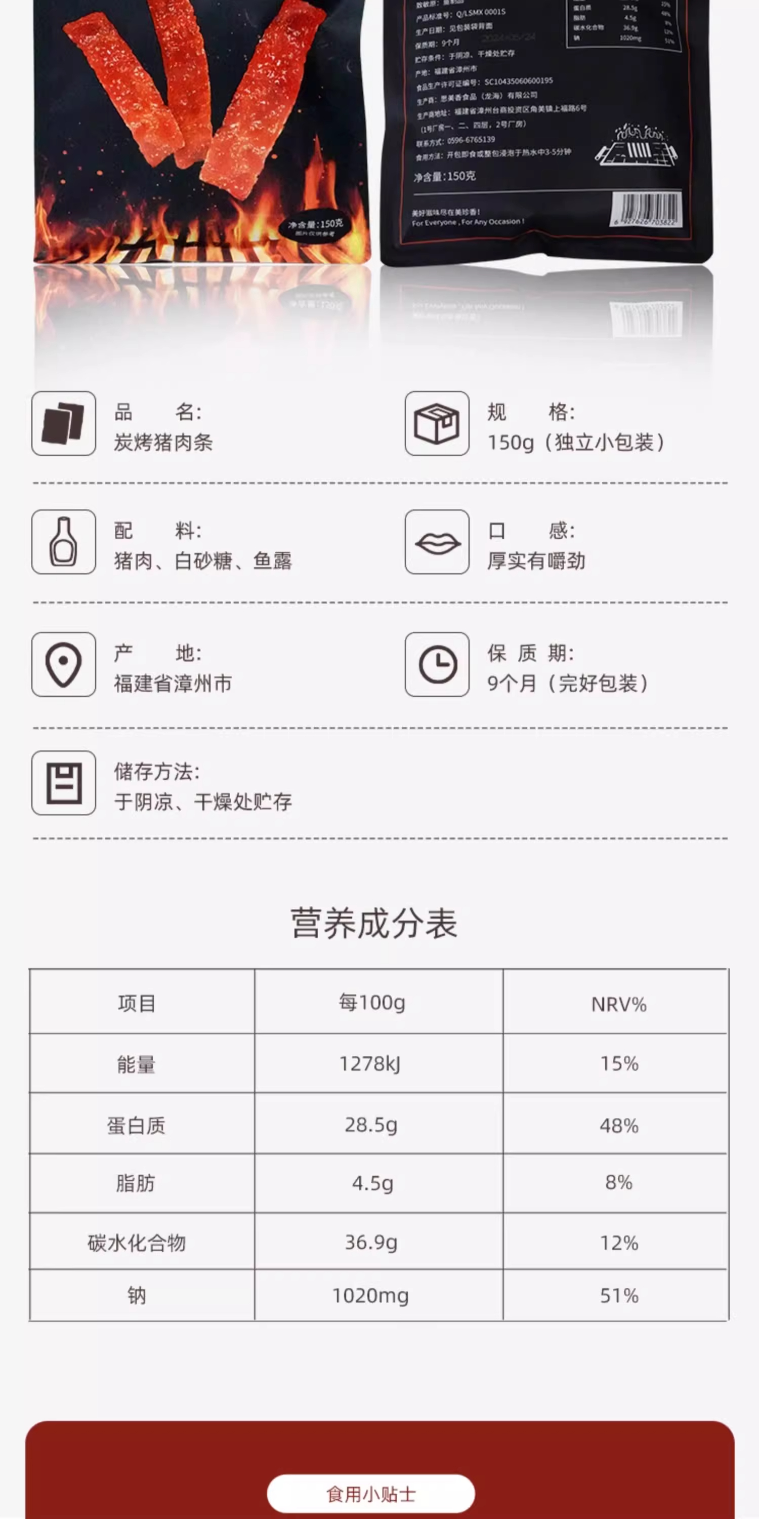 【新品】美珍香炭烤猪肉条150g/ 包即食肉脯休闲肉类小吃肉干零食