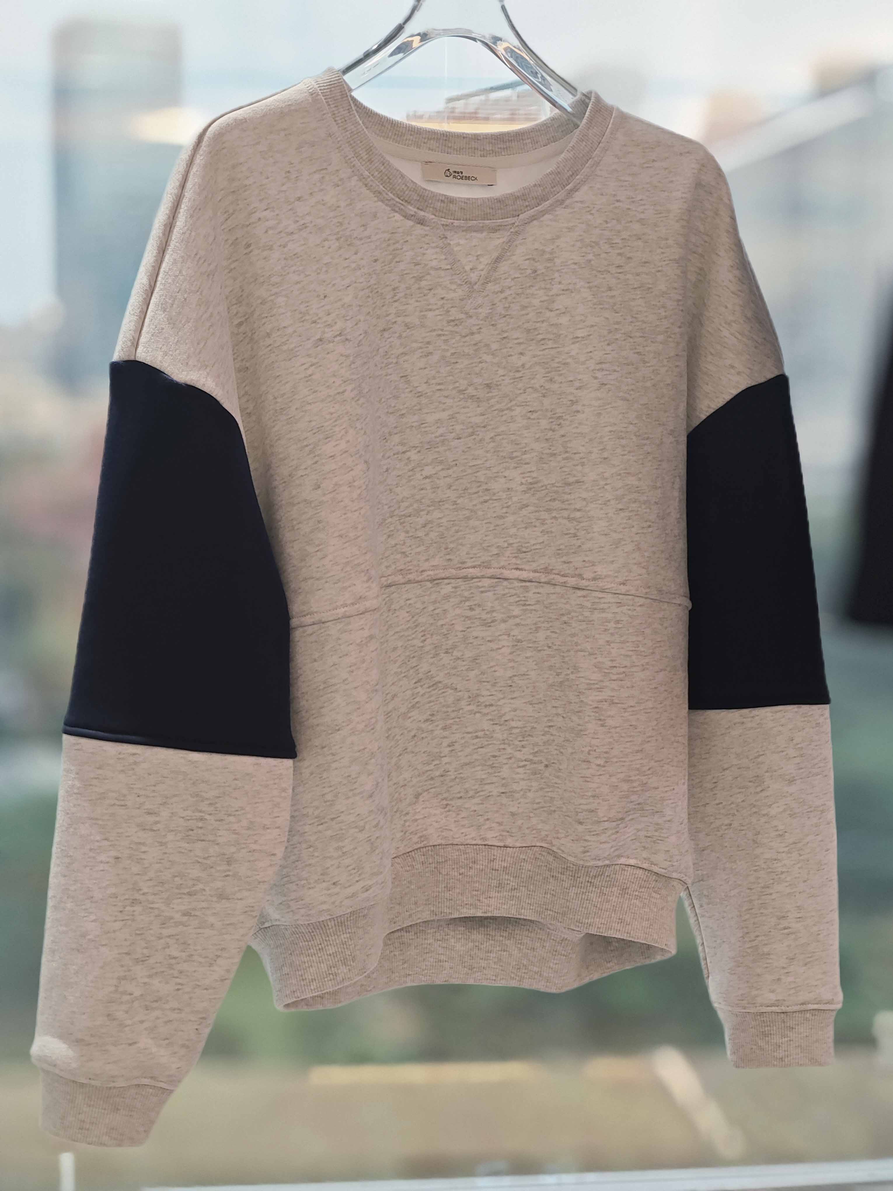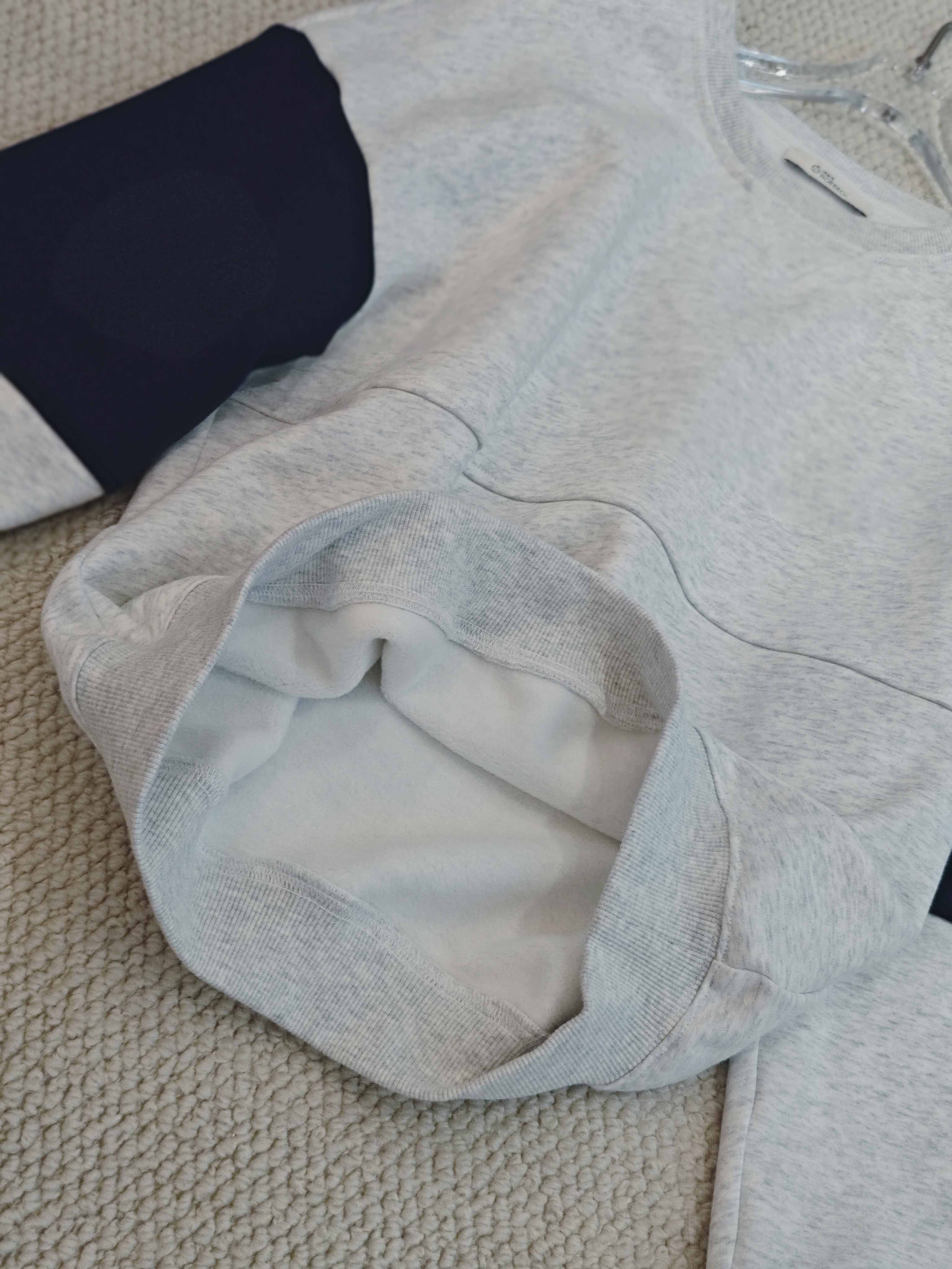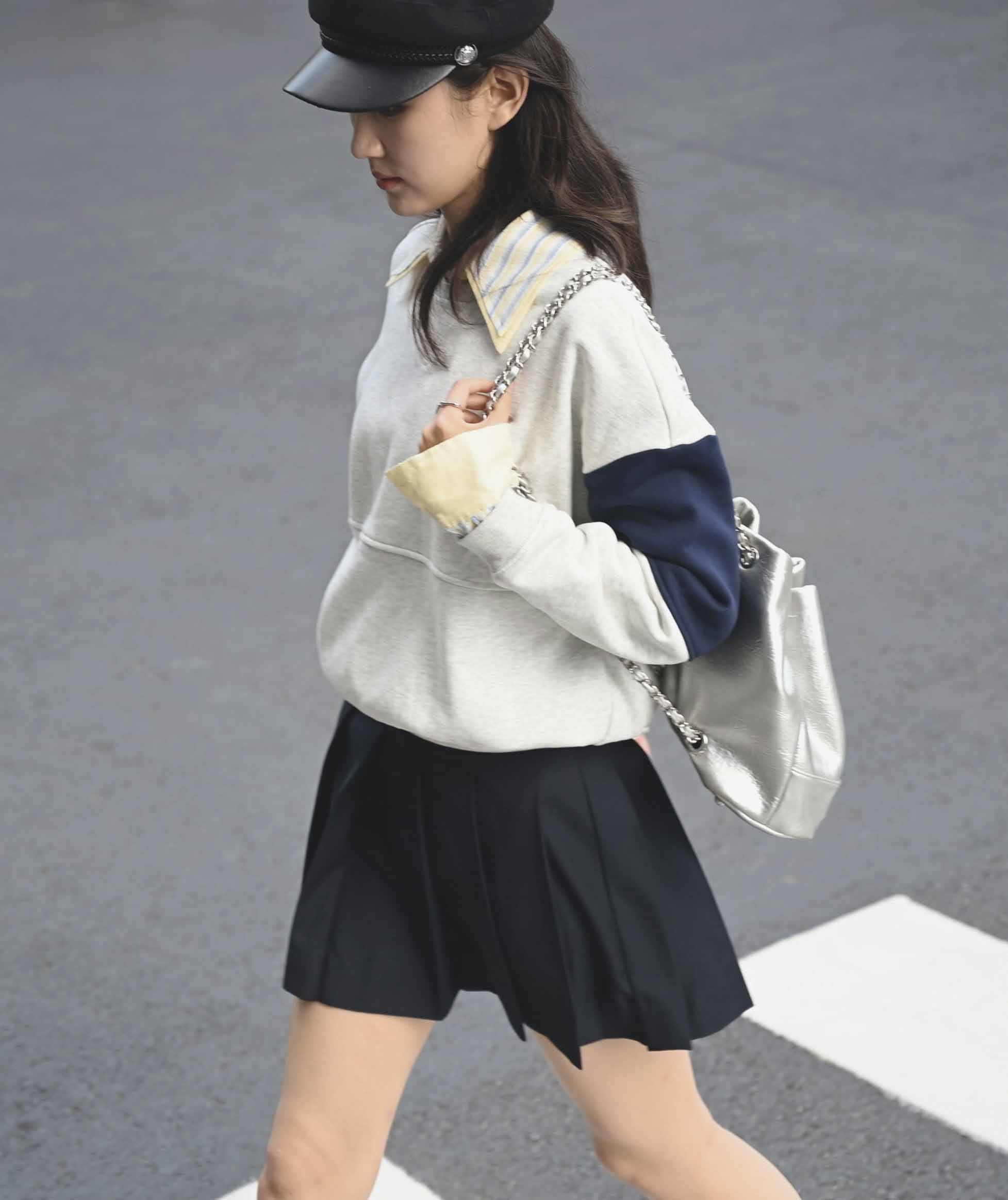 微弹罗纹袖口设计结合大廓形落肩,更具慵懒风格袖子经典撞色点缀
