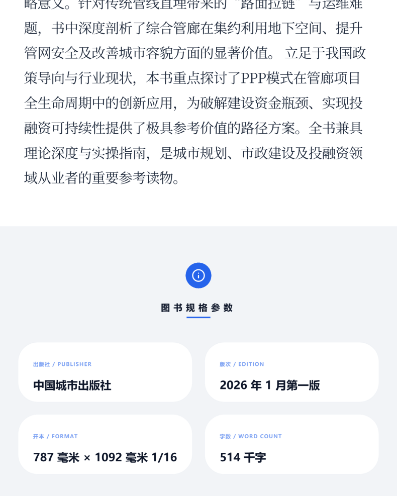 书名:城市综合管廊PPP项目理论与实践
