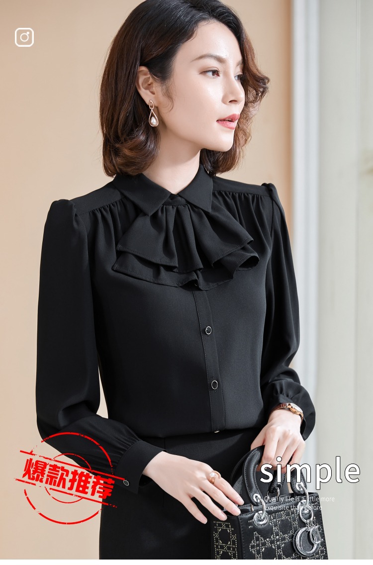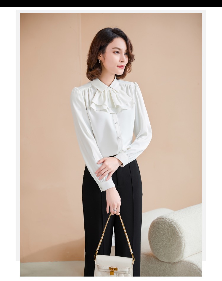 XZ-YZH6576气质设计感蝴蝶结法式系带衬衫小众垂感微喇袖雪纺衬衫上衣女