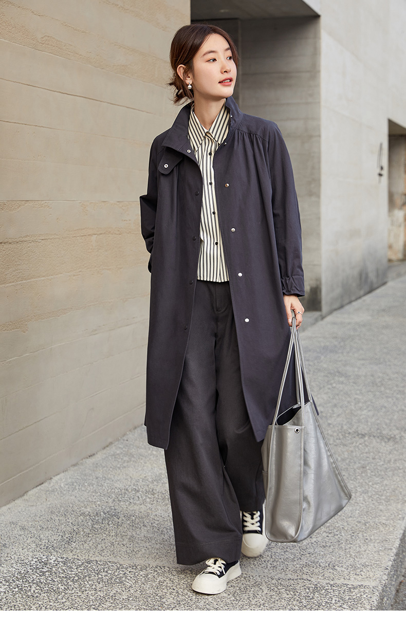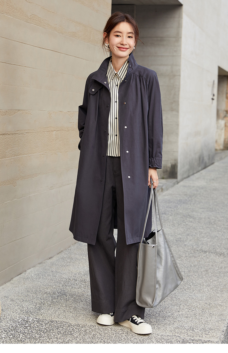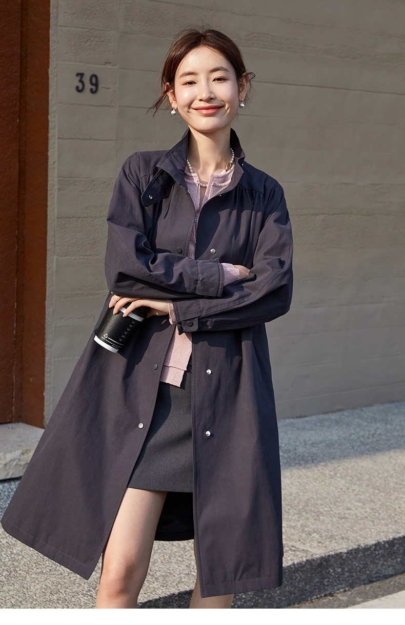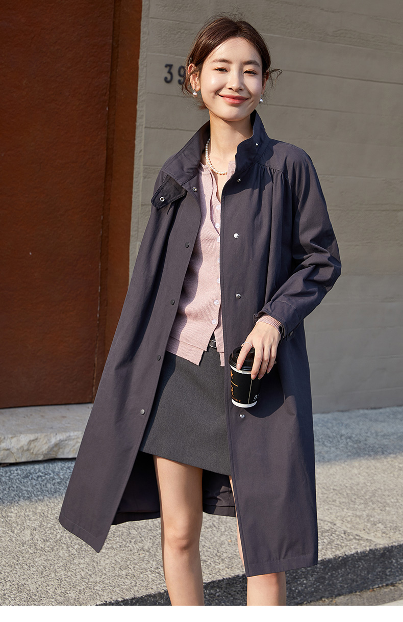 职场通勤必备!大气简约中长款立领风衣女