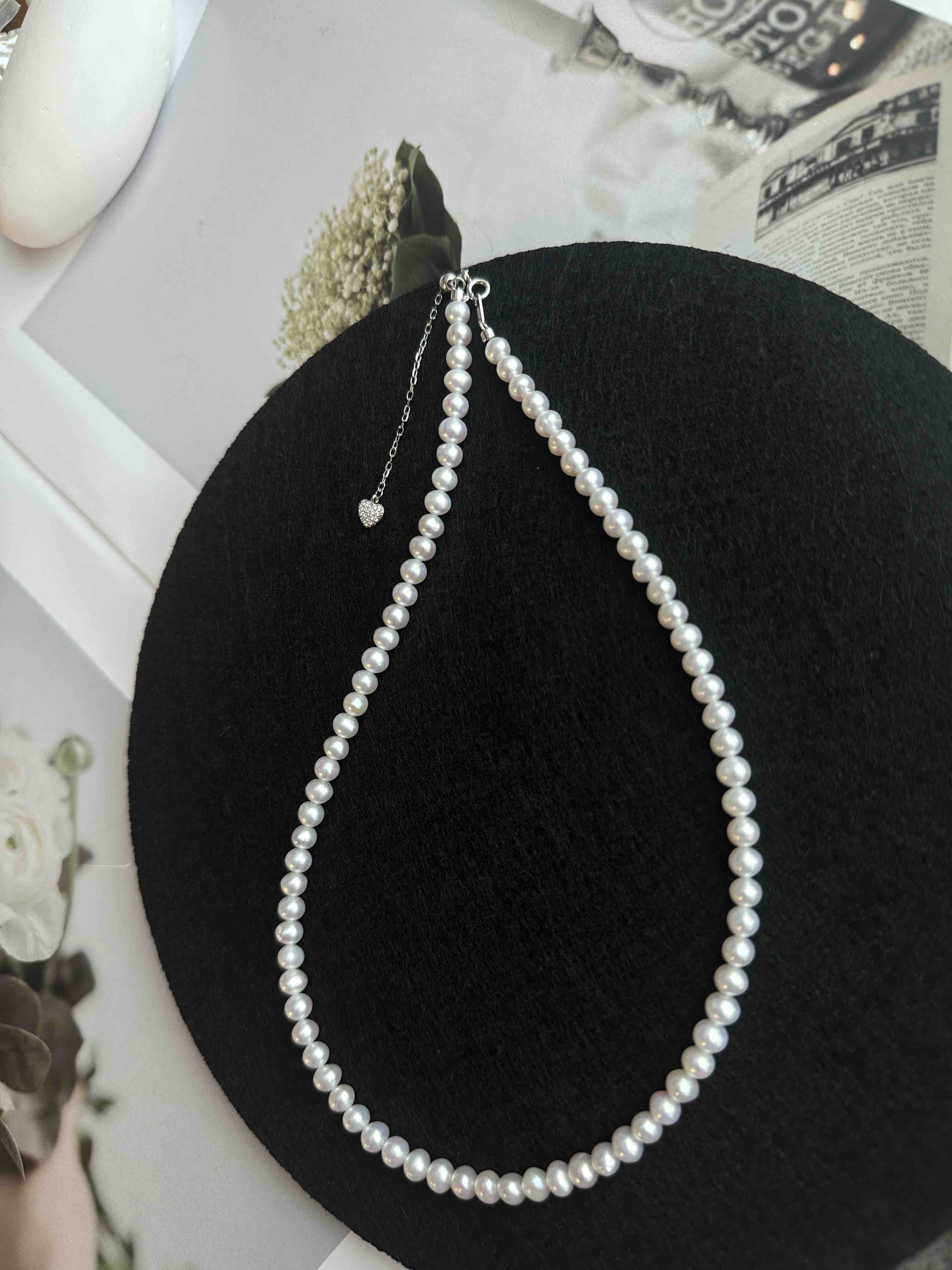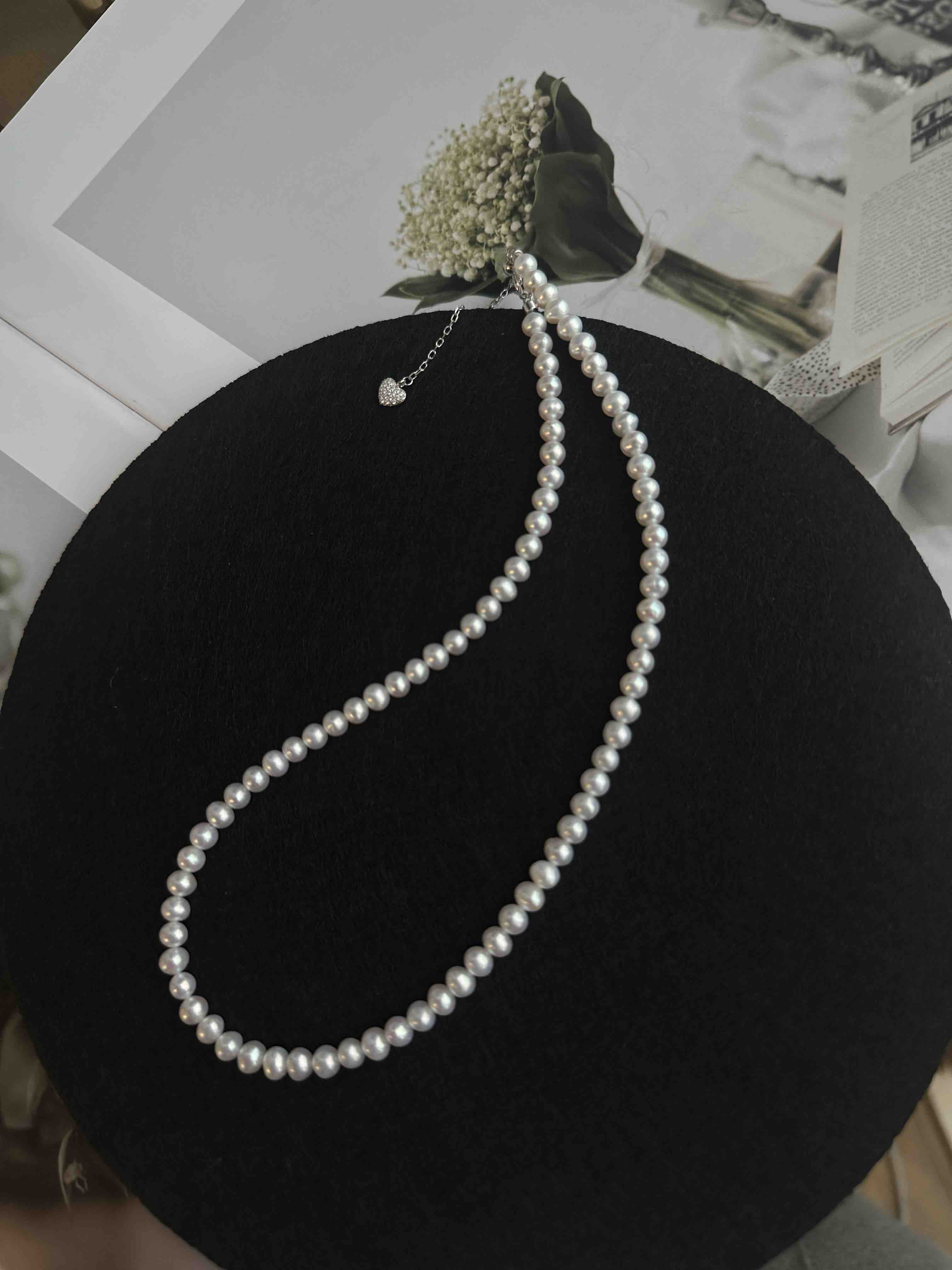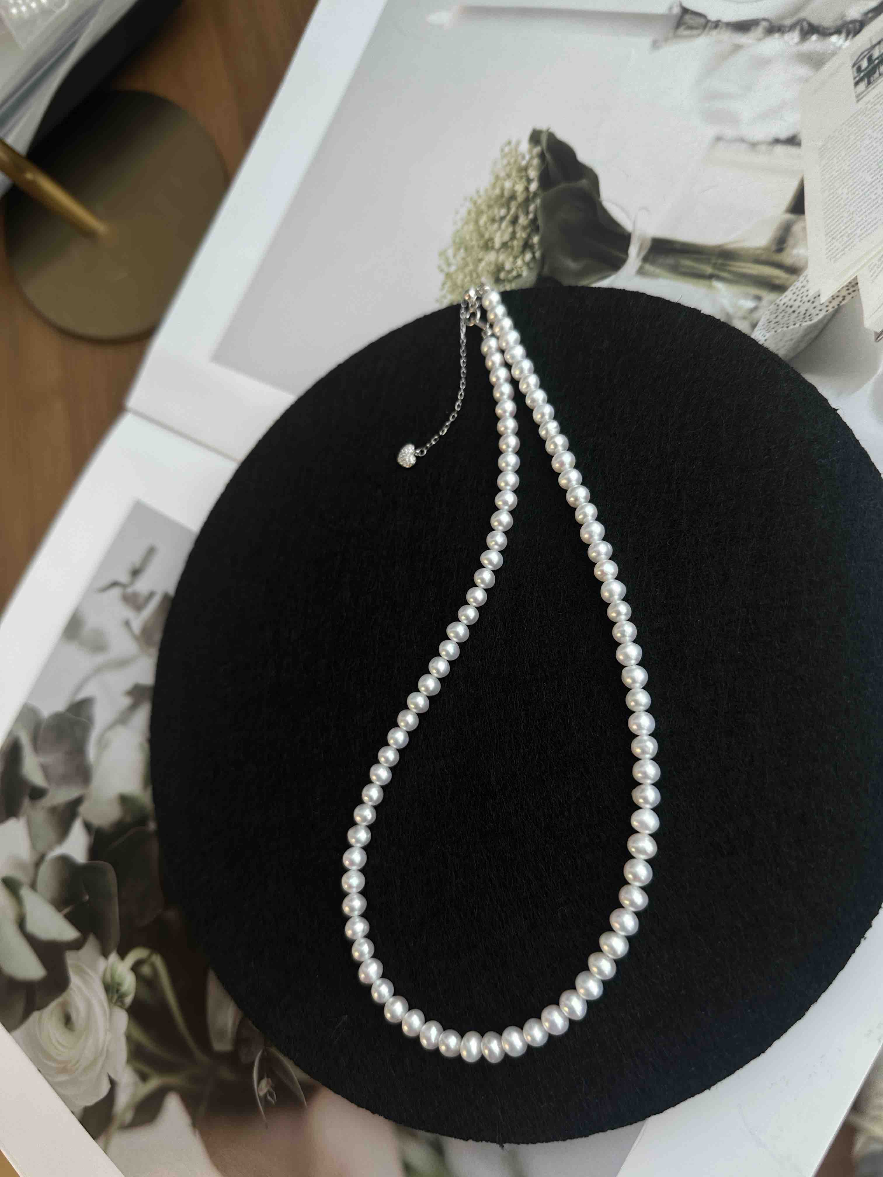 5-6mm天然淡水珍珠项链 搭配S925纯银配件 经典素串设计 日常百搭