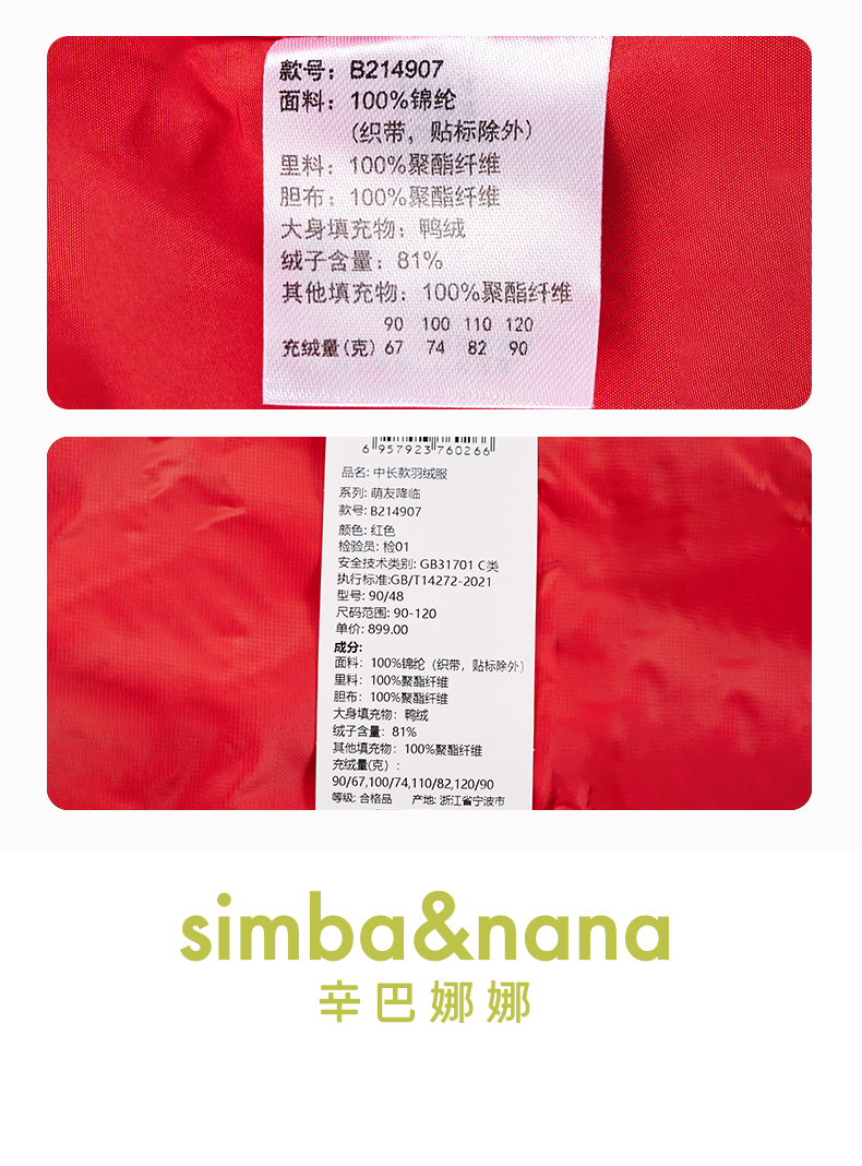 【辛巴娜娜】simbanana男童超轻保暖小童羽绒服儿童面包服冬装