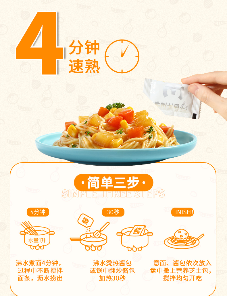 简单三步,4分钟快速烹饪,不管在家吃还是外出携带,都很便捷。