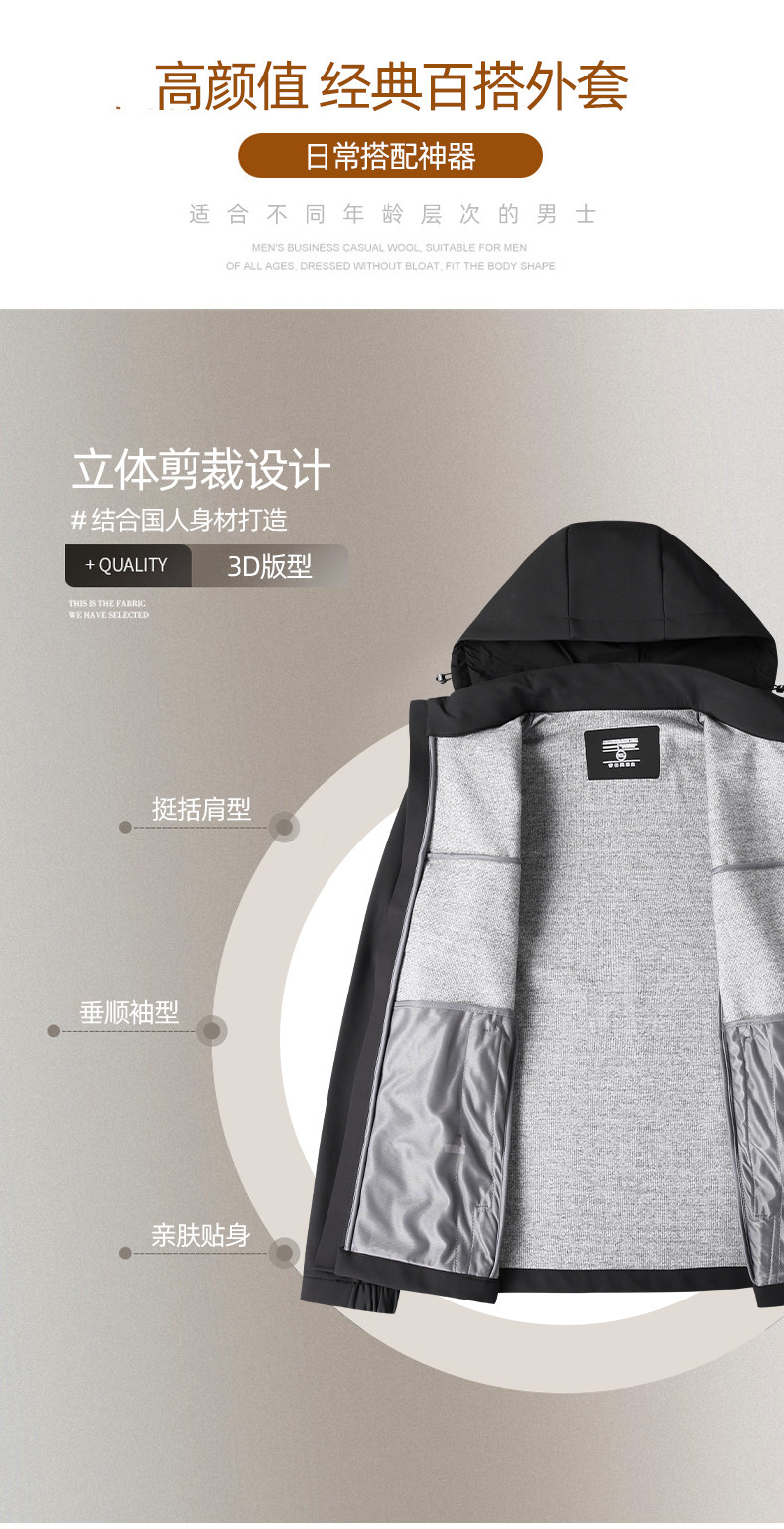 【DSF】大依优型大码男装春秋休闲夹克外百搭商务可拆卸连帽长袖外套
