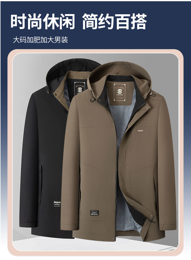 【可拆卸帽】【新款DPS】大依优型大码夹克外套加肥加大肥佬休闲商务上衣男士胖子