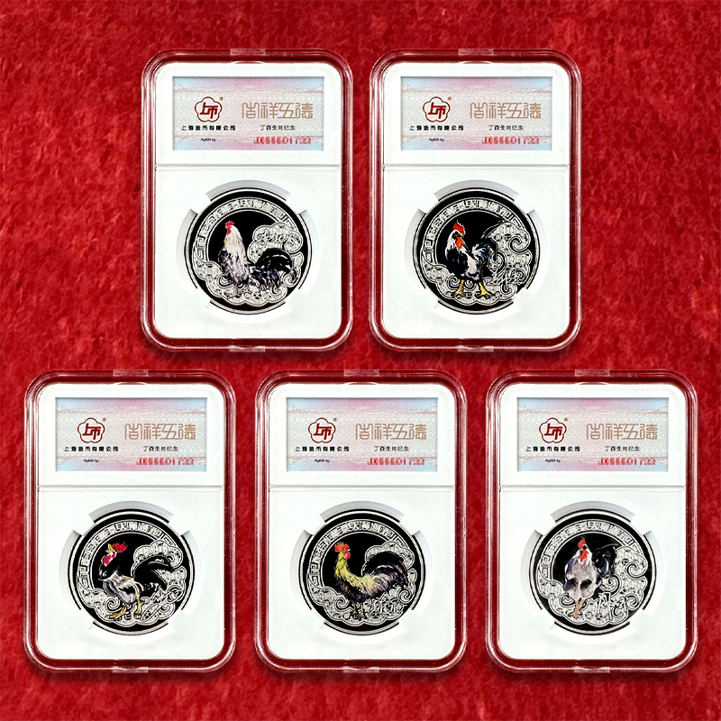 【上海造币】鸡年彩色银章 一套5枚 每枚含纯银5克 共25克 单独封装