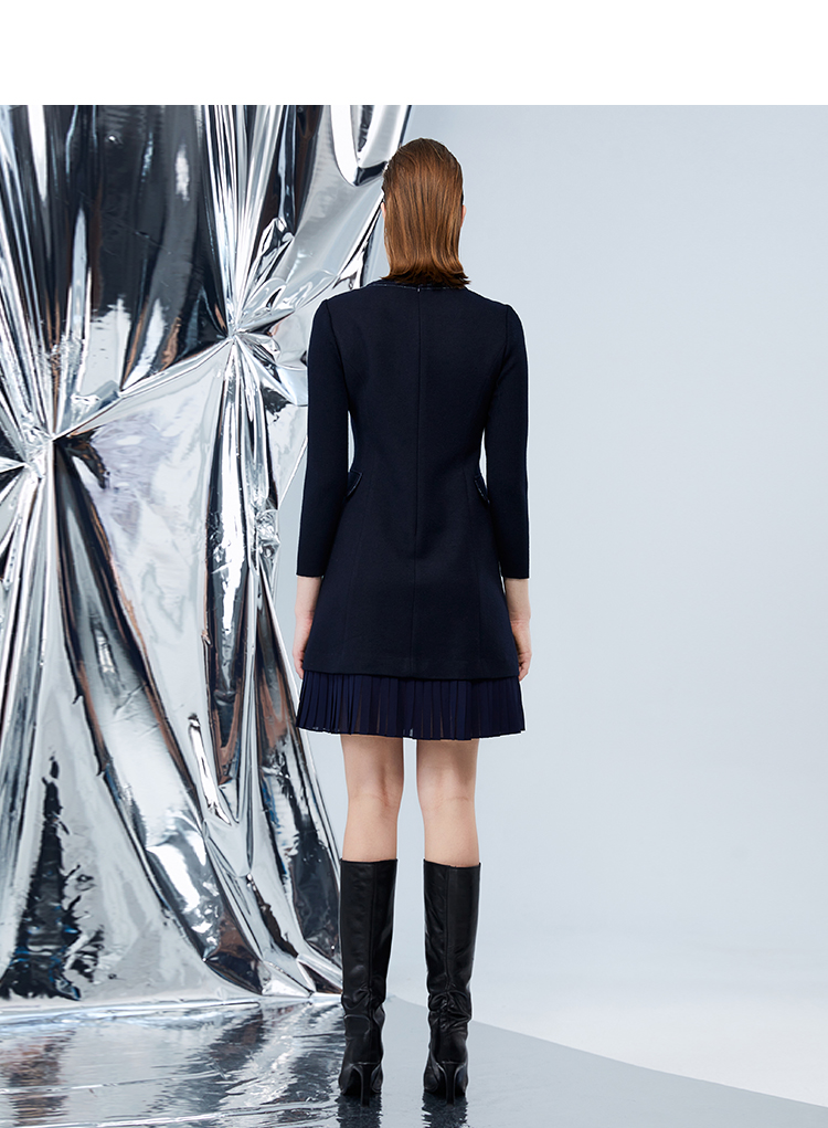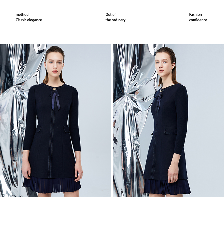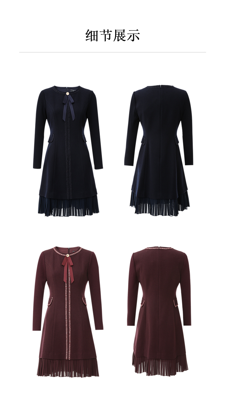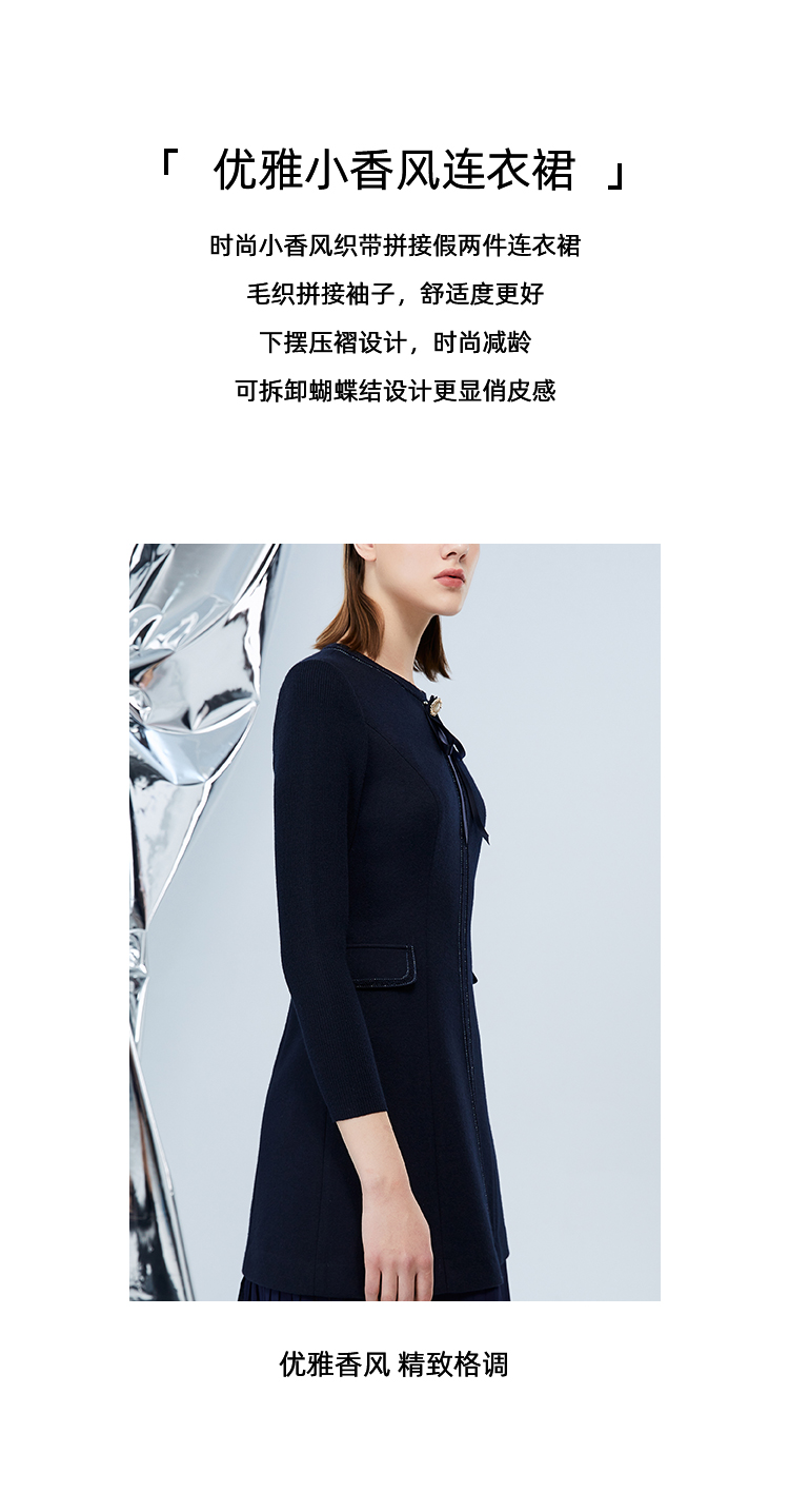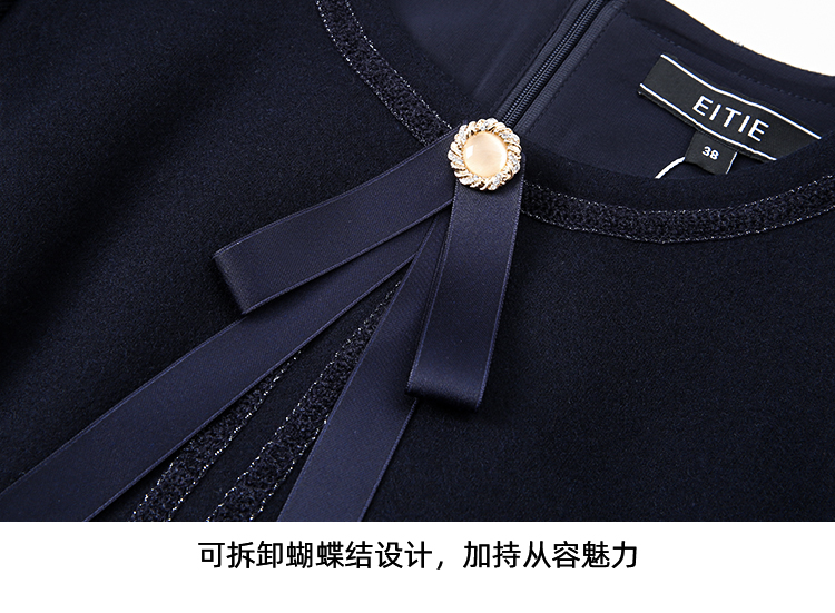 EITIE爱特爱冬季新品高腰修身显瘦裙摆拼接气质优雅连衣裙7607316