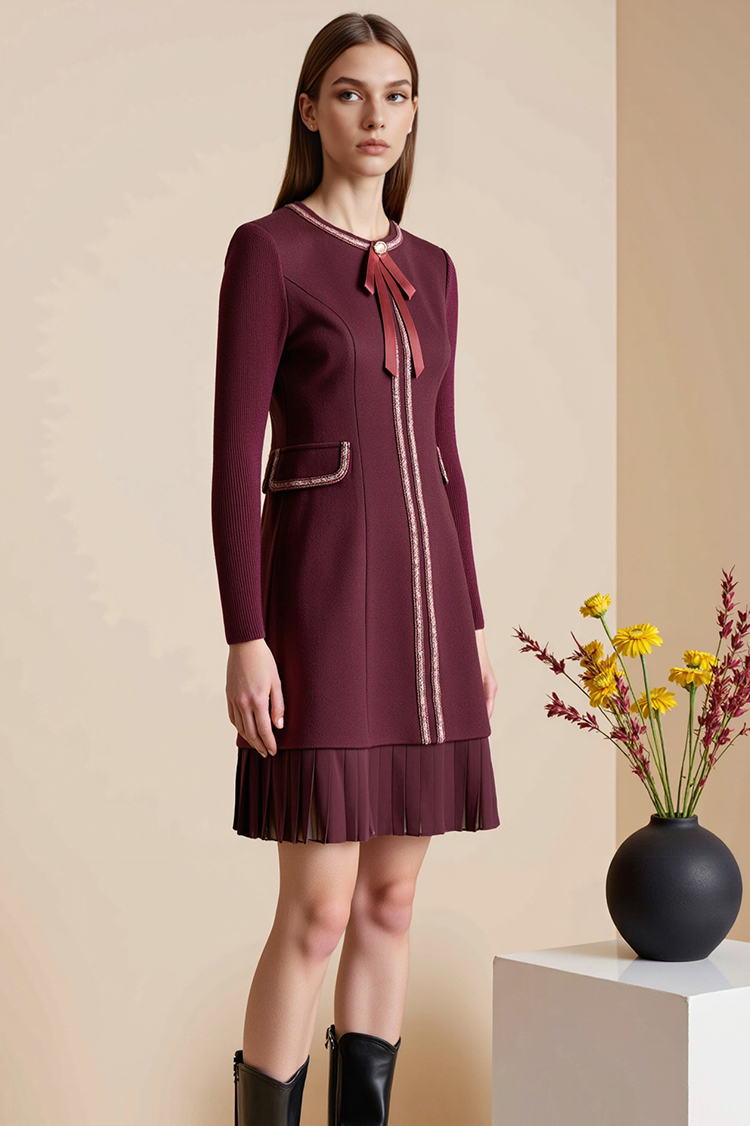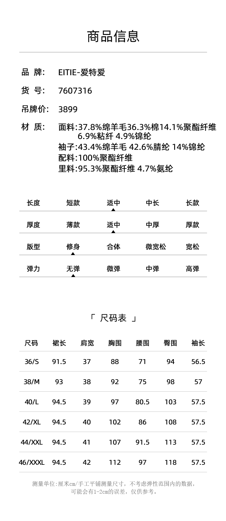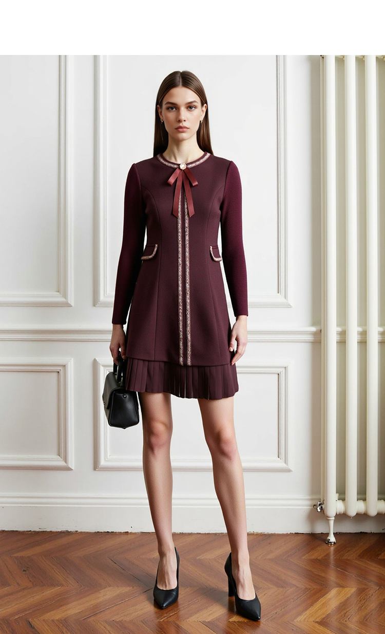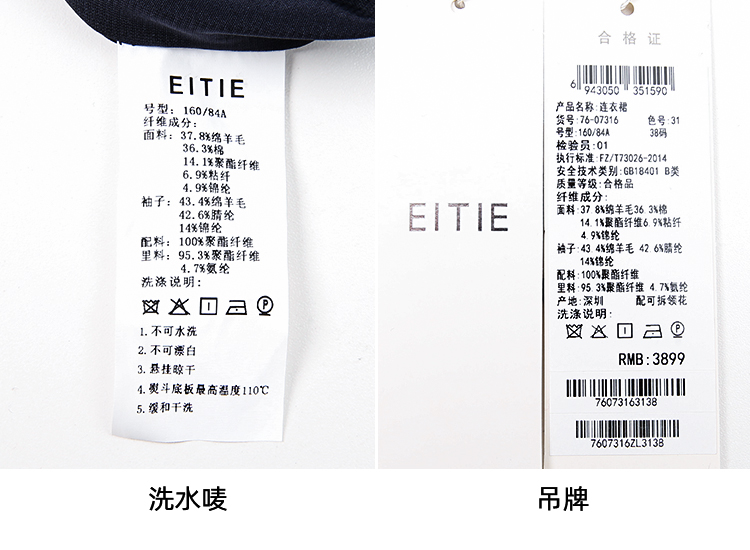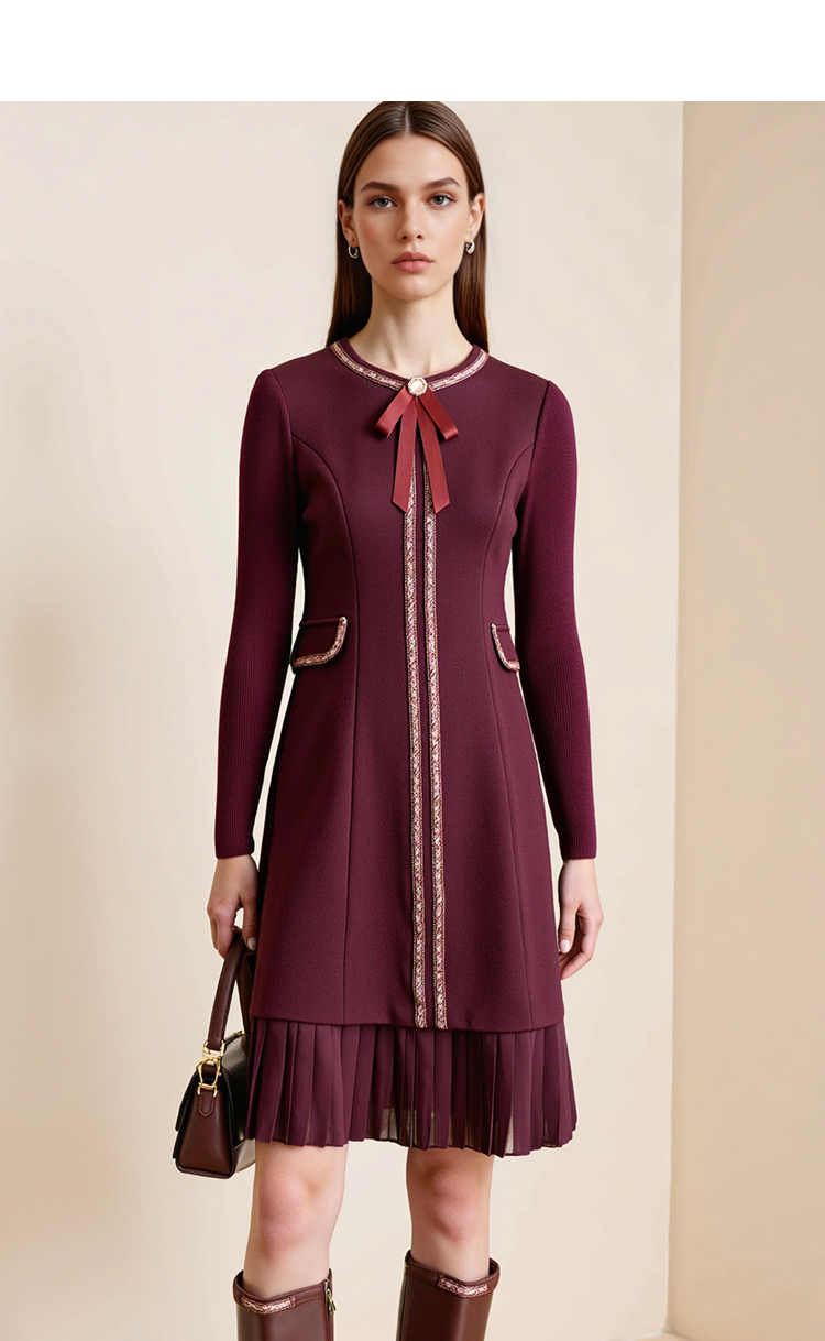 EITIE爱特爱冬季新品高腰修身显瘦裙摆拼接气质优雅连衣裙7607316