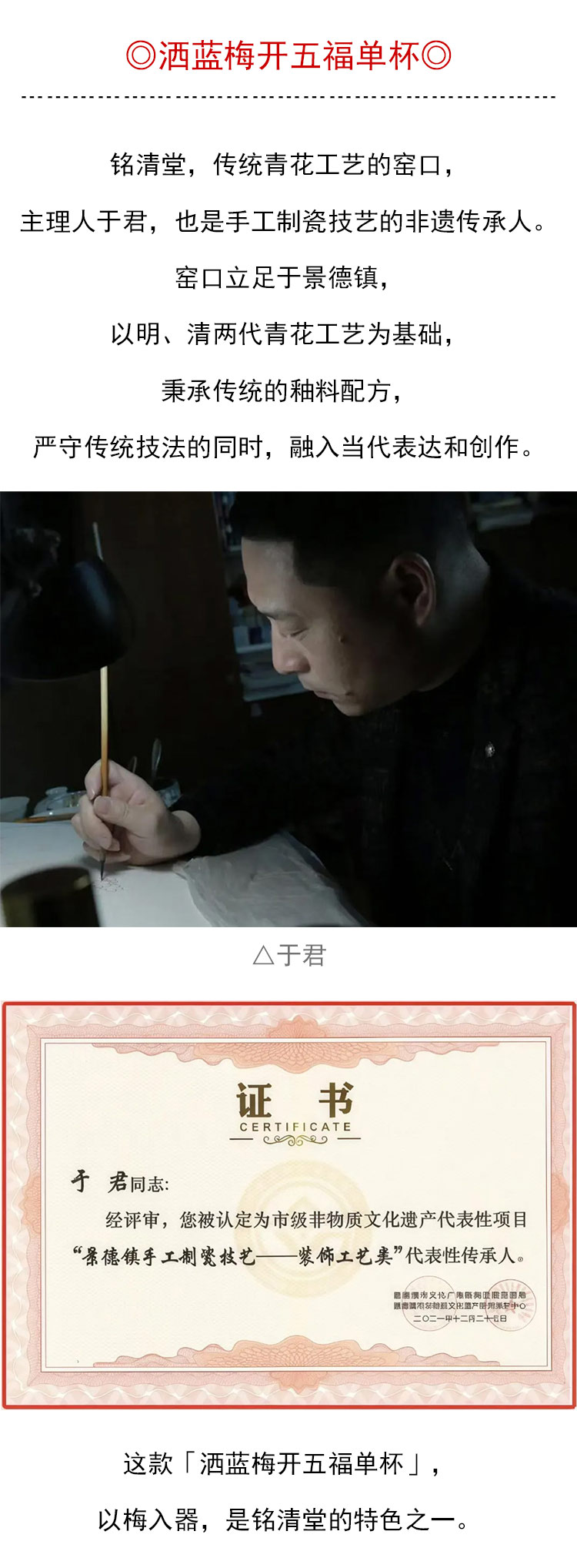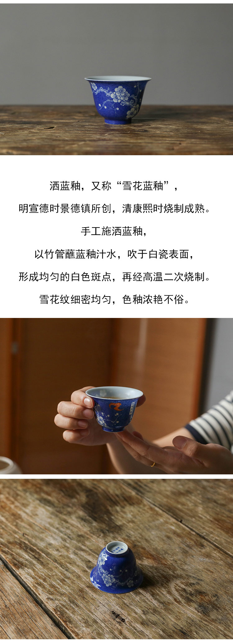 茶香记 70ml铭清堂洒蓝梅开五福单杯青花手绘陶瓷茶杯小号主人杯