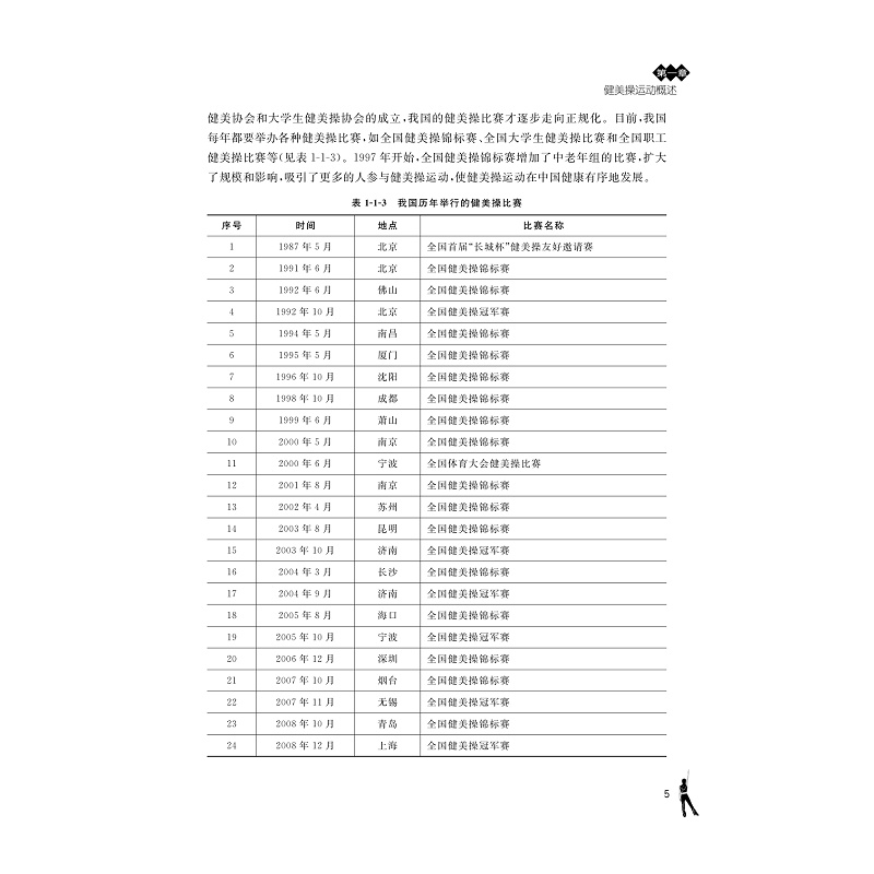 本书用通俗易懂的语言阐述了健美操基本理论、健美操运动技术运用、各种风格的实用性健美操、健美操专项技术锻炼方法以及大众健美操规则介绍。根据学生运动水平分初、中、高三个层次进行相关技术指导及运动评价。同时,本教材融合了流行的拉丁健美操、搏击操等趣味性强的健美操,必会引起学生的极大兴趣。对于书中出现的诸多基本动作和动作组合范例,不但采用了连续动作照片和文字说明来讲解,而且配合拍摄了动作演示视频,直观地表现了基本动作和成套动作的节奏、音乐等,方便了读者学习和对教材内容的理解。