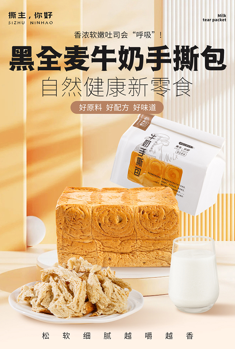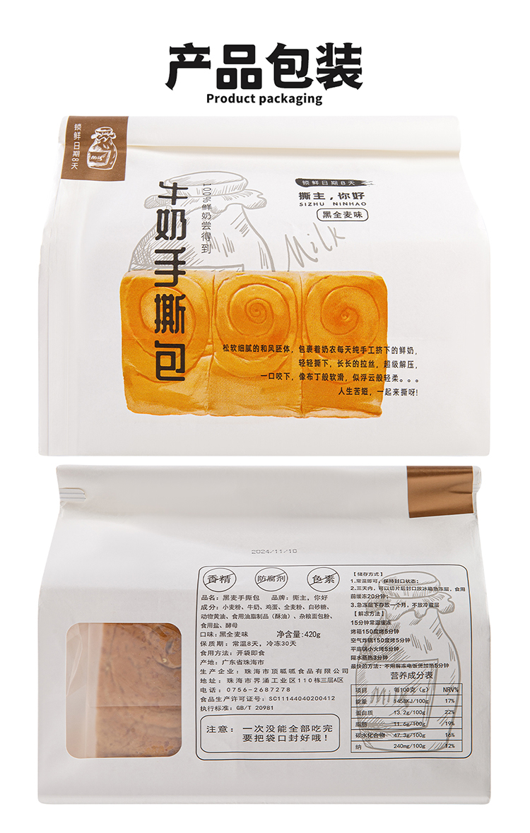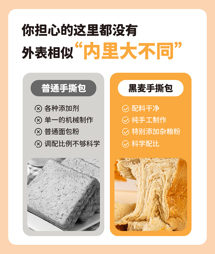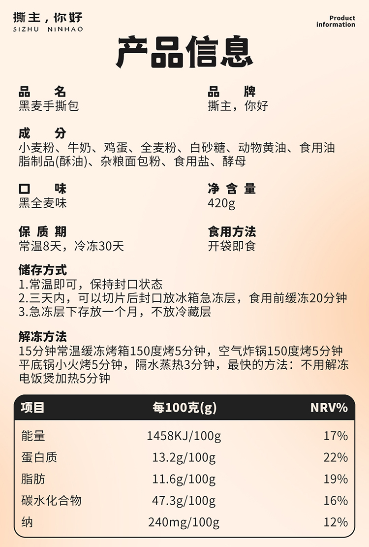 【短保定制 现做现发不退改件】撕主你好手撕面包 脏脏/原味450g±30g/黑麦手撕面包420g/巧克力460g±30g面包吐司 营养早餐 2个装*420g